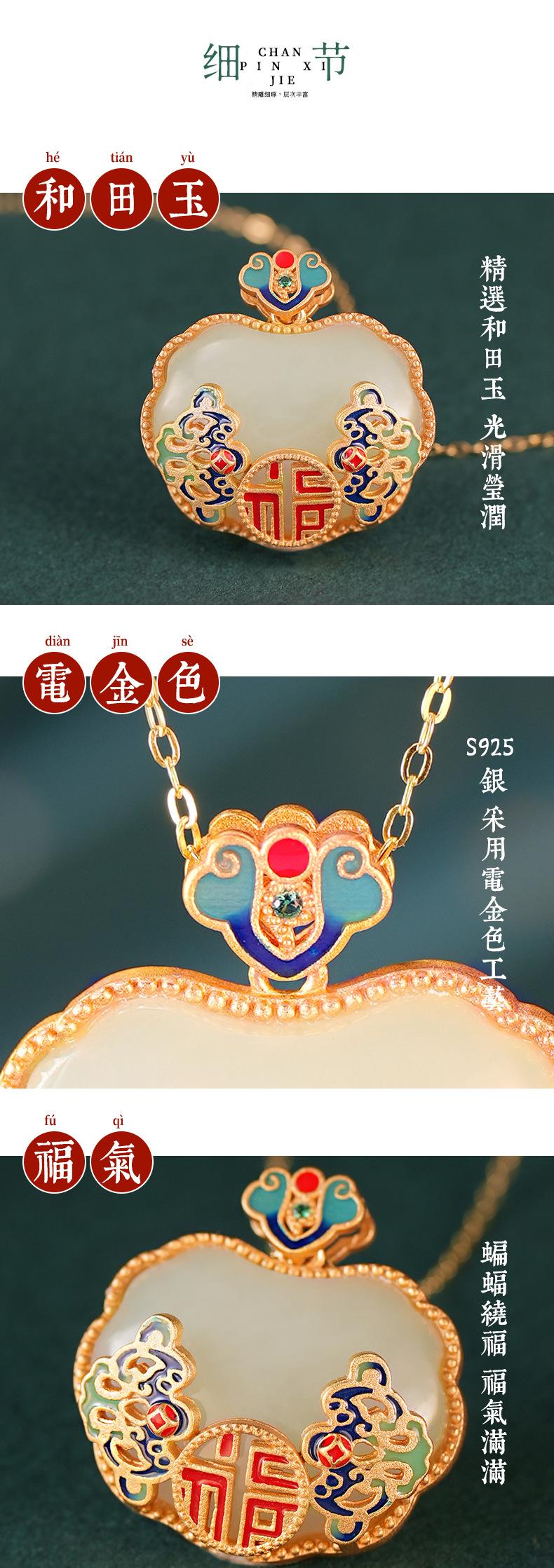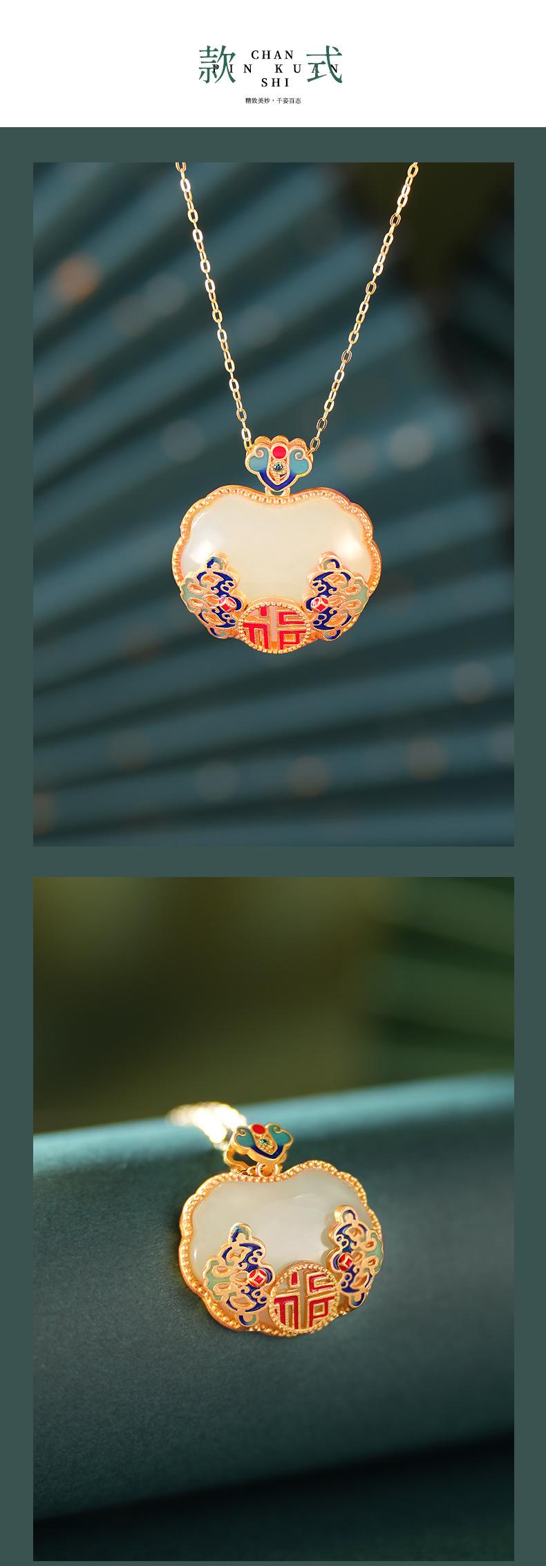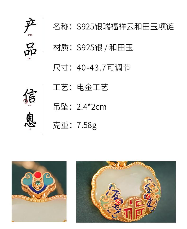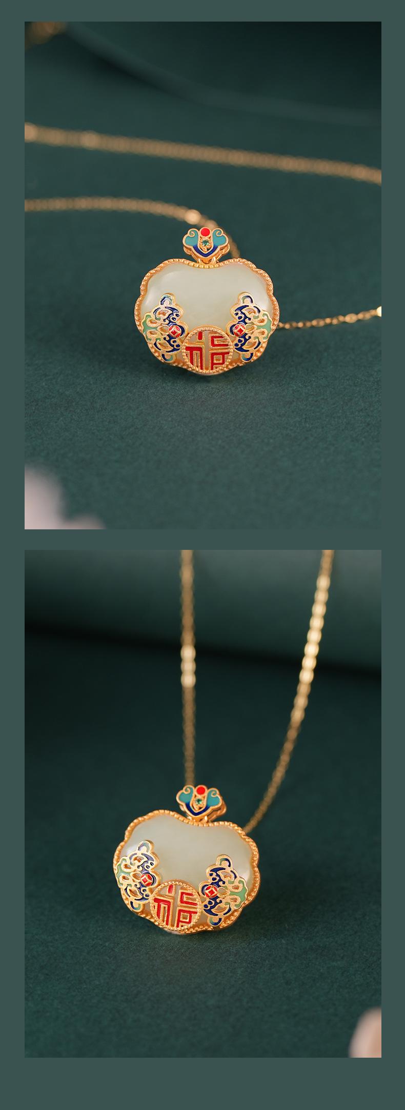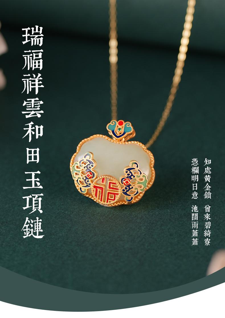 Enamel color Ruifu Xiangyun Hetian jade necklace [about 7.58G]]