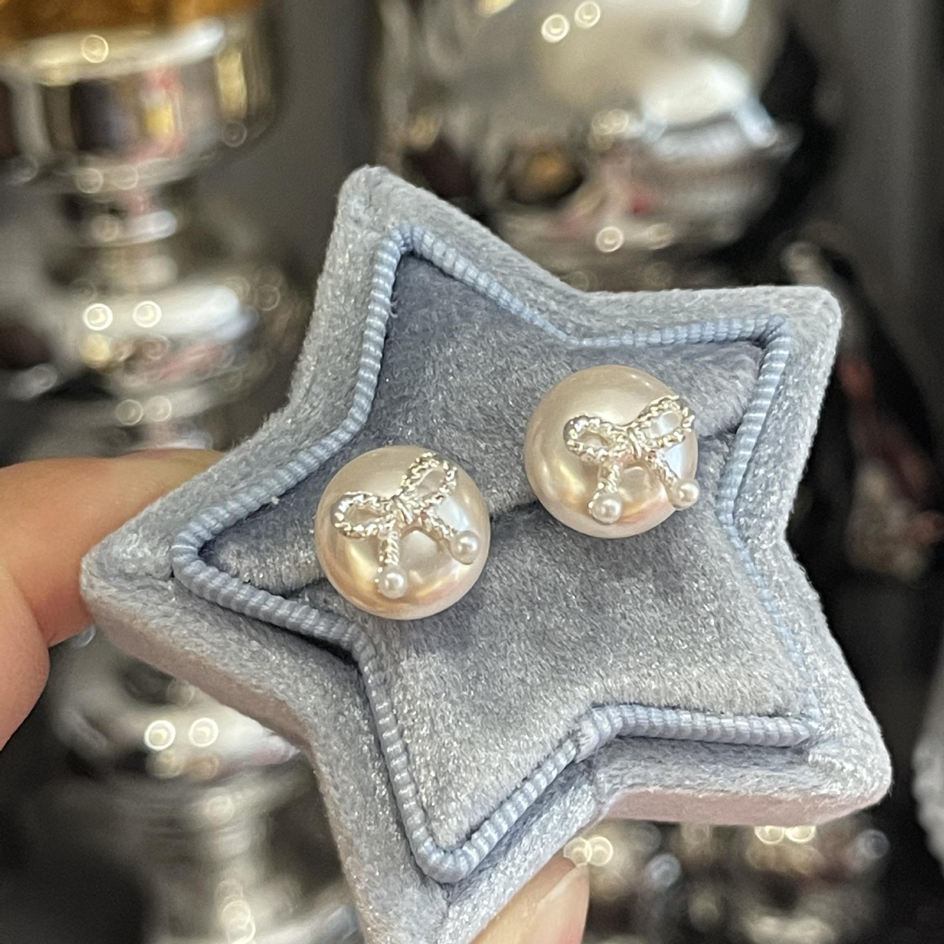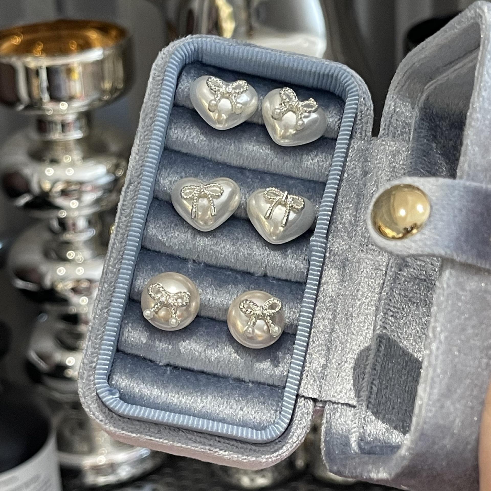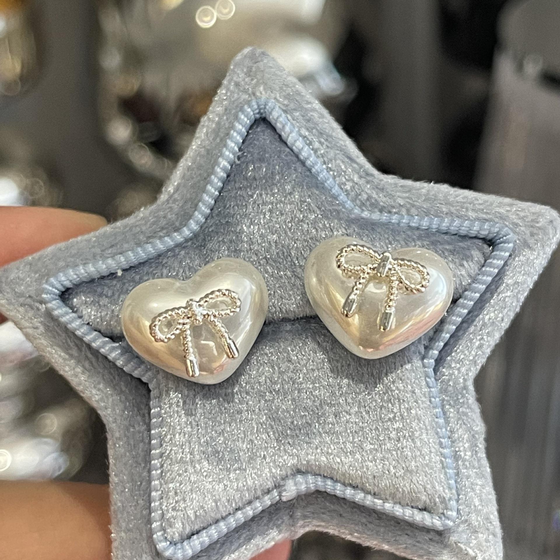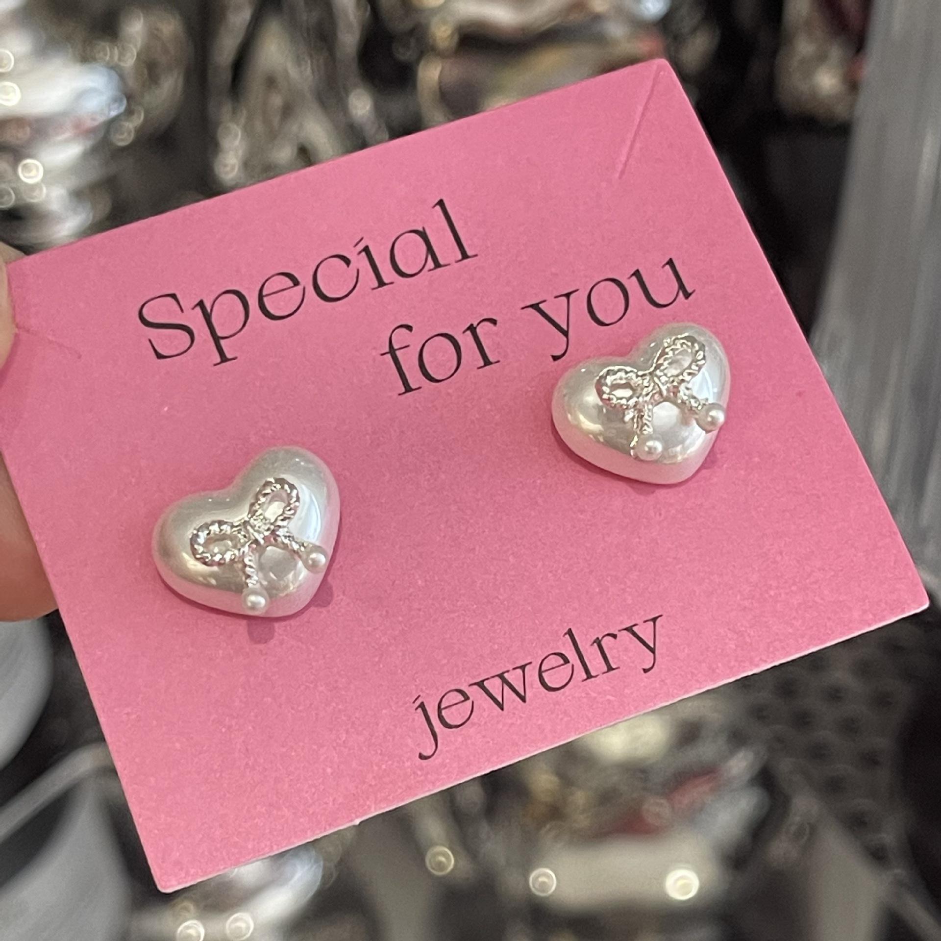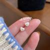 Pendientes pequeños con lazo de perla en forma de corazón, aguja de plata S925, temperamento femenino, combinables, pequeños, lindos, apacibles, exquisitos.