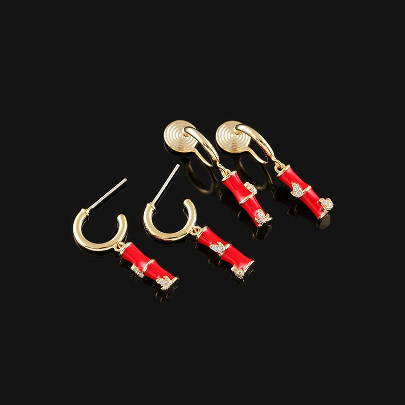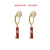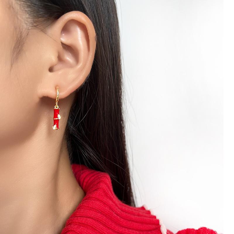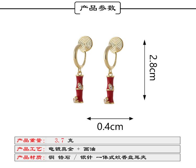 EH811 Pendientes de estilo chino de corte alto, sin perforaciones, con clip para la oreja integrado de bambú tridimensional rojo y espiral antimosquitos