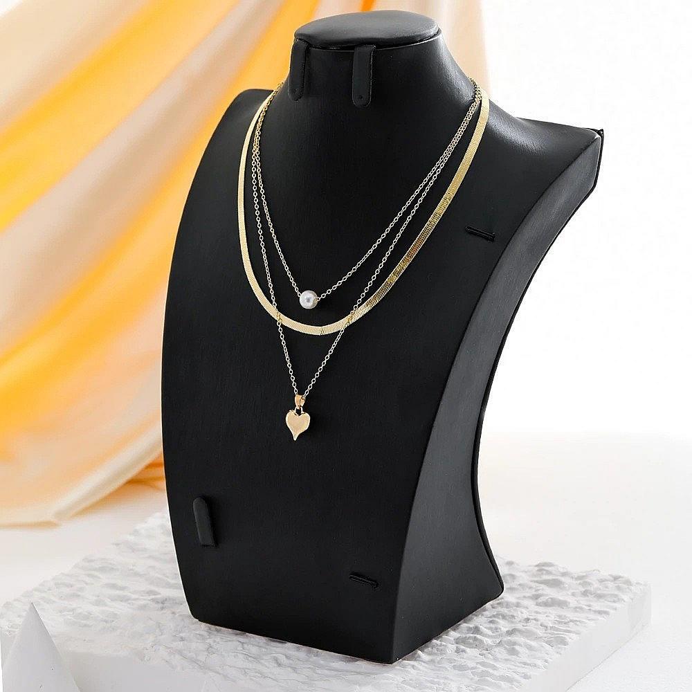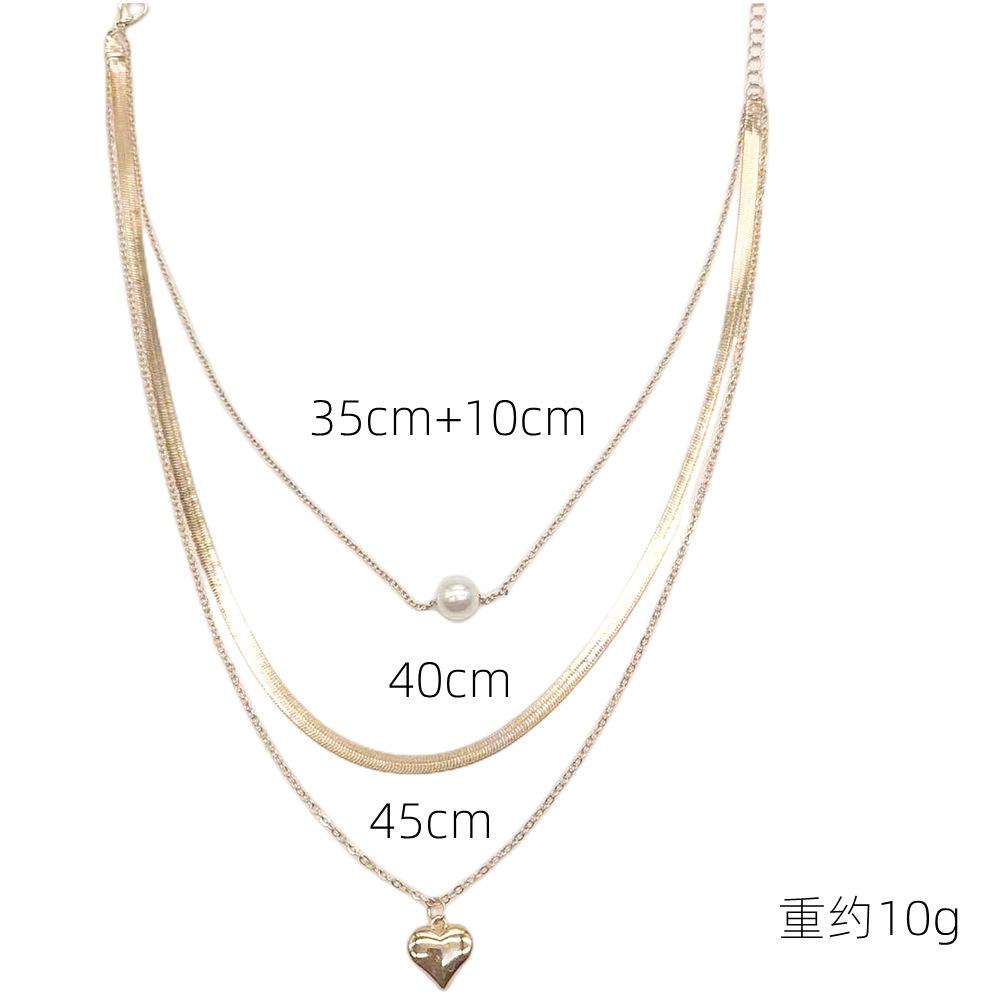Joyería Transfronteriza Europea y Americana, Moderna, Genial, de Alta Gama, Collar de Corazón para Mujer, Collar Simple de Perlas de Imitación de Tres Capas