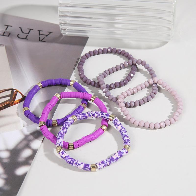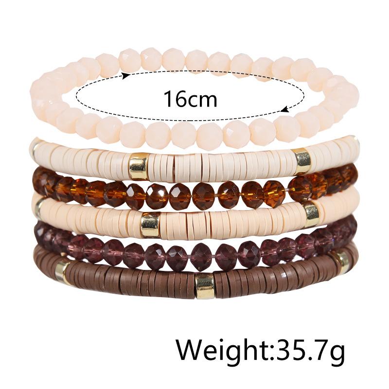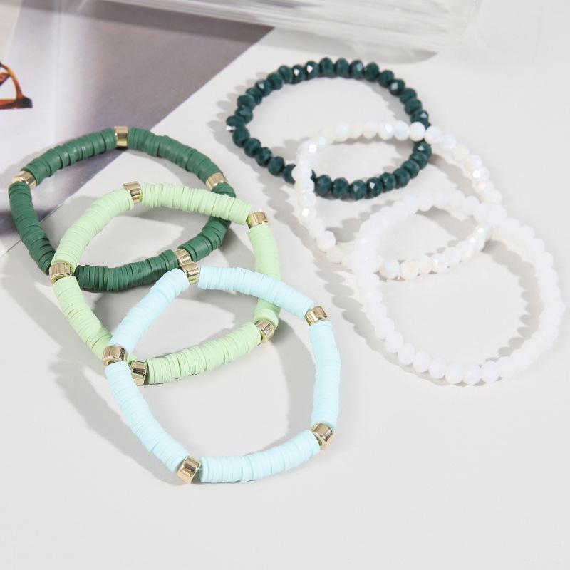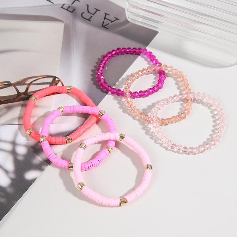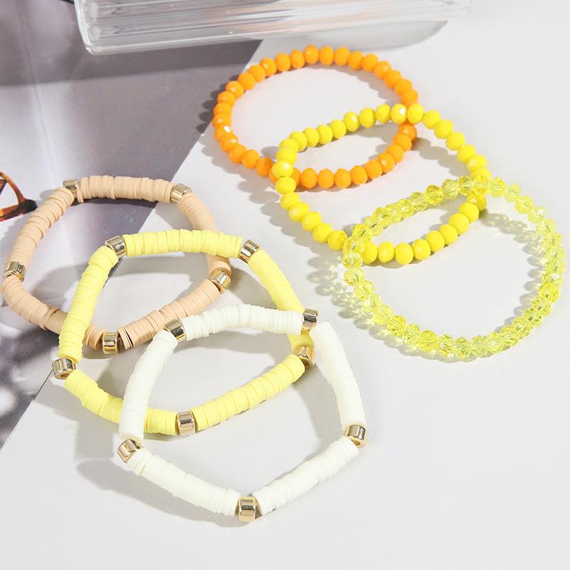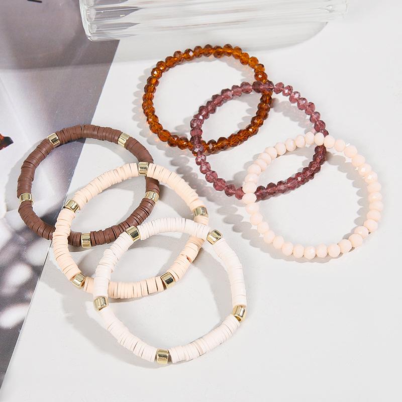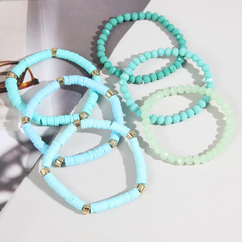Pulsera de joyería transfronteriza europea y americana de color arcilla polimérica suave cristal con cuentas combinación de 6 piezas pulsera de estilo bohemio al por mayor