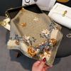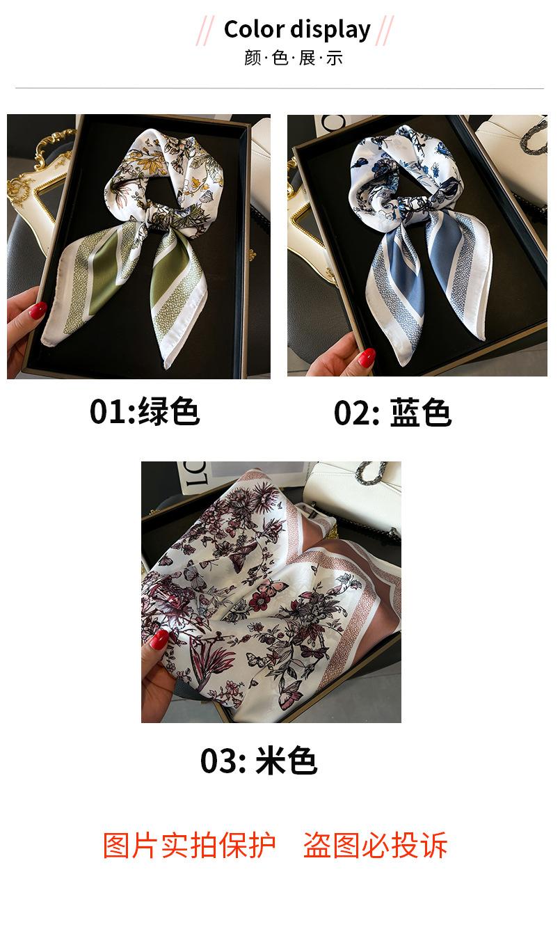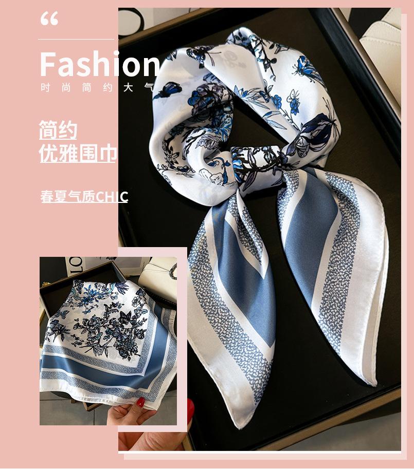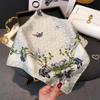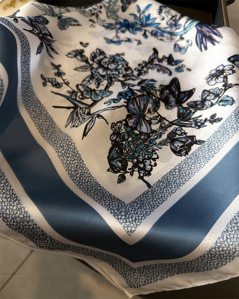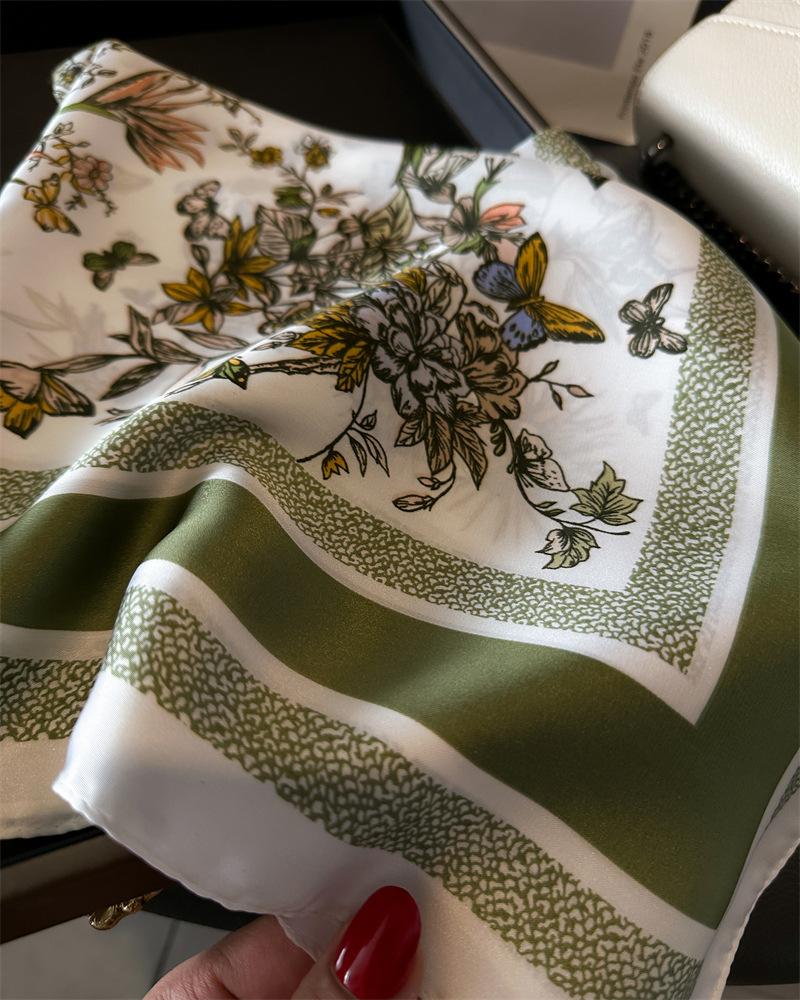 Versión coreana de primavera y verano de la bufanda estampada de seda de imitación cuadrada pequeña con flores de mariposa, nueva bufanda de moda, bufanda profesional.