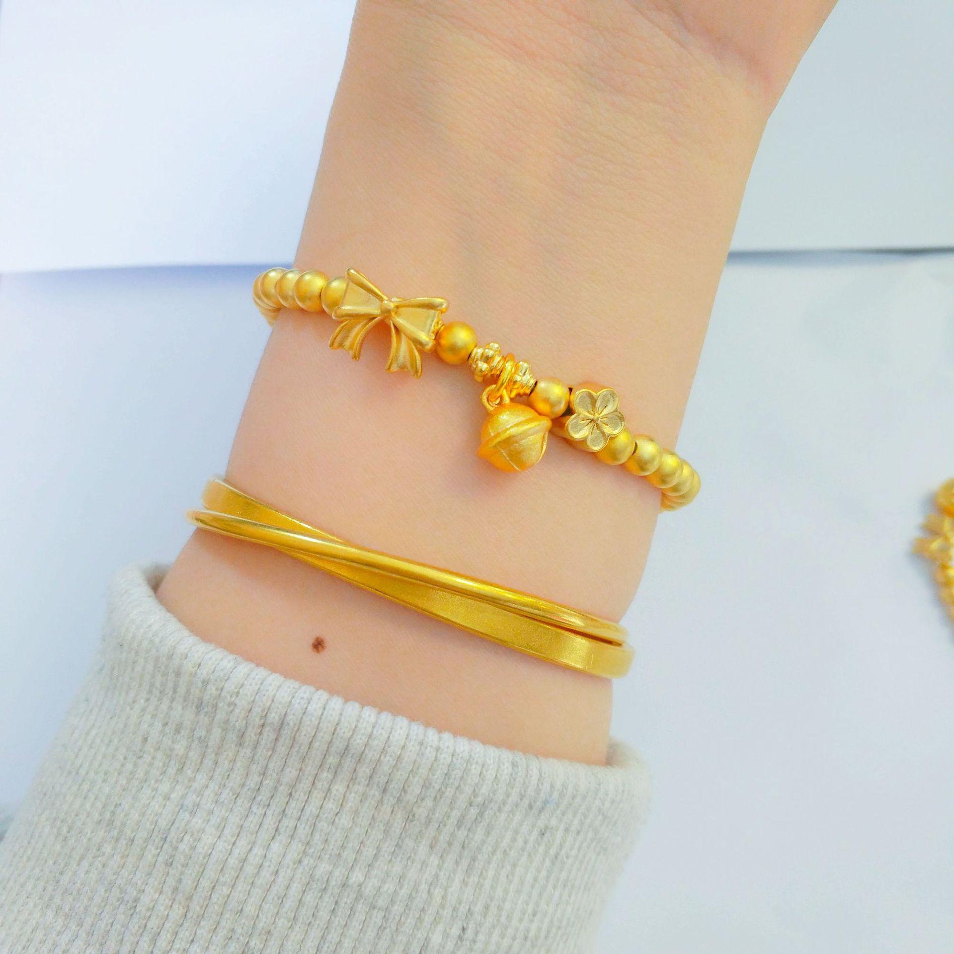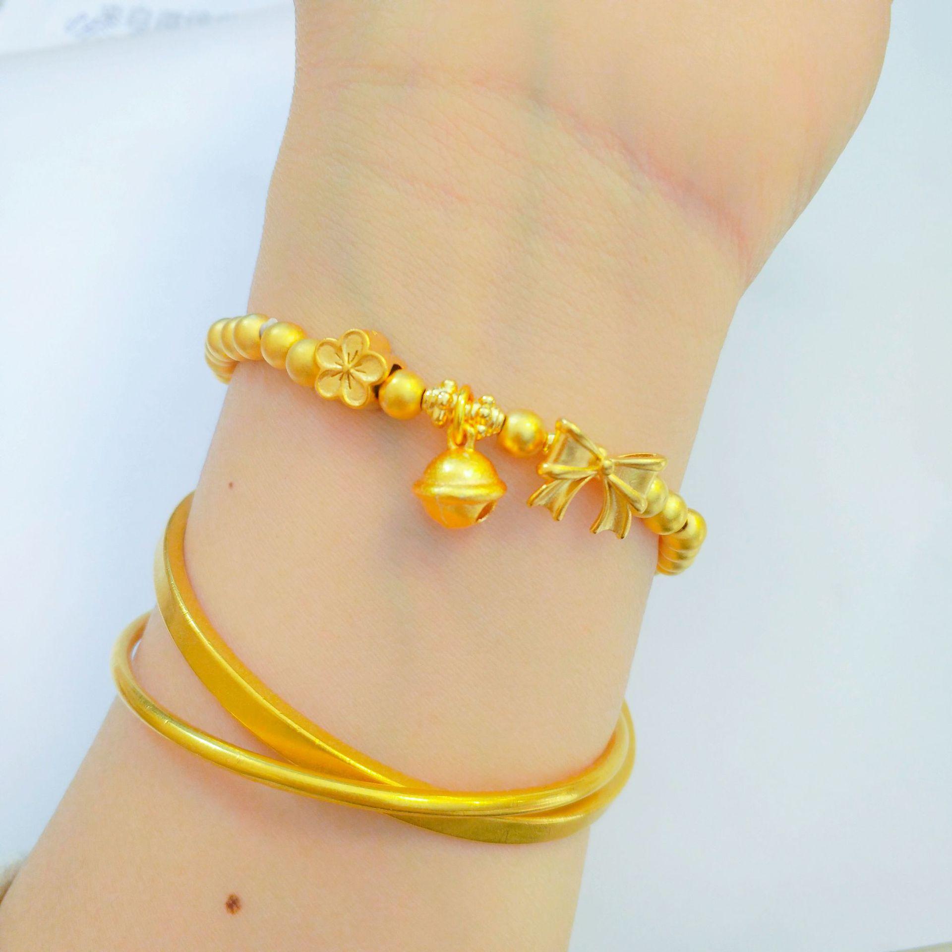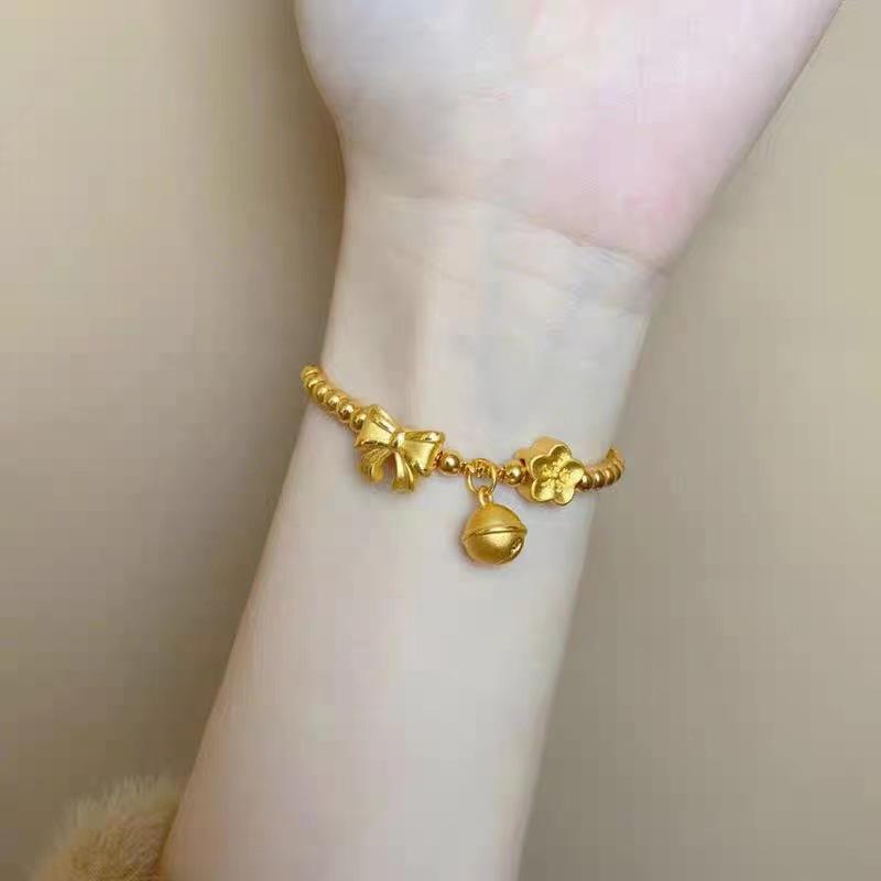 Pulsera Vietnam Arena Oro Melocotón Lazo Campana a la Fuga Pulsera de Princesa Joyería Chapada en Oro Cobre Pulsera de Mujer