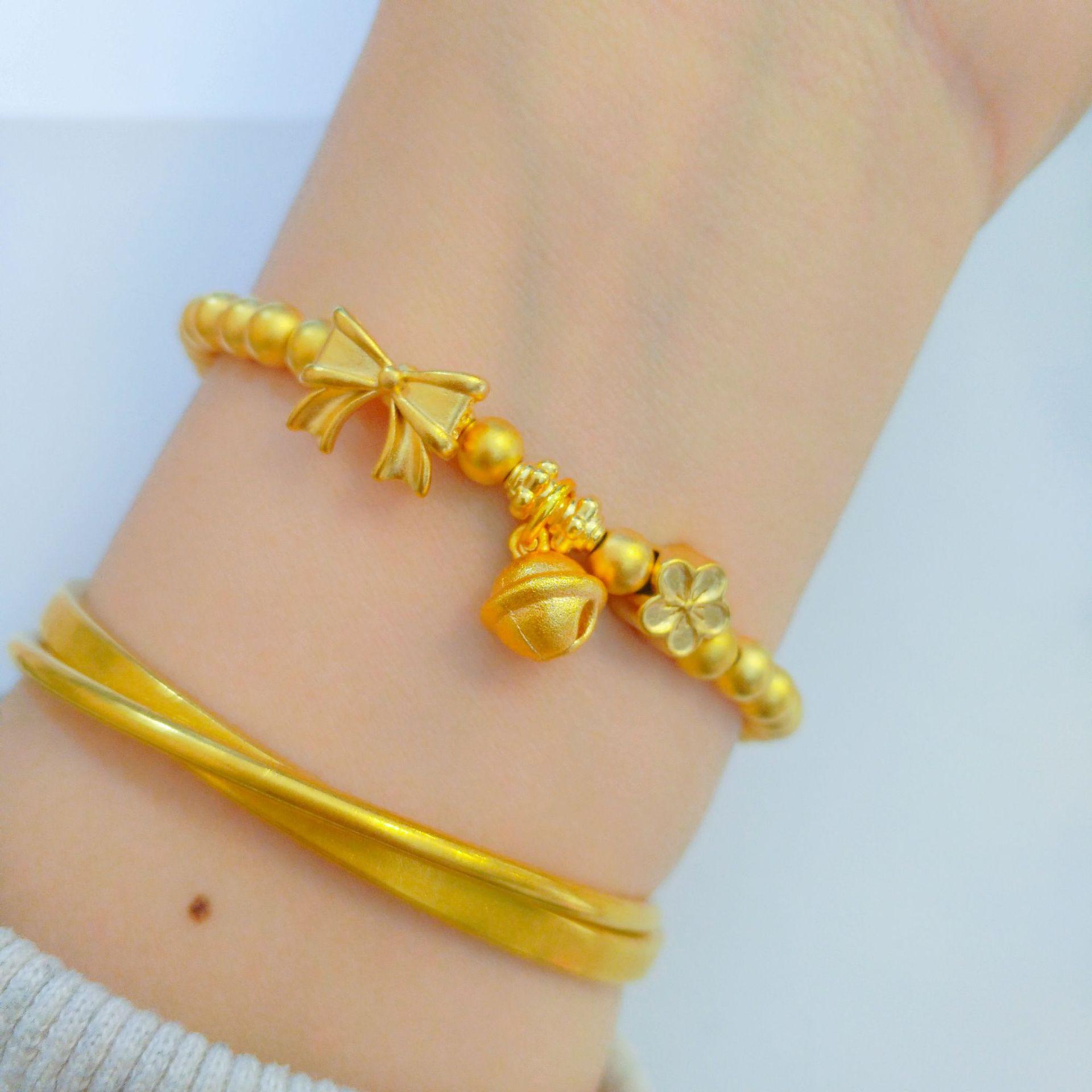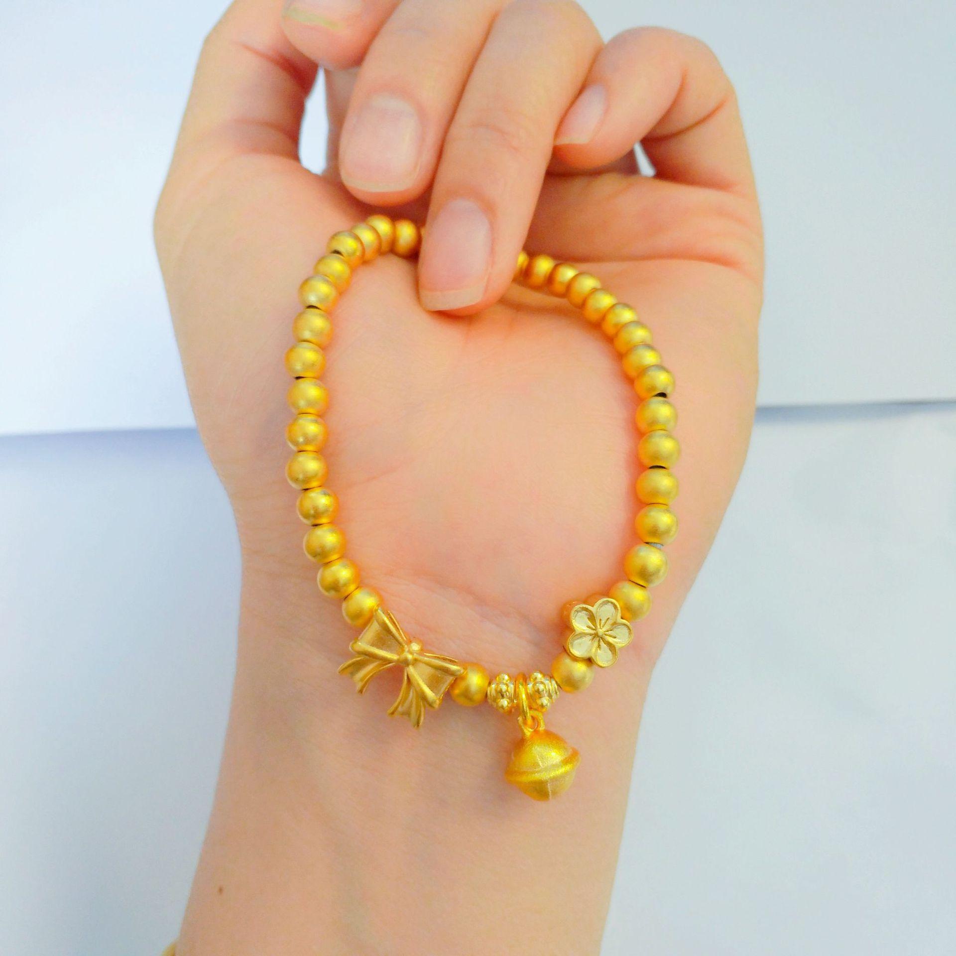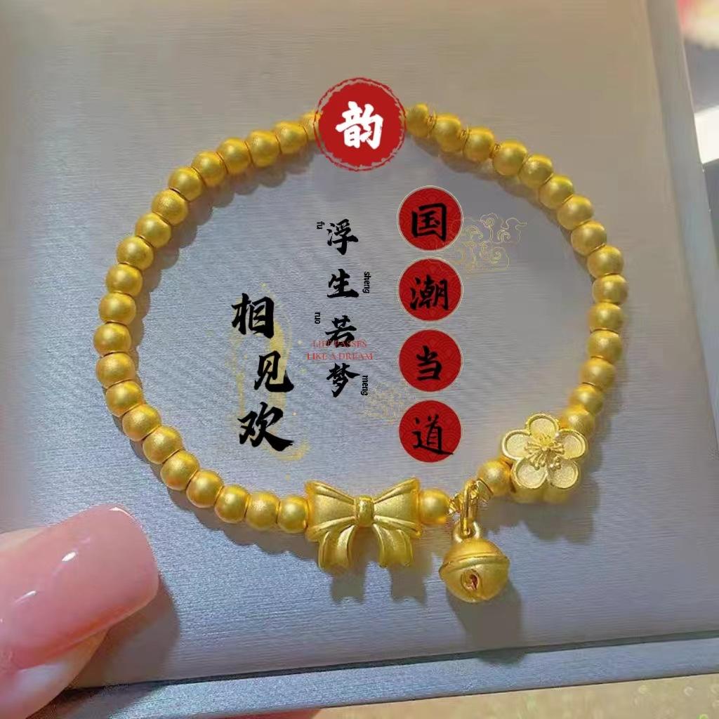 Pulsera Vietnam Arena Oro Melocotón Lazo Campana a la Fuga Pulsera de Princesa Joyería Chapada en Oro Cobre Pulsera de Mujer