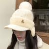 Gorro de lana gruesa de felpa para mujer, gorro de punto sencillo a la moda, gorro de invierno para exteriores con protección para los oídos, gorro cálido a prueba de frío, venta al por mayor