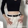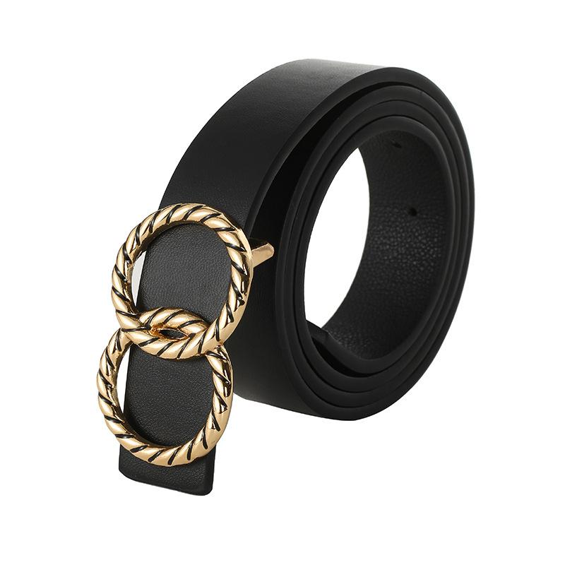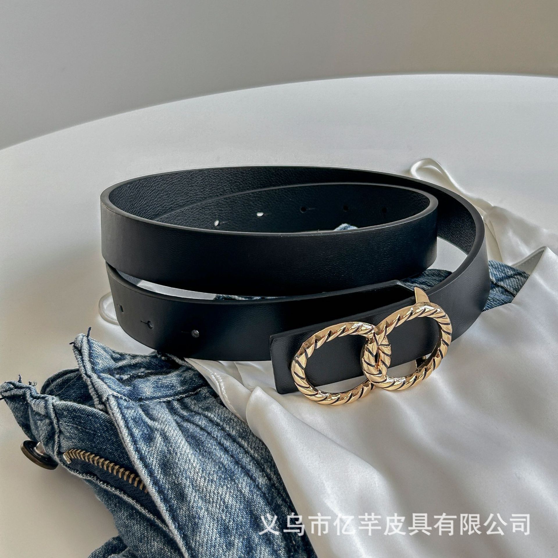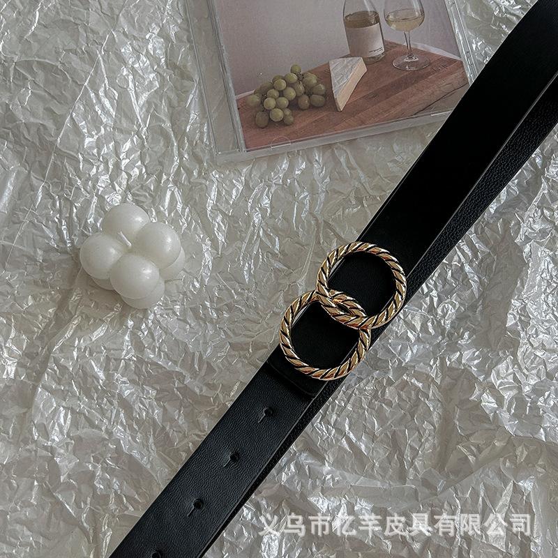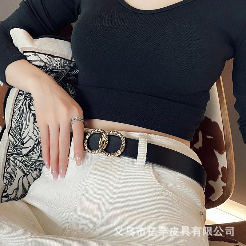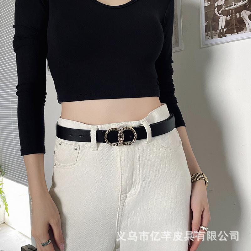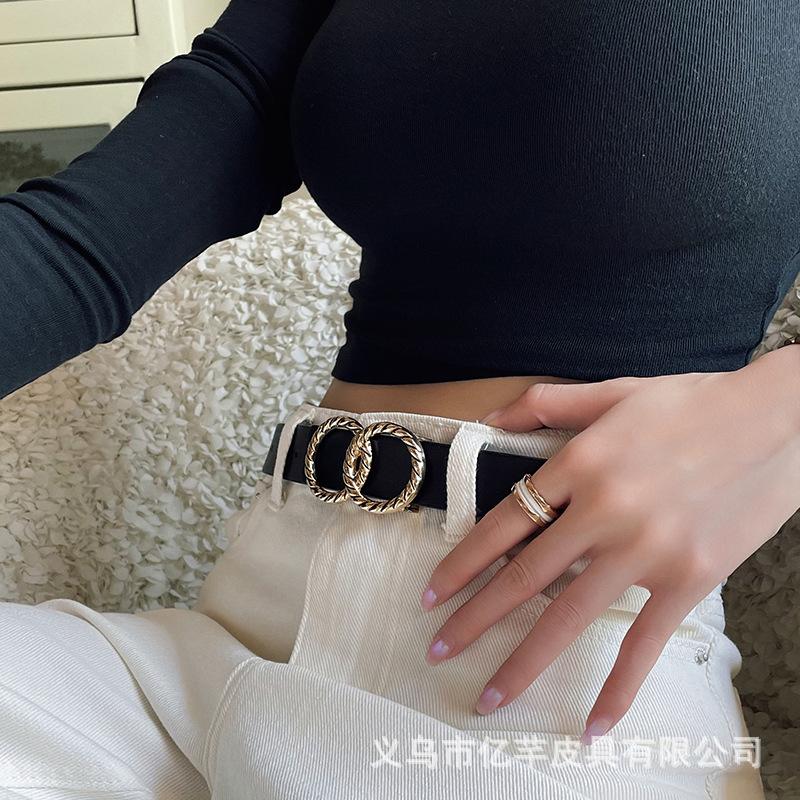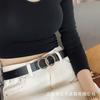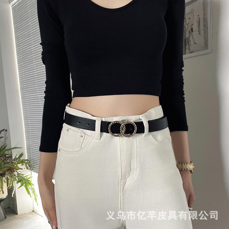 Cinturón de mujer con hebilla redonda, combina con todo, de piel sintética, moderno, sencillo, retro, negro, de alta calidad, para pantalones vaqueros, venta al por mayor