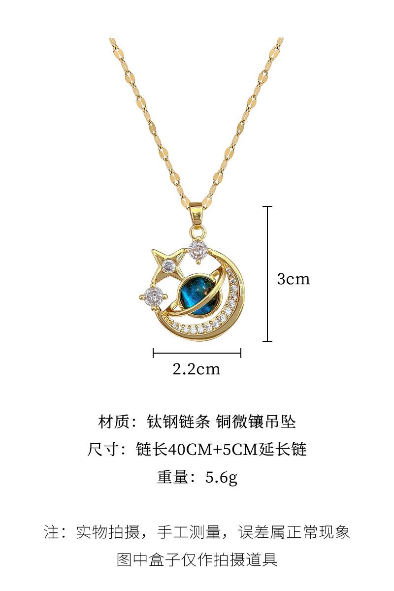 [Acero de titanio] Collar elegante y lujoso con forma de estrella, luna y luz de estrella, con diamantes, cadena de clavícula para mujer, cadena de acero de titanio.