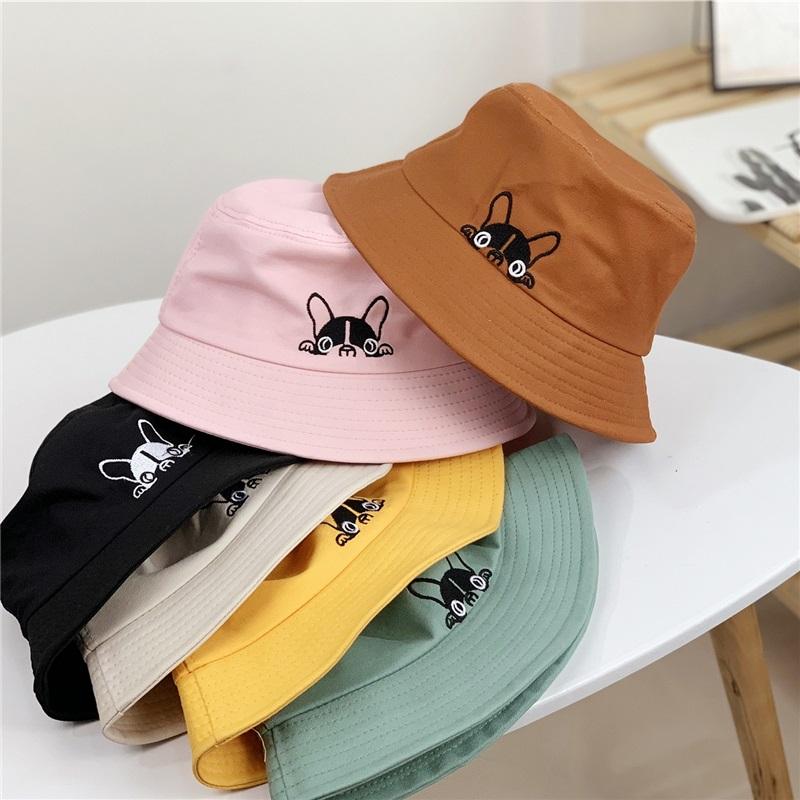 Sombrero Japonés Lindo de Dibujos Animados con Patrón de Cachorro para Pareja, Viaje, Parasol, Copa Plana, Sombrero de Cubeta, Para Hombre y Mujer, Versátil, Sombrero de Pescador, Primavera