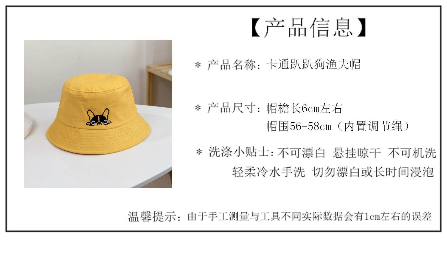 Yellow cartoon dog fisherman hat, Green cartoon dog fisherman hat, Beige Cartoon Dog Fisherman Hat, Pink carto...