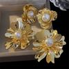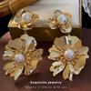 Pendientes de cobre metálico personalizados con flor de perla de imitación de plata, pendientes de alta gama de temperamento exagerado de moda europea y americana para mujer