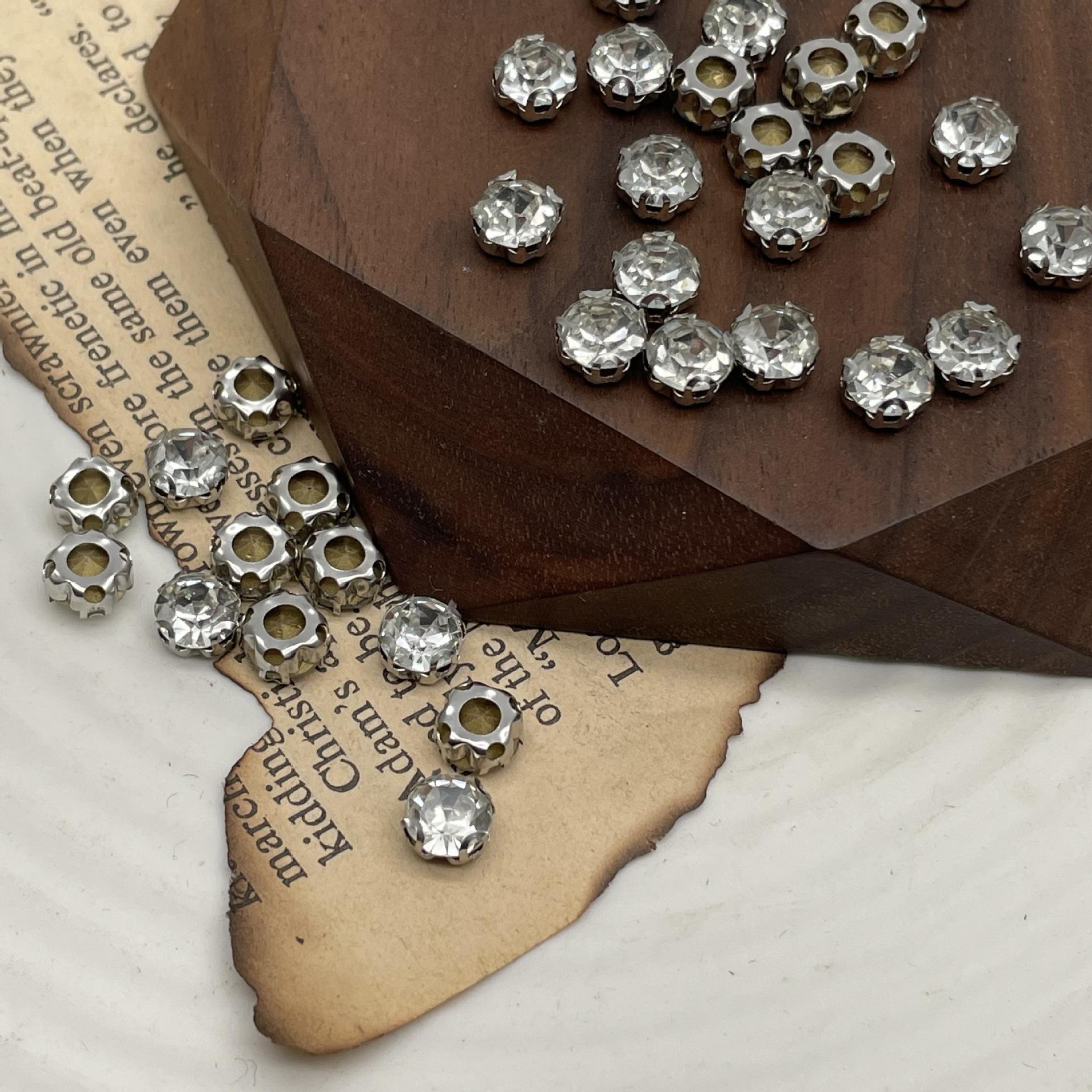 Cristales de Estrás Redondos de Cuatro Puntas al por Mayor en Stock para Máquina y Costura a Mano DIY Accesorios para Vestido de Novia