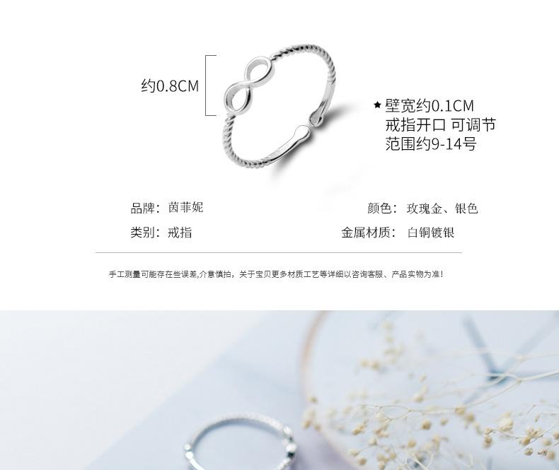 Anillo femenino de estilo coreano, simple, a la moda, pequeño, fresco, infinito, anillo de 8 palabras, temperamento, apertura giratoria, anillo de dedo de comida, venta al por mayor