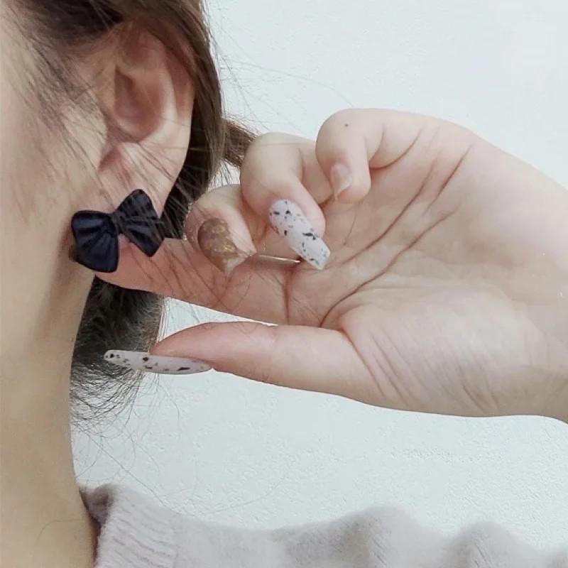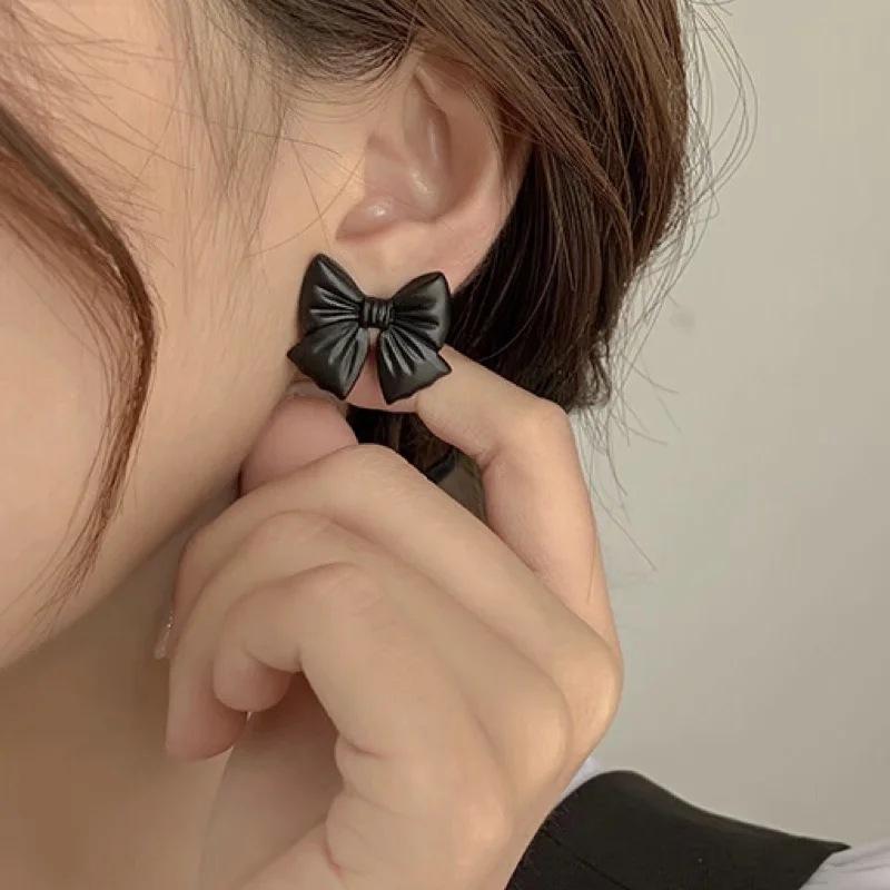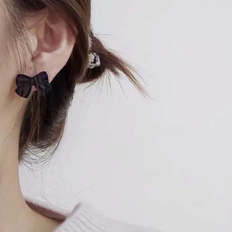 Pendientes Temperamento Negro ~ Lazo de Perla Casual para Mujer Pendientes Pequeños Exquisitos Pendientes Lindos de Celebridad Coreana de Internet