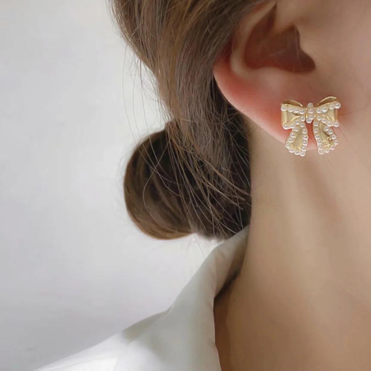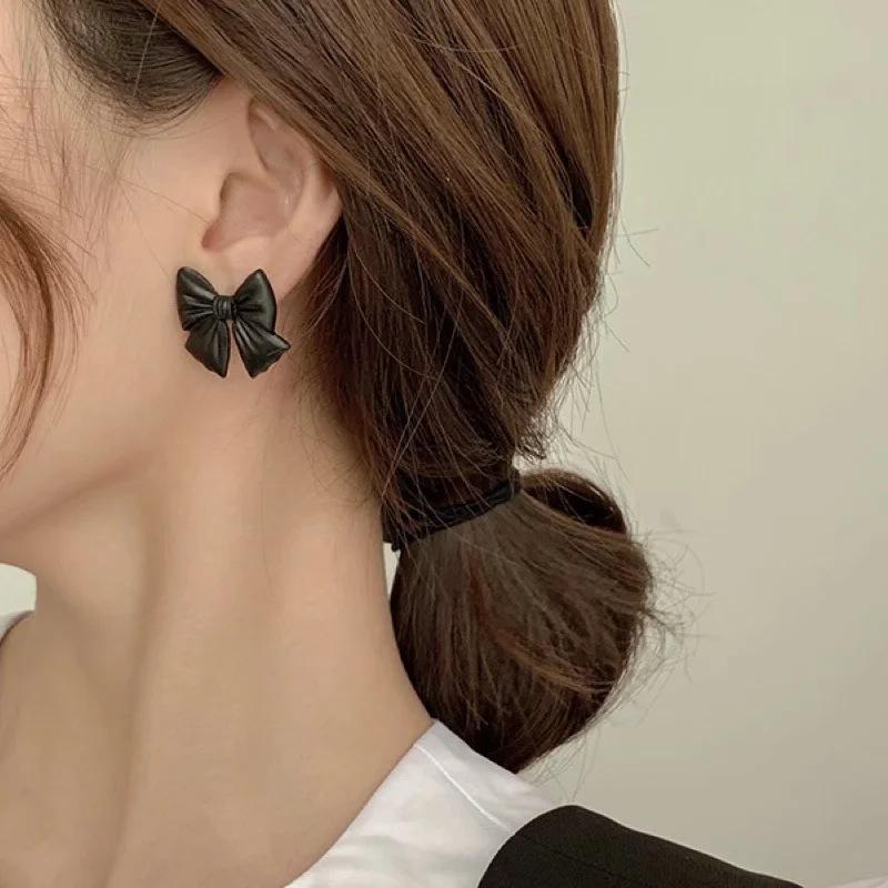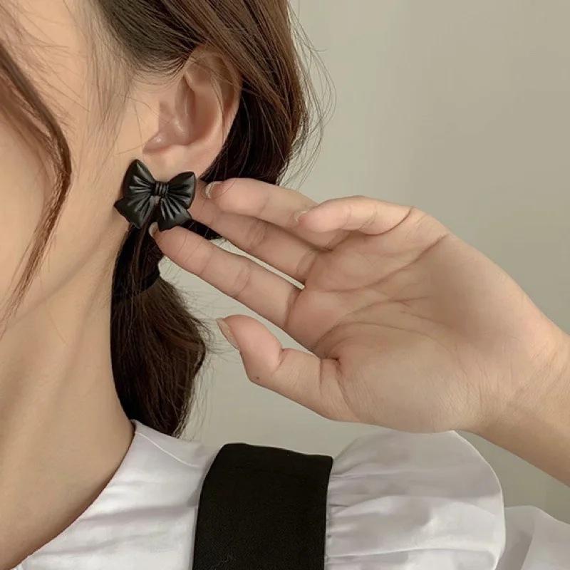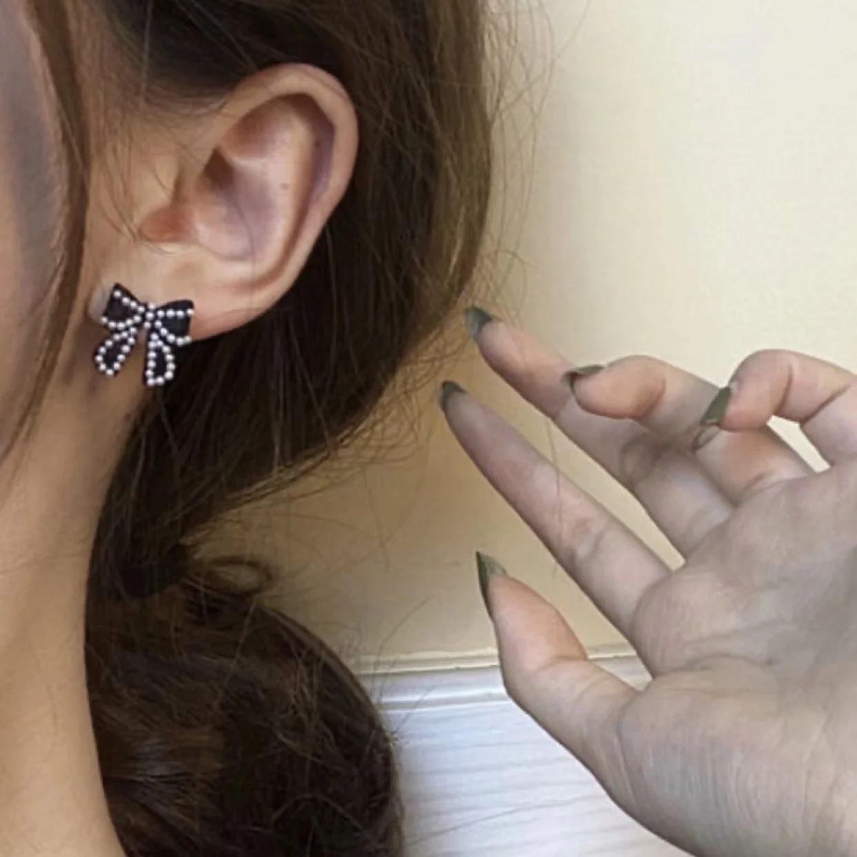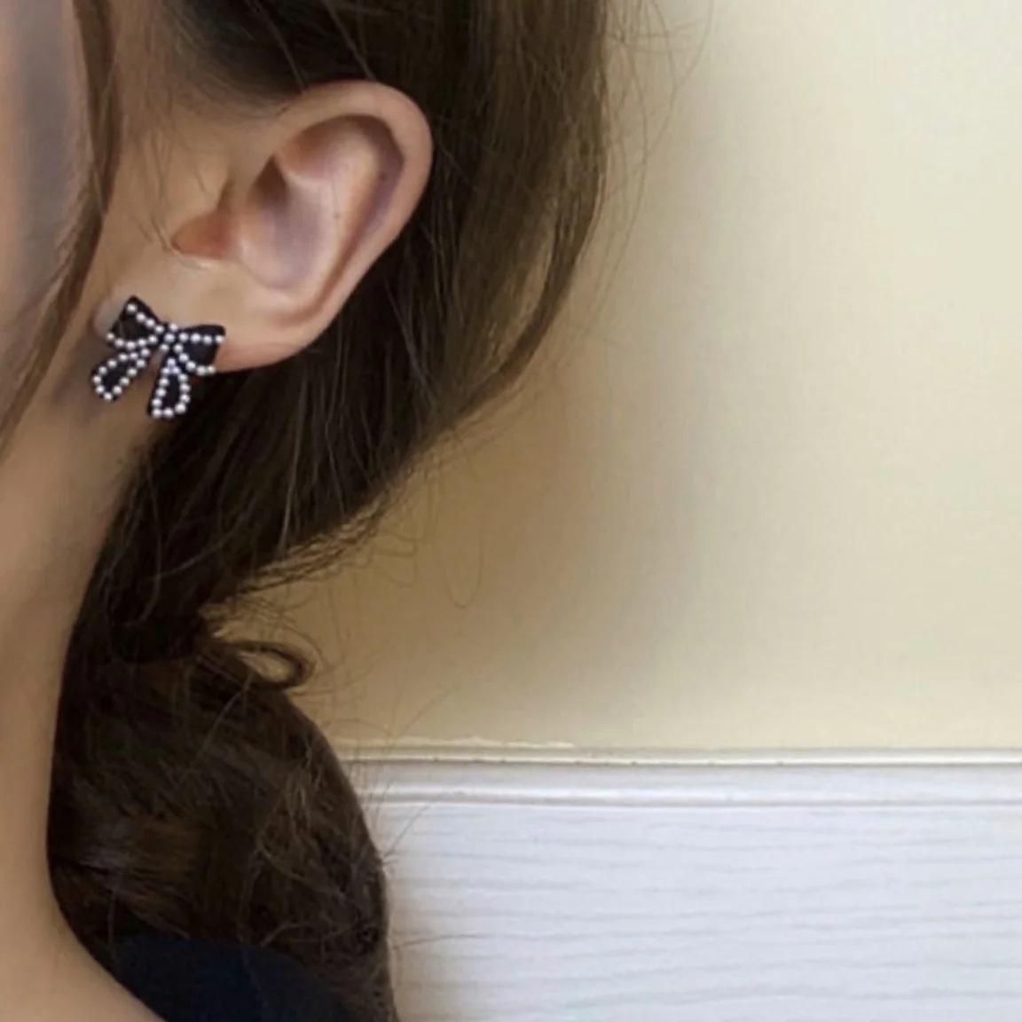Compra Pendientes Temperamento Negro ~ Lazo de Perla Casual para Mujer Pendientes Pequeños Exquisitos Pendientes Lindos de Celebridad Coreana de Internet al por mayor en Joom.pro