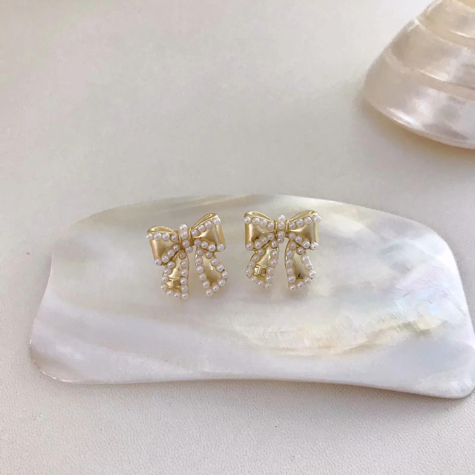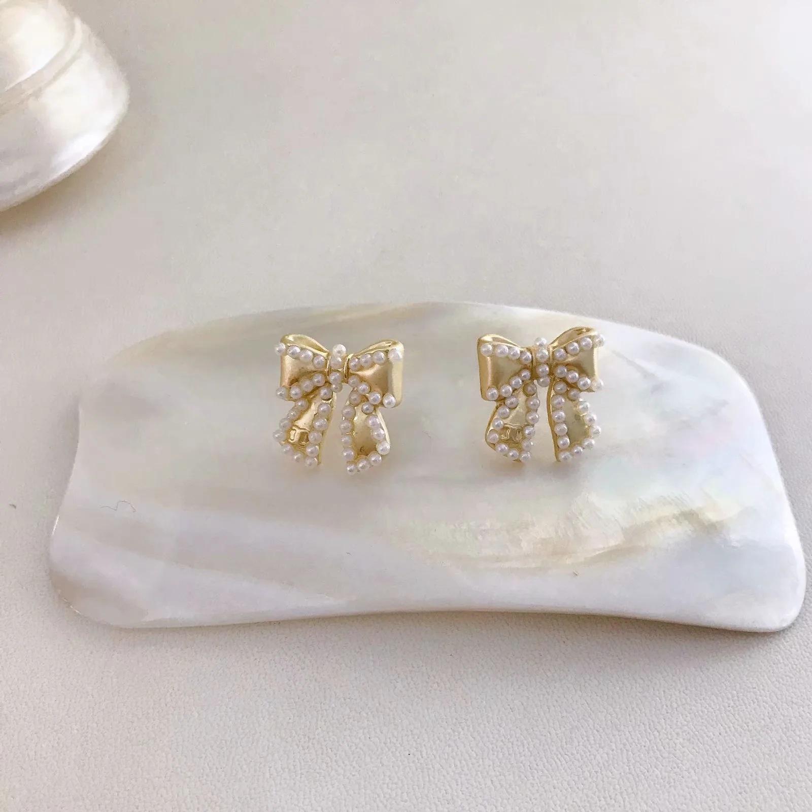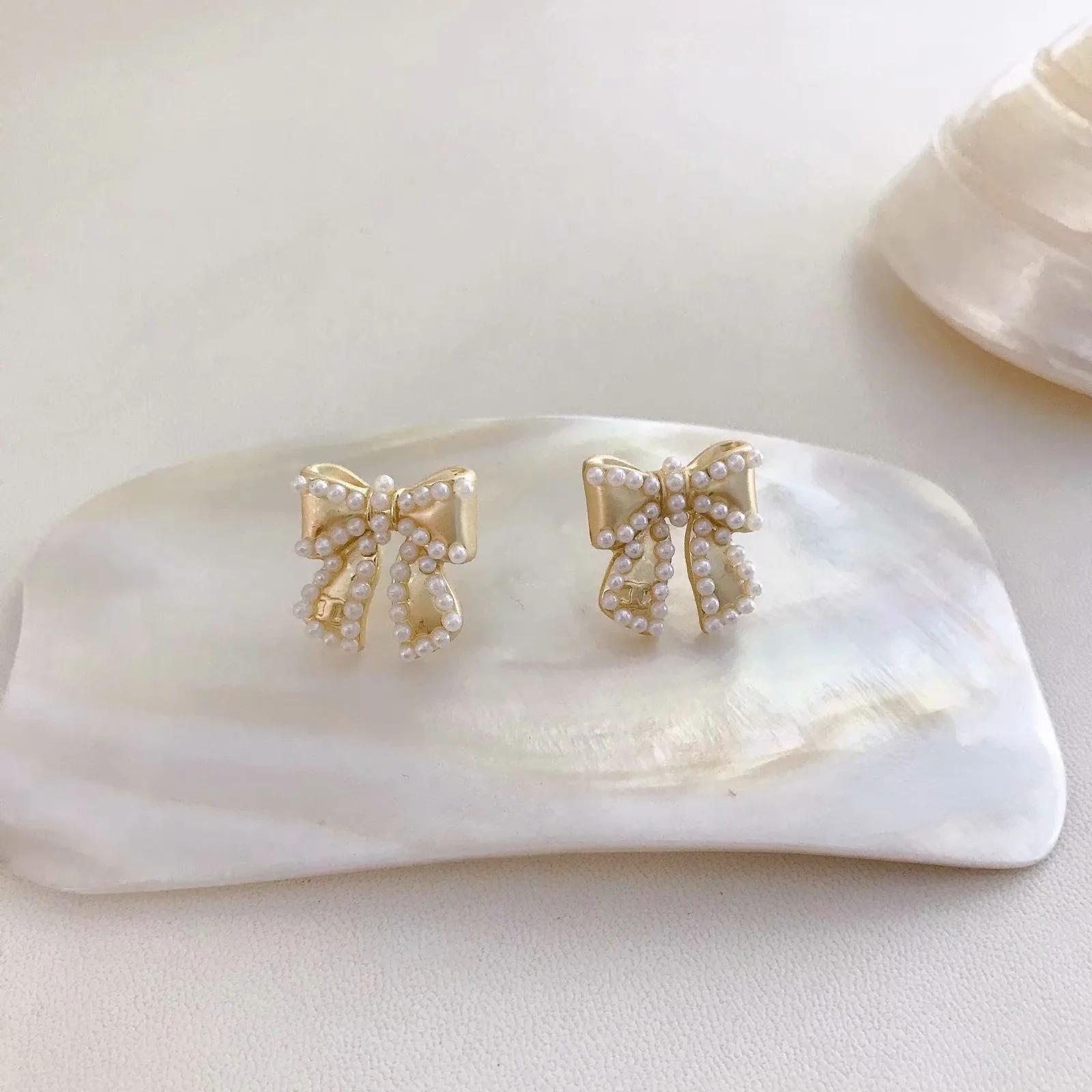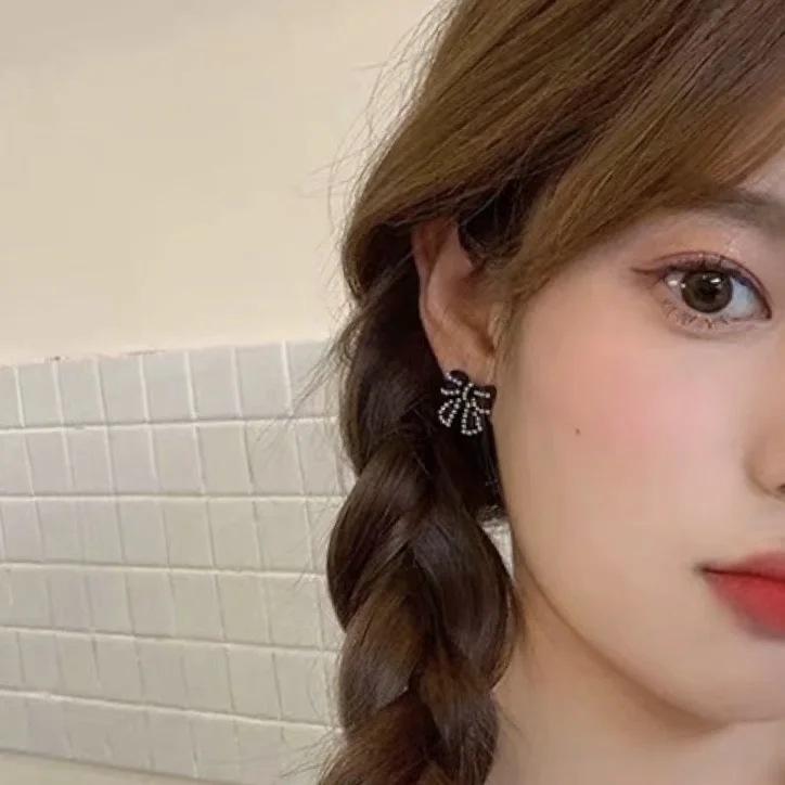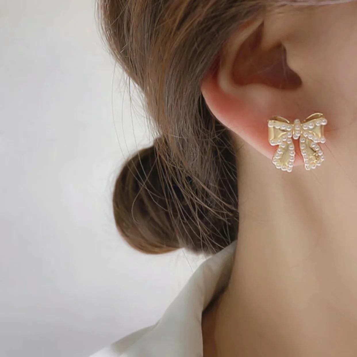 Compra Pendientes Temperamento Negro ~ Lazo de Perla Casual para Mujer Pendientes Pequeños Exquisitos Pendientes Lindos de Celebridad Coreana de Internet al por mayor en Joom.pro