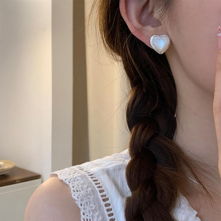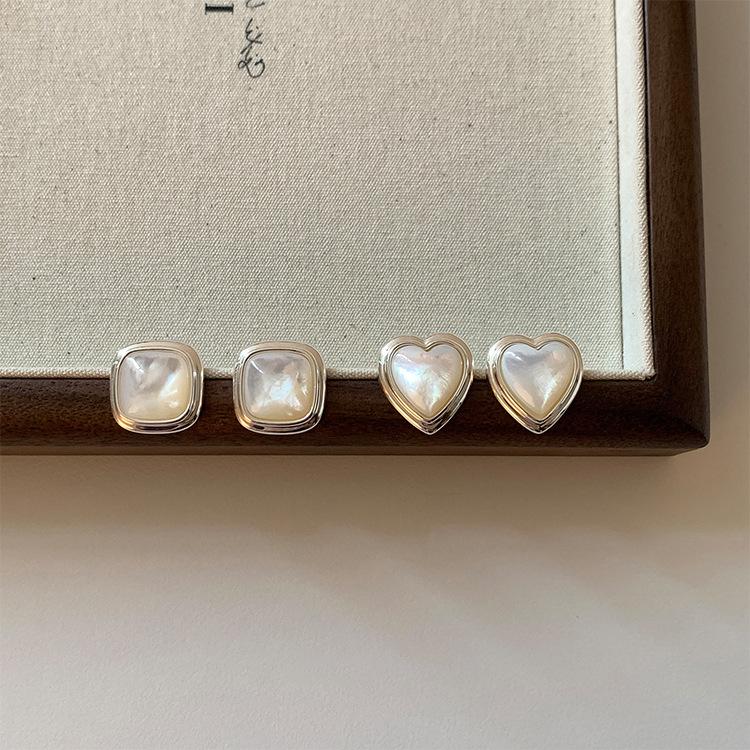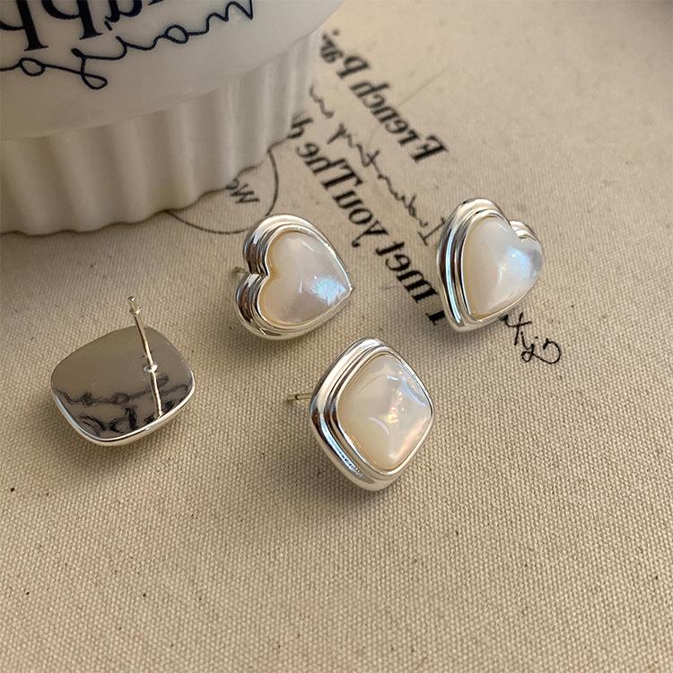 Heart-shaped earrings 925 silver needle plated with real gold, Square earrings 925 silver needle plated with real gold