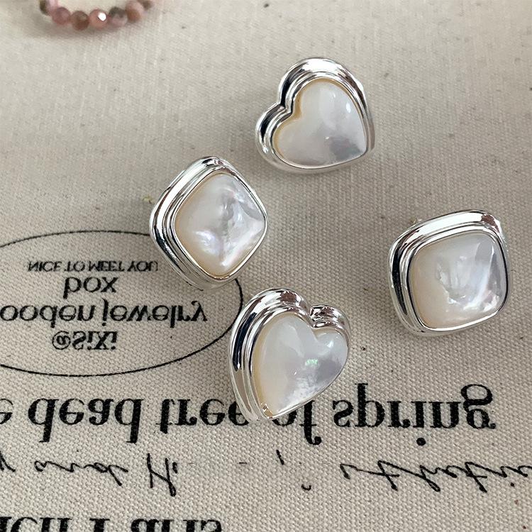 Hermosos pendientes de botón de metal con concha, diseño para mujer, estilo nicho, personalidad retro, pendientes de moda sencillos que combinan con todo