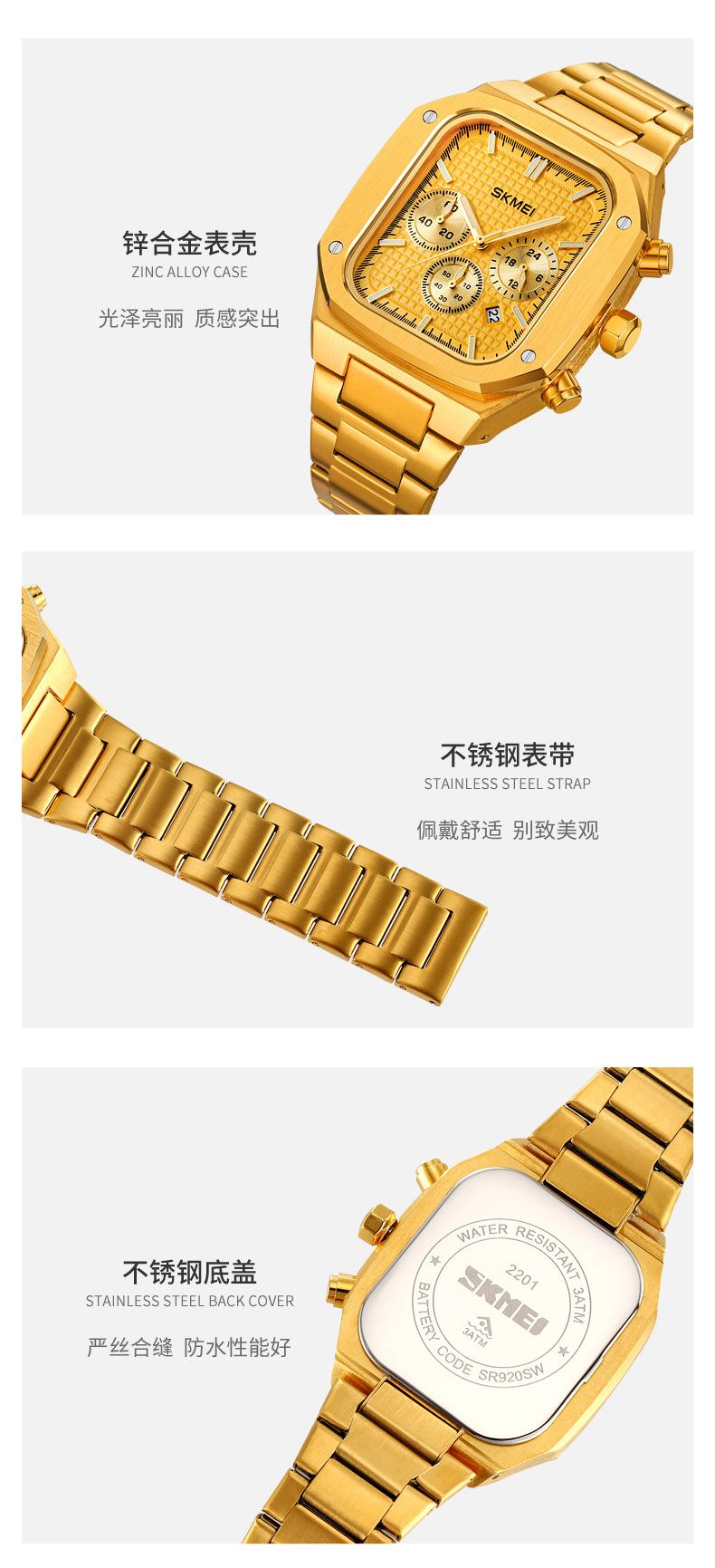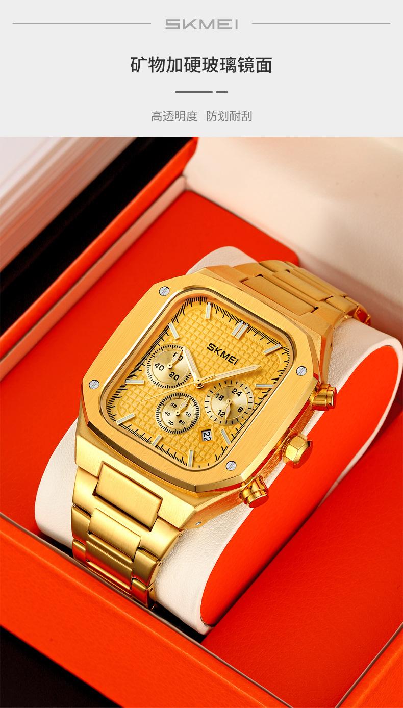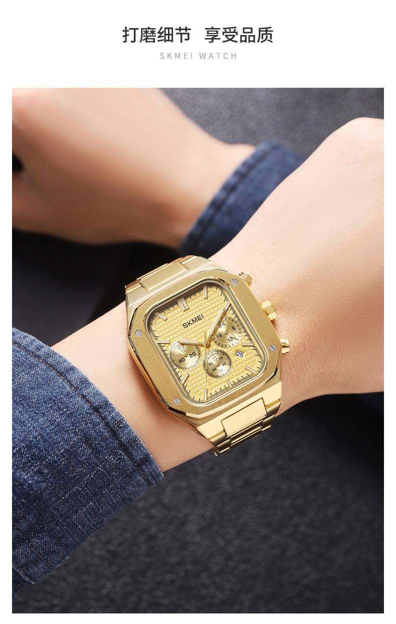 Compra Reloj de negocios Time Beauty para hombre, cronógrafo multifuncional de tres esferas y seis agujas, resistente al agua, calendario, correa de acero de cuarzo, dorado al por mayor en Joom.pro