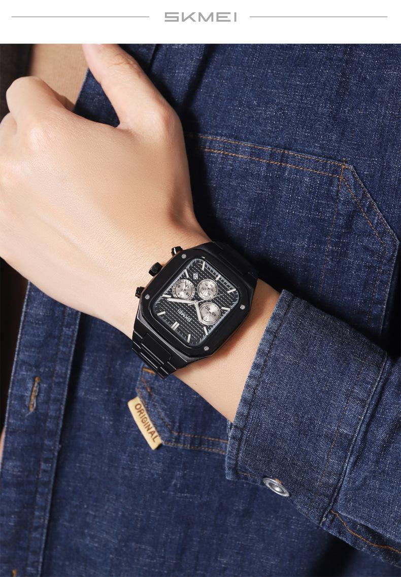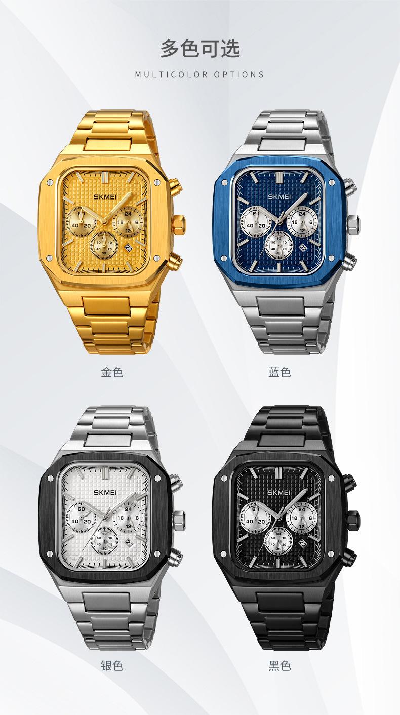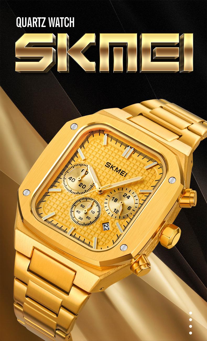 Compra Reloj de negocios Time Beauty para hombre, cronógrafo multifuncional de tres esferas y seis agujas, resistente al agua, calendario, correa de acero de cuarzo, dorado al por mayor en Joom.pro