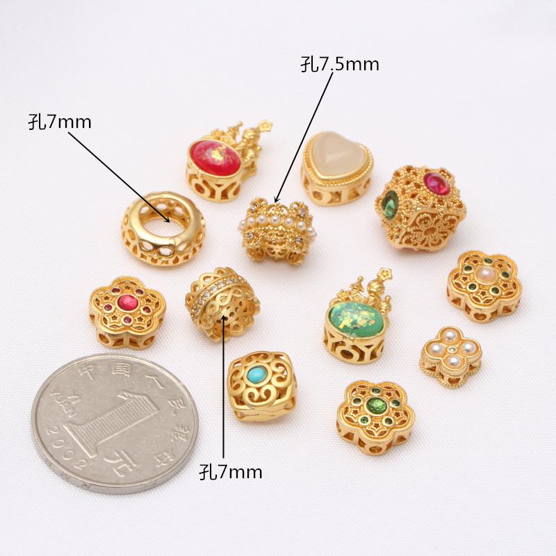Cuentas sueltas antiguas con incrustaciones de oro, cuentas de transferencia de oro arena, accesorios para pulseras DIY, pulsera con cuentas, cuentas, accesorios de joyería al por mayor