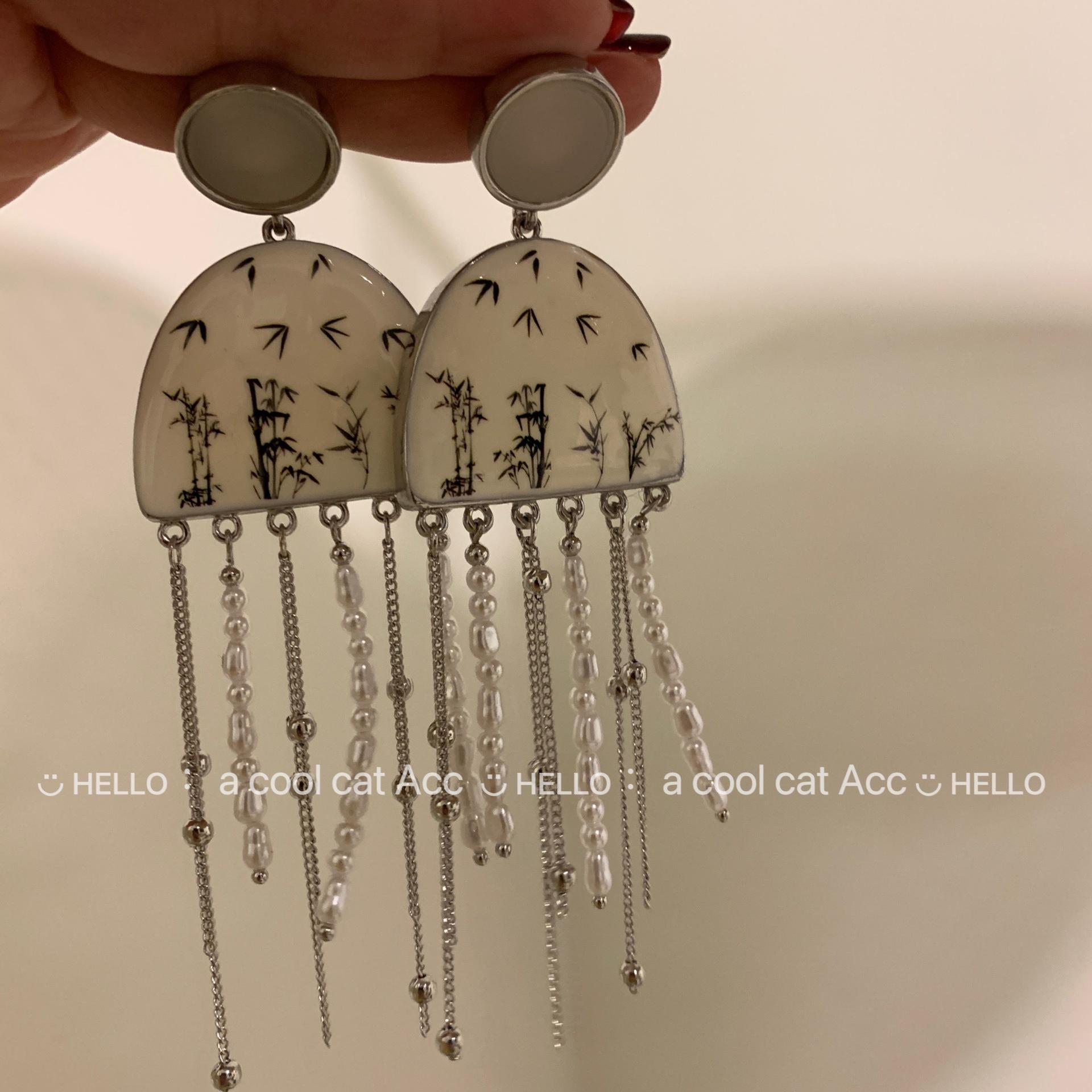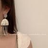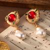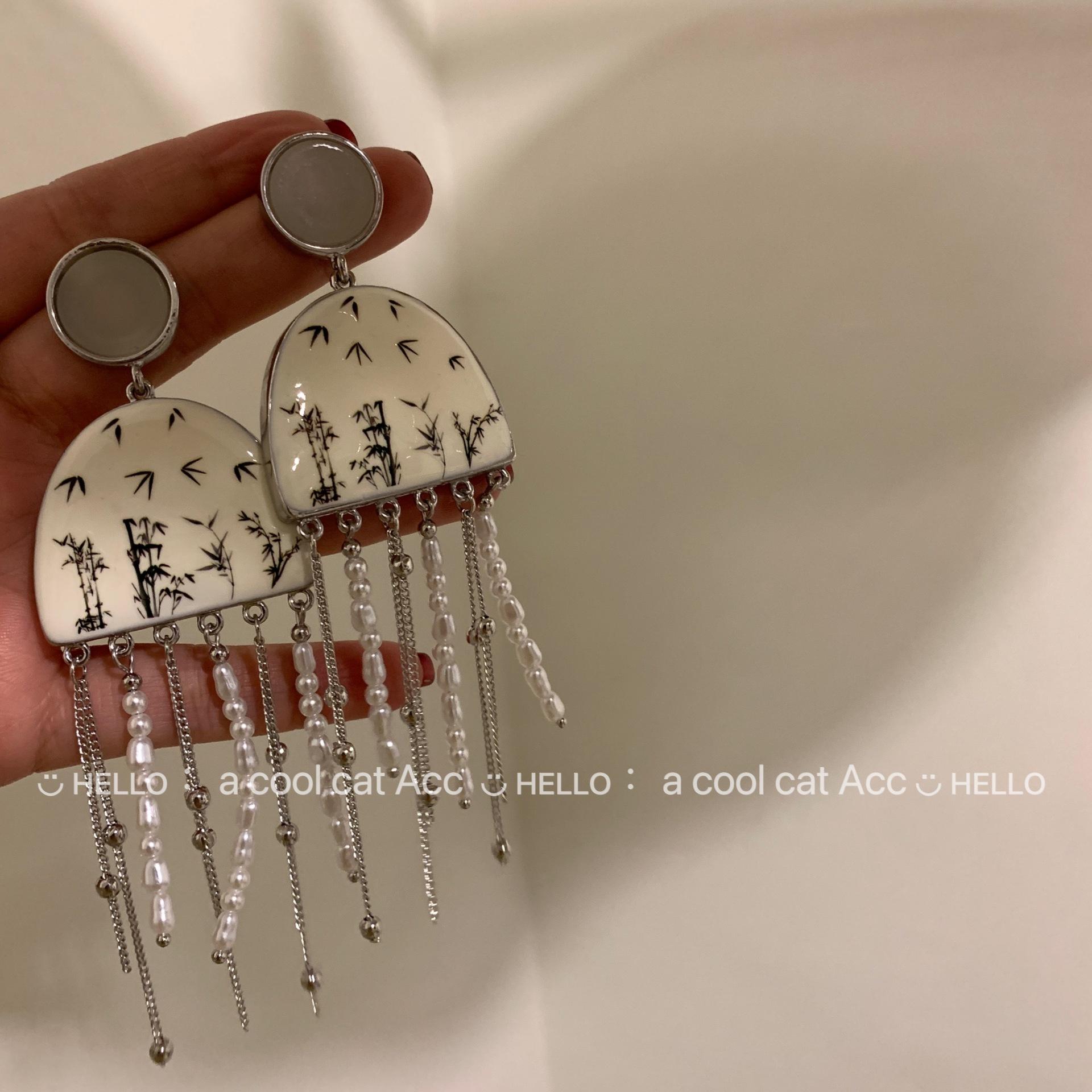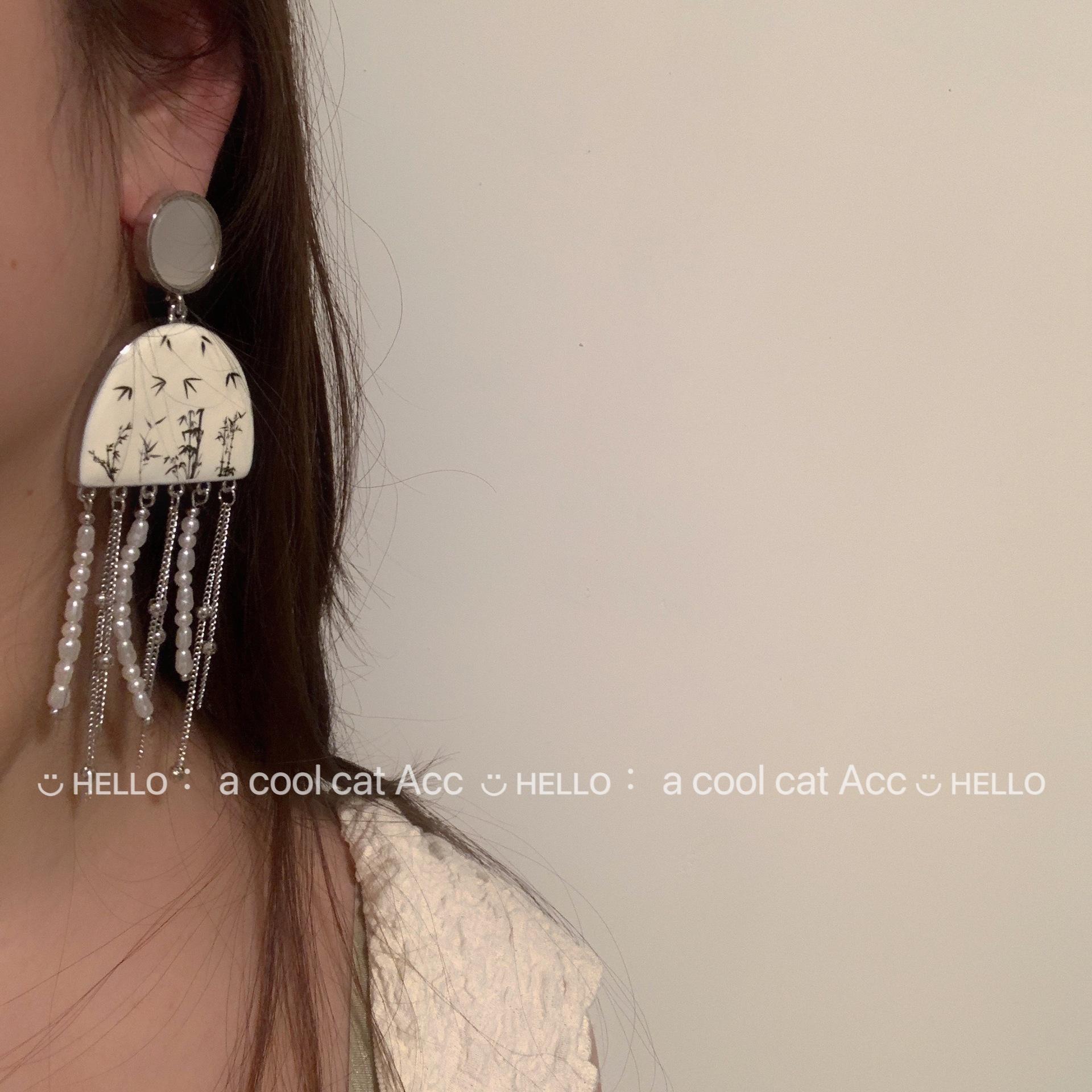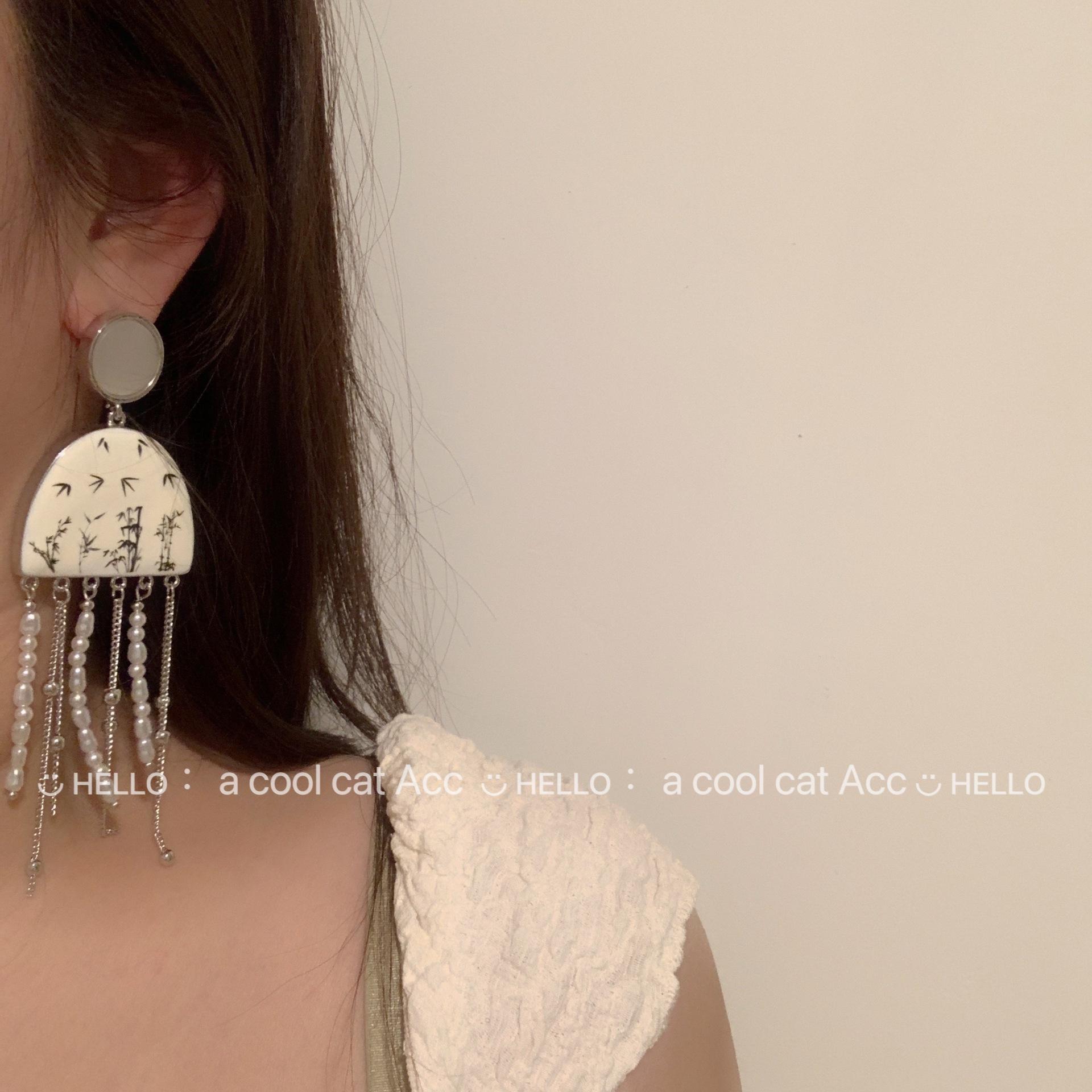 Pendientes de temperamento de perlas colgantes de alta gama para dama, estilo palaciego retro dialecto Shizhu, largos y populares, pendientes de aguja de plata