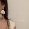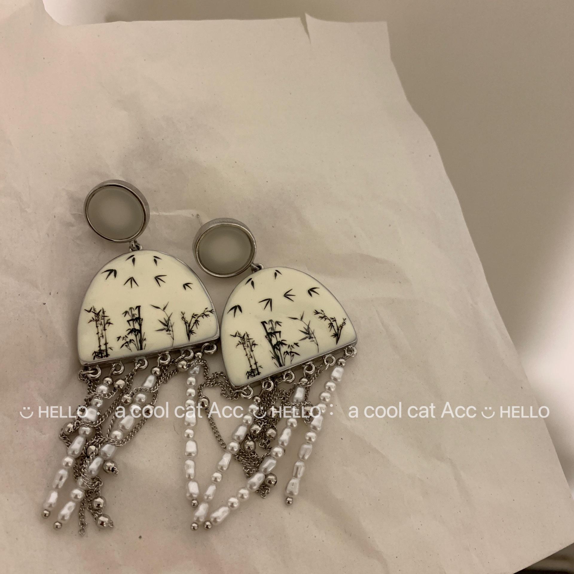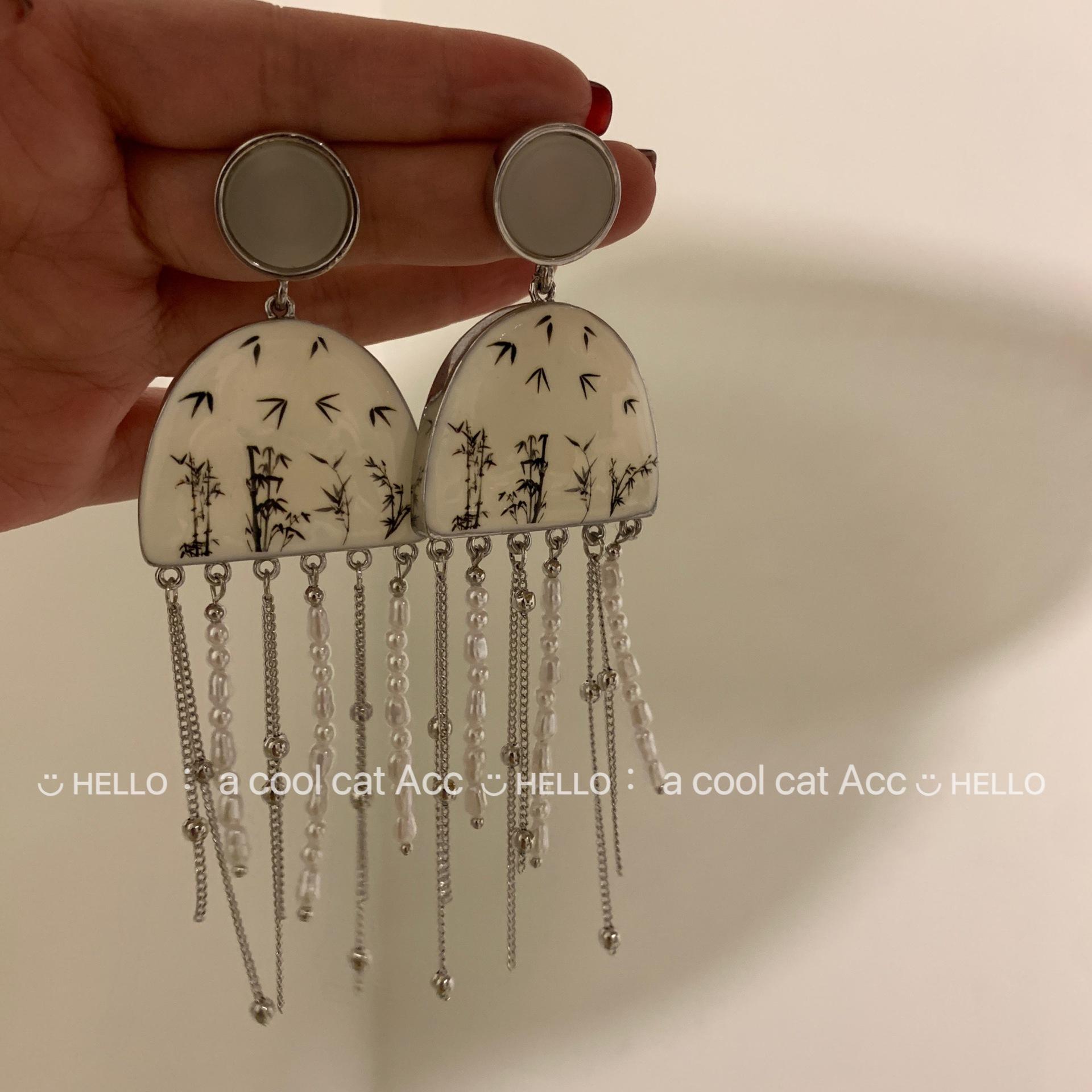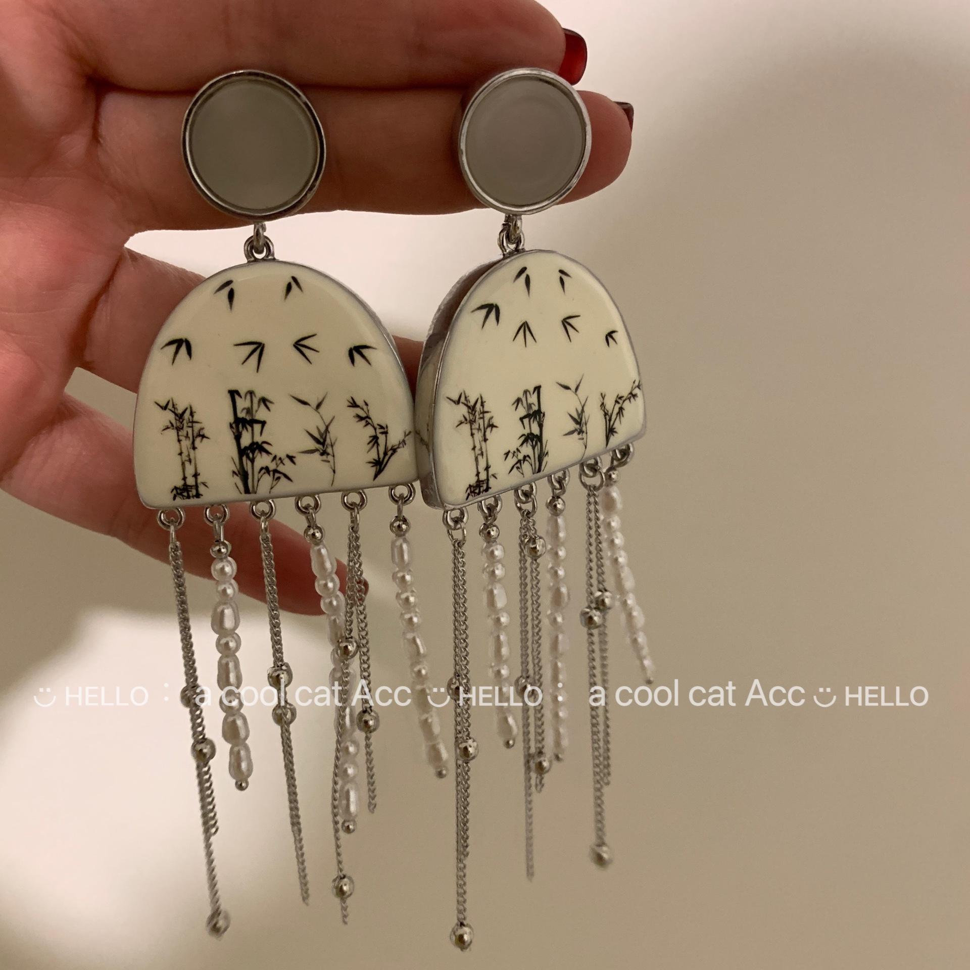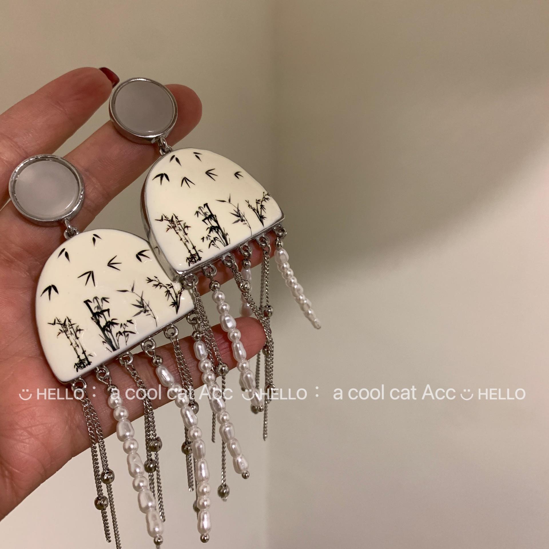 Pendientes de temperamento de perlas colgantes de alta gama para dama, estilo palaciego retro dialecto Shizhu, largos y populares, pendientes de aguja de plata