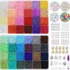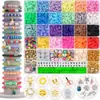 Detalles del conjunto:4800 piezas de cuentas de arcilla en 24 colores, 200 piezas por color, 120 piezas de cuentas de letras coloridas (las letras se asignan aleatoriamente), 40 piezas de cuentas con cara sonriente, 8 piezas de colgantes de colores aleatorios, 50 piezas de cuentas de estrella, 50 piezas de cuentas cuadradas doradas, 50 piezas de clips para carpetas, 20 juegos de cierres de langosta, 12 piezas de cubiertas doradas y 1 rollo de 10 yardas de cordón elástico.