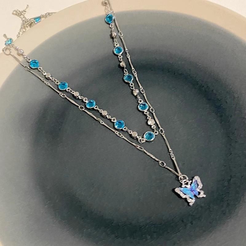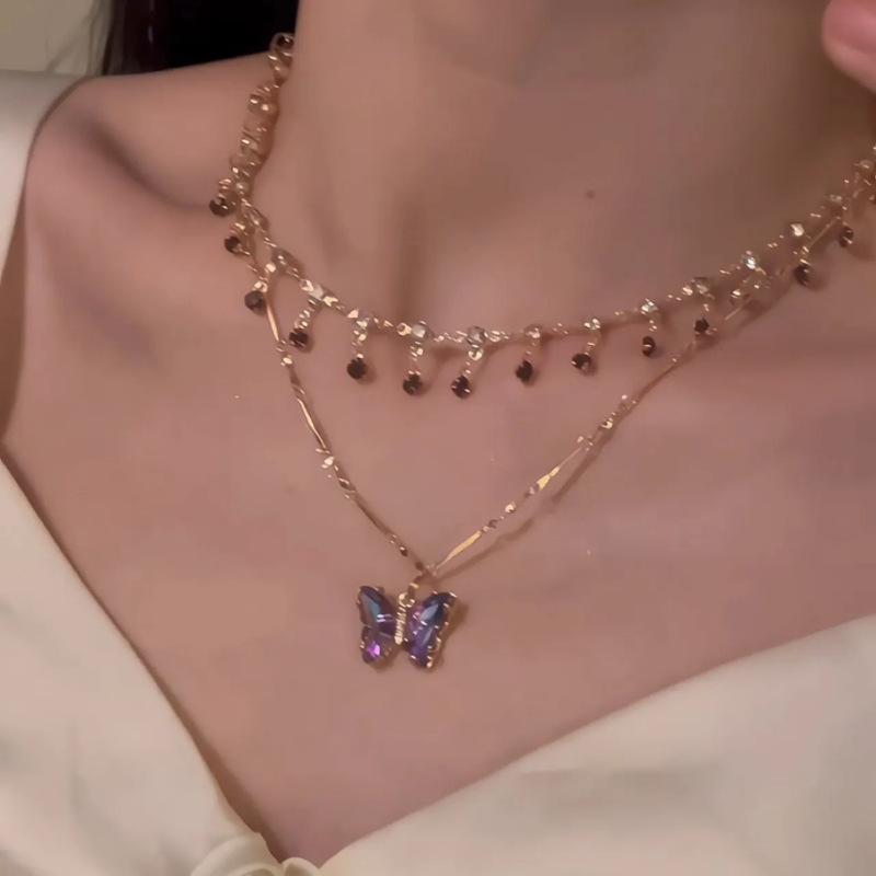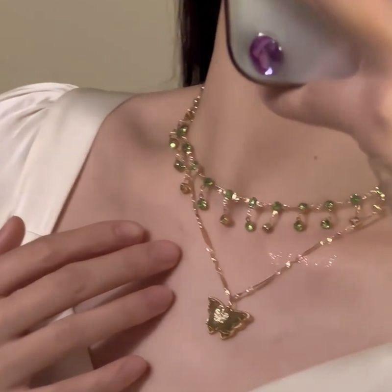 Collar de mariposa de doble capa de alta gama, accesorio de verano, ligero y lujoso, gargantilla de cadena de clavícula con nicho para mujer