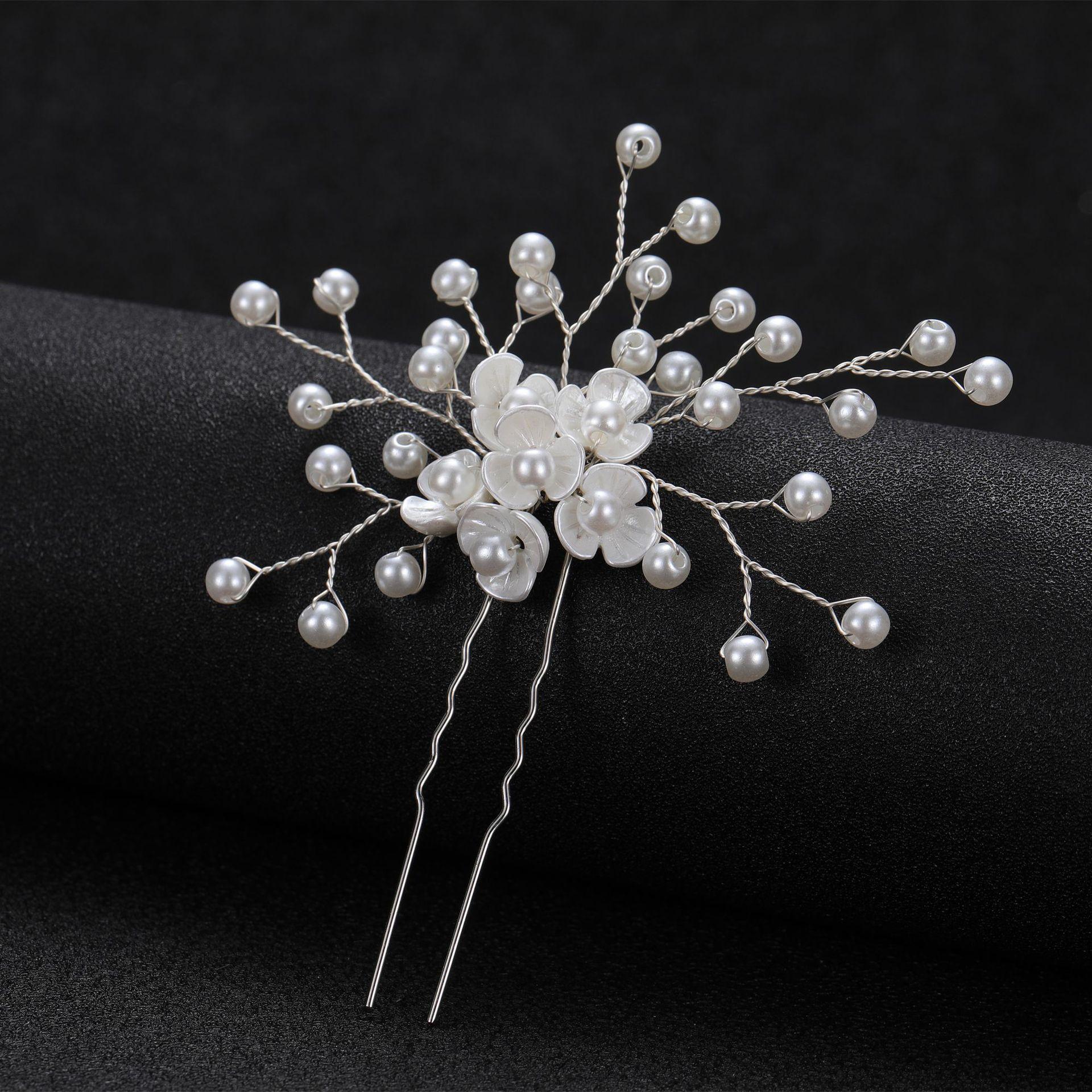 Tocado de novia para boda, hecho a mano, con flor de concha de perla, horquilla en forma de U, accesorios para el cabello, venta directa de fábrica