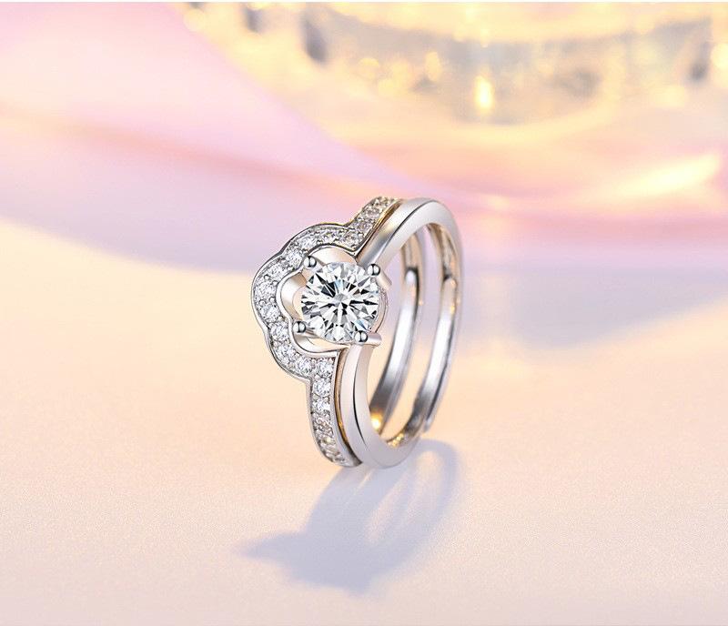Compra Anillo Abierto Caiyun de Moda Transfronteriza Europeo y Americano Zircón de Cuatro Garras Set de Anillos para Pareja Accesorios de Combinación Dos en Uno para Mujer al por mayor en Joom.pro
