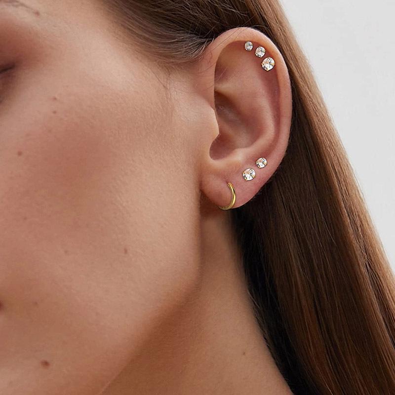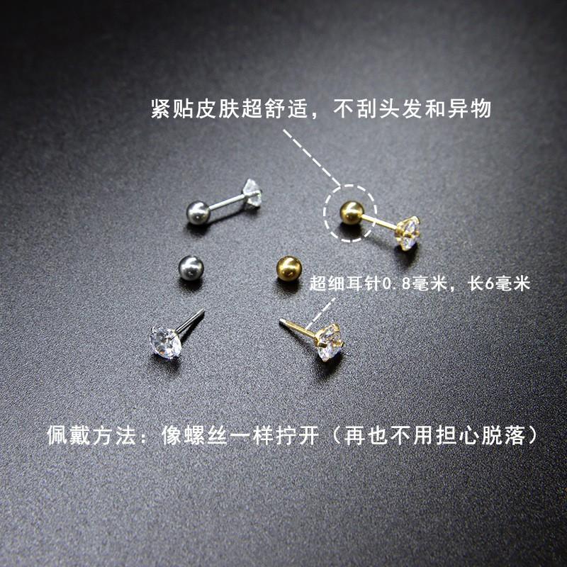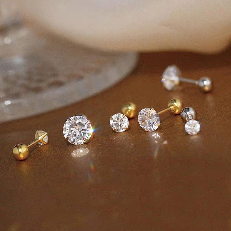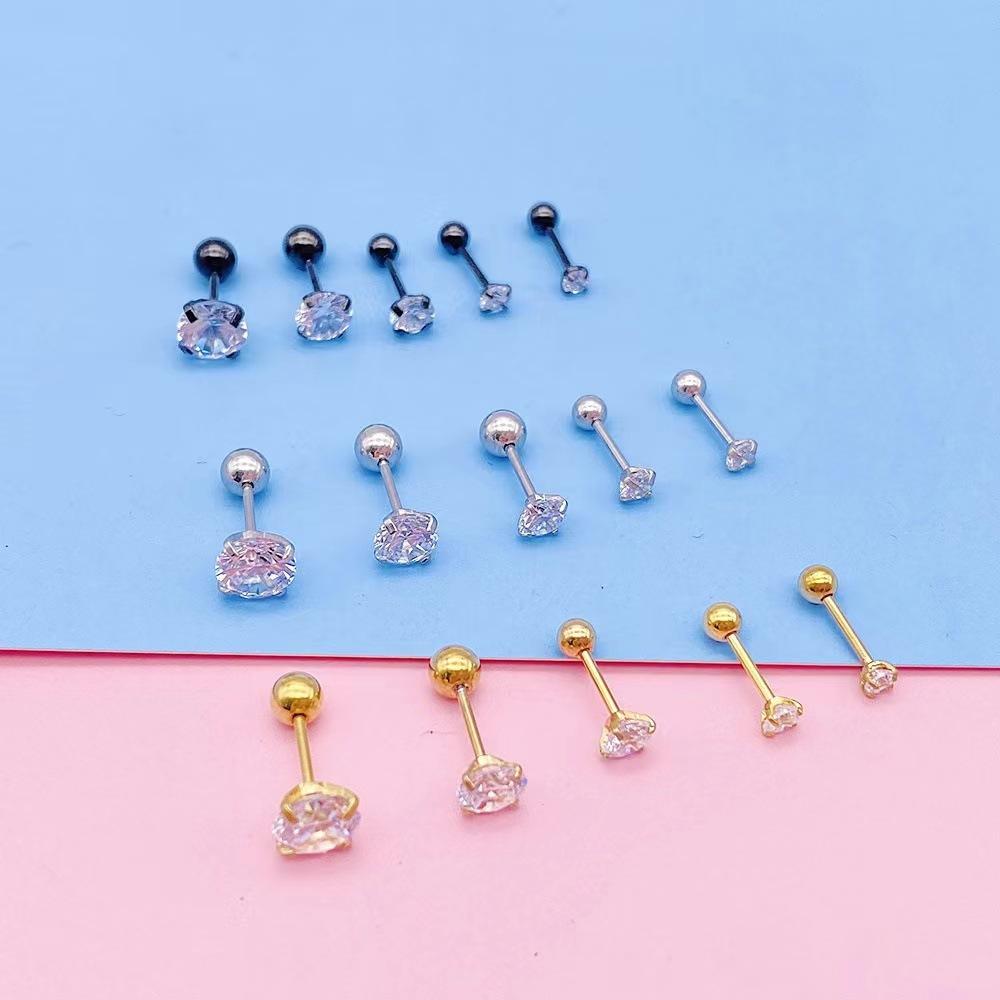 Ventas Calientes Transfronterizas Super Flash Zircon de Cuatro Garras Uñas para el Cartílago de la Oreja 0.8mm de Espesor Aretes de Tuerca de Rosca