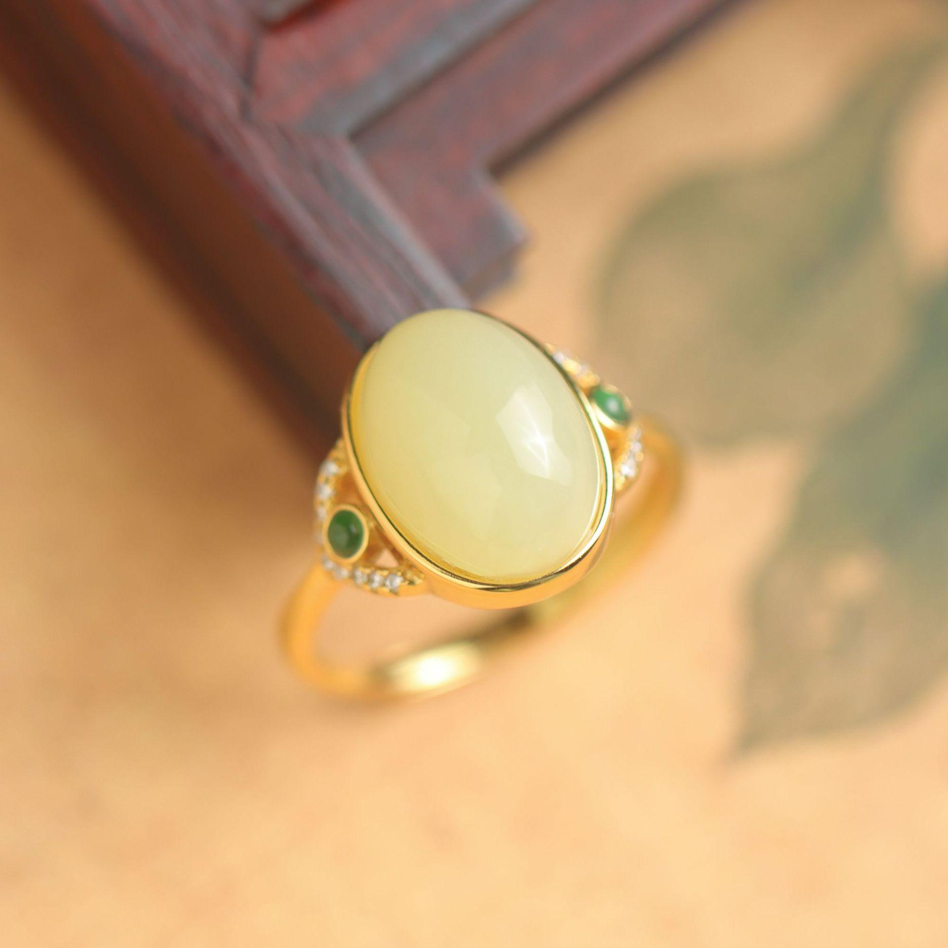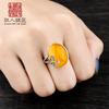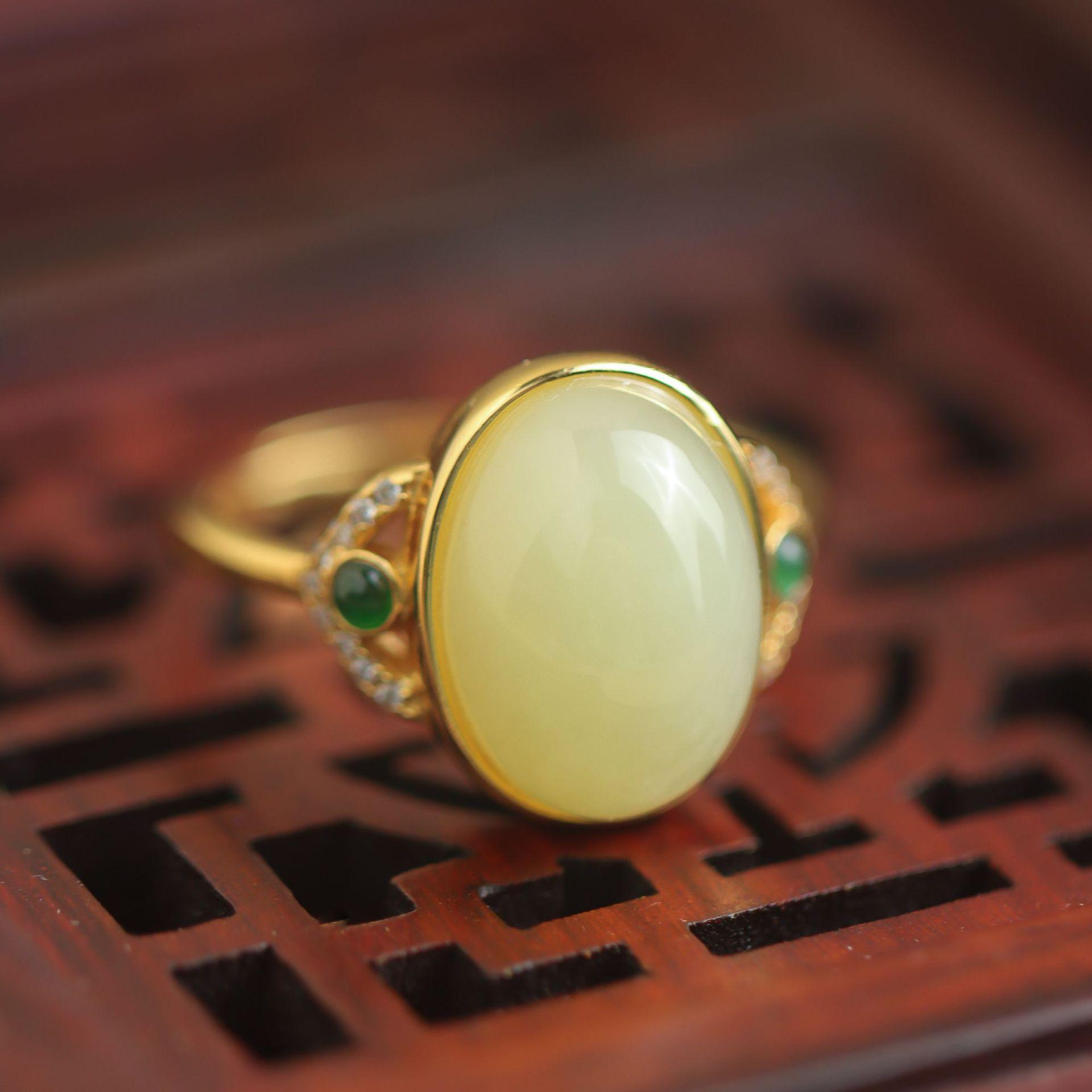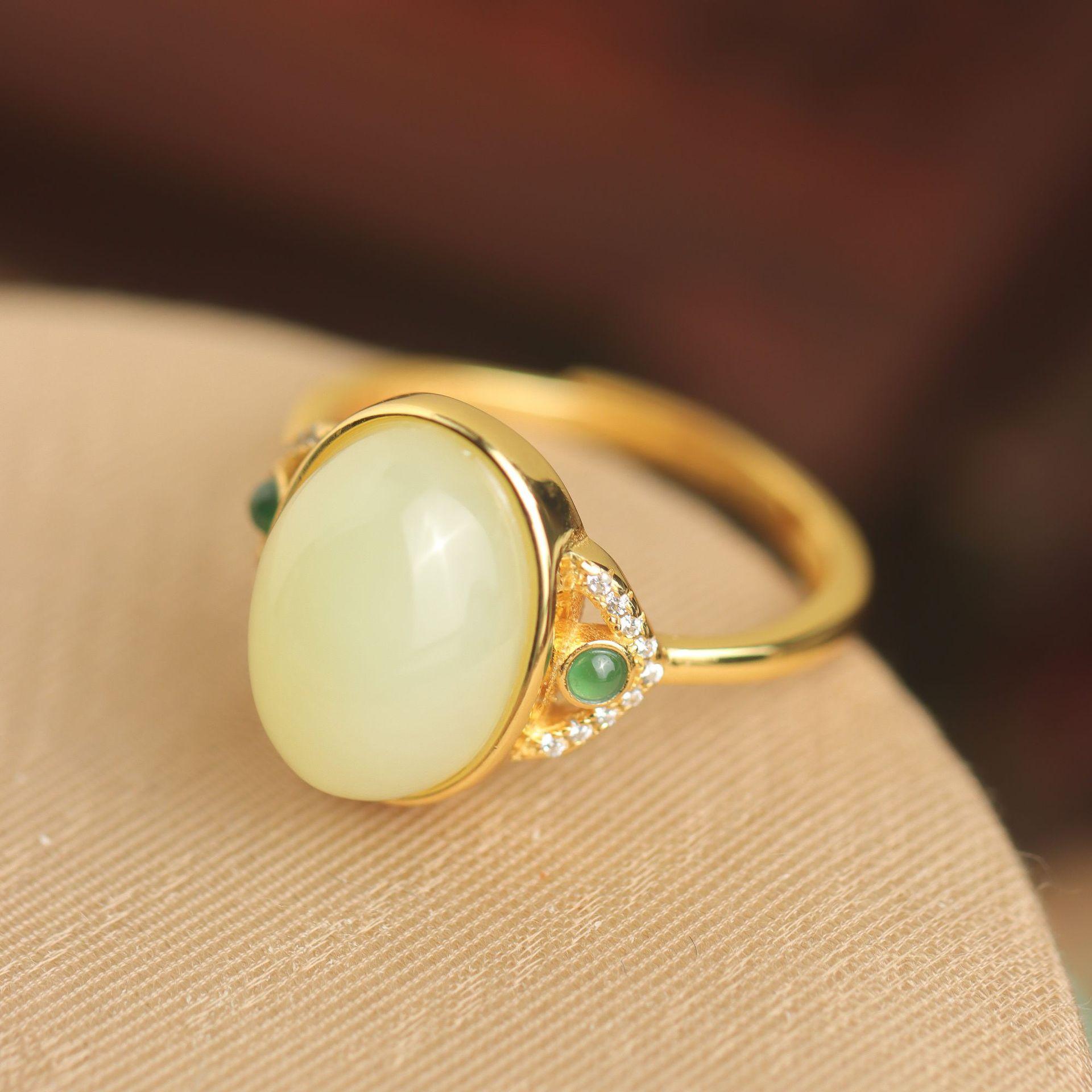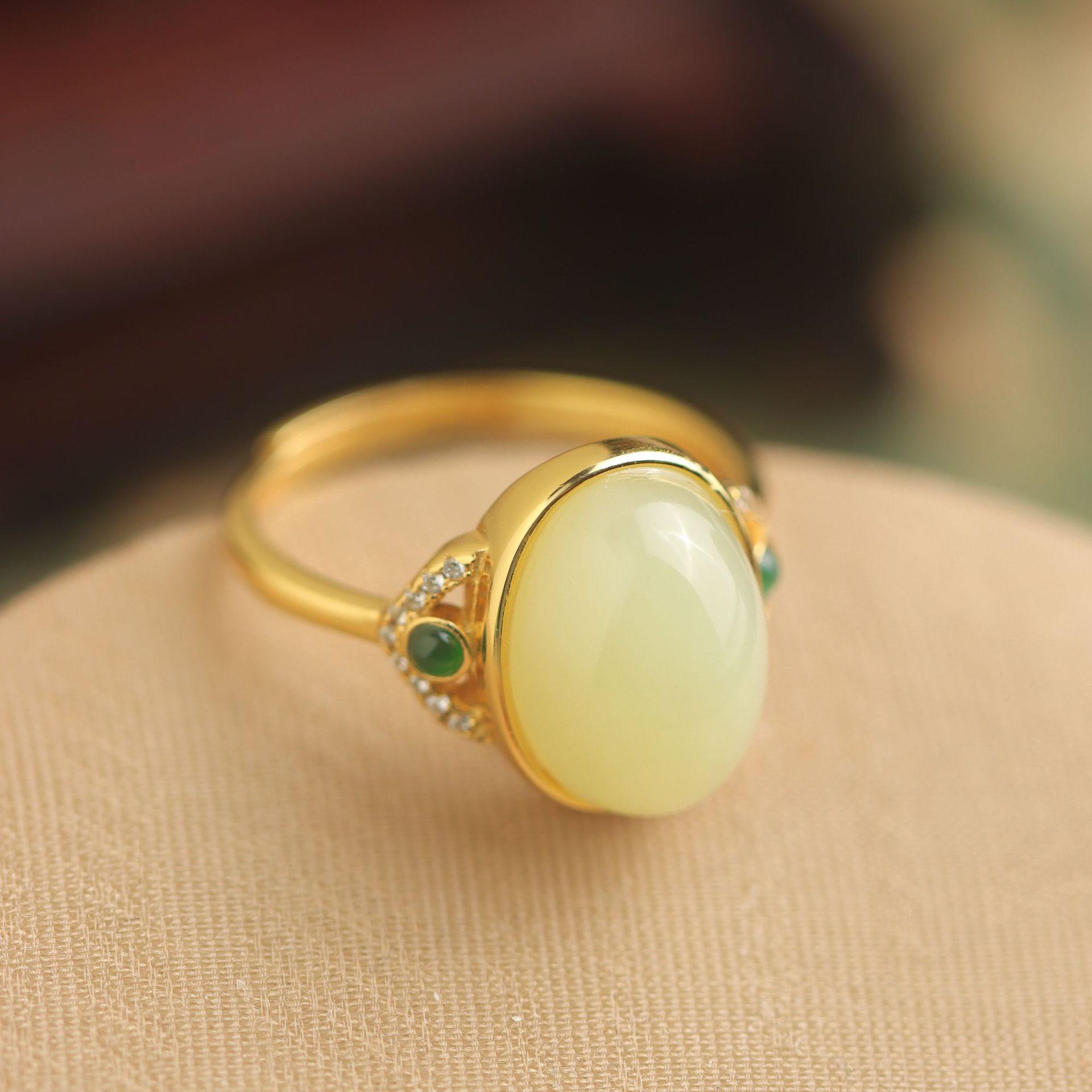 Anillo Xirui S925 de plata esterlina chapado en oro con boca amarilla natural Hotan, ligero y de lujo, con microincrustaciones, simple y elegante, abierto para mujer.