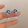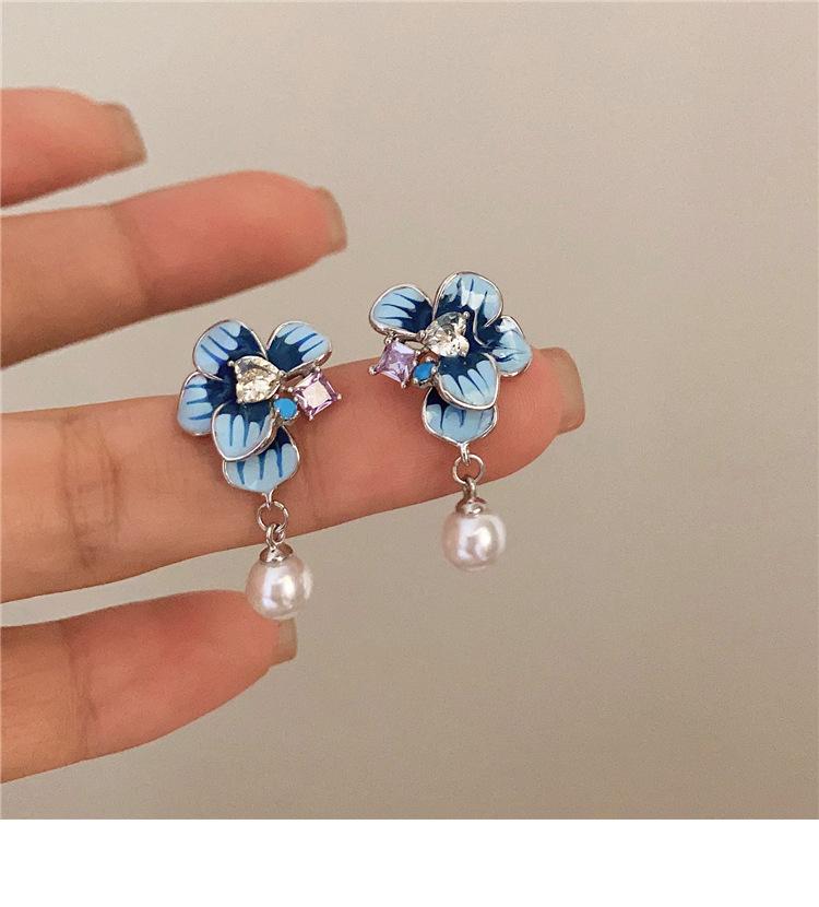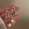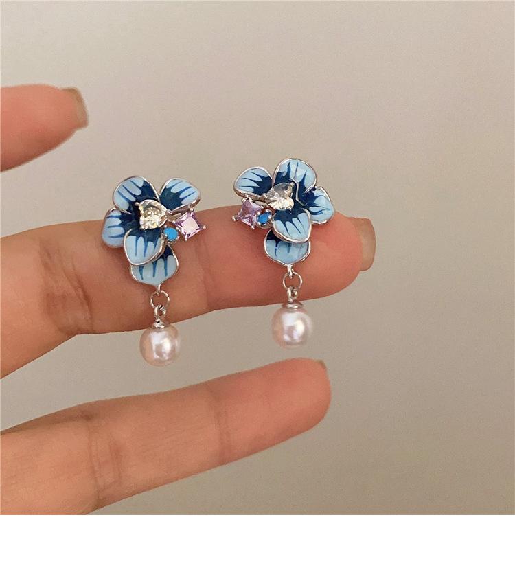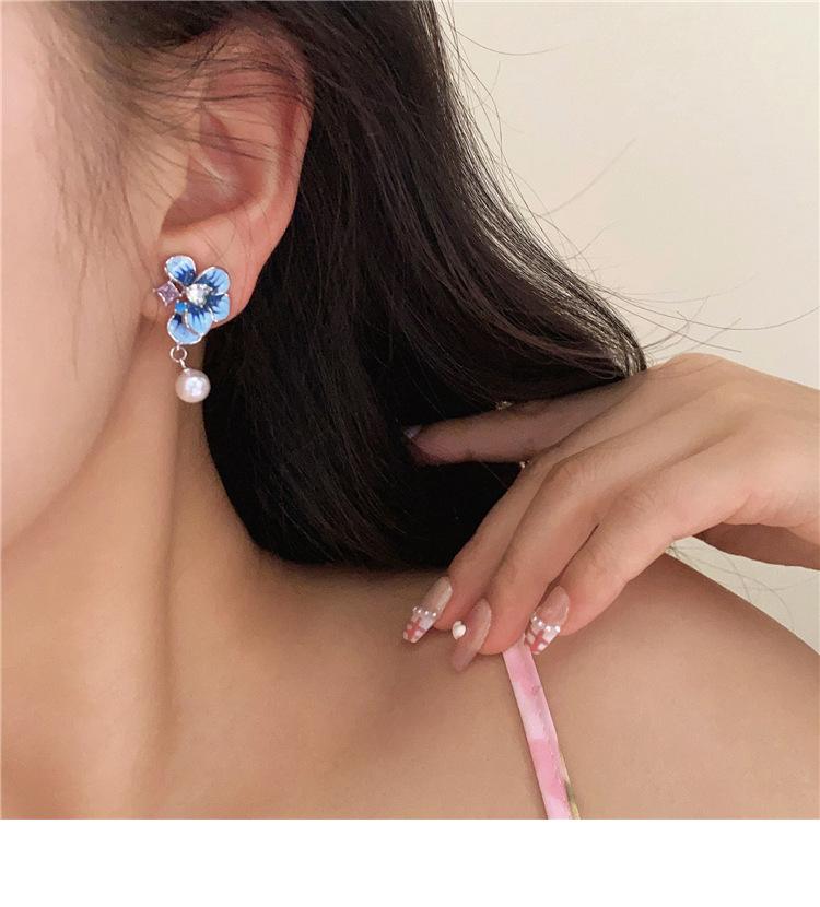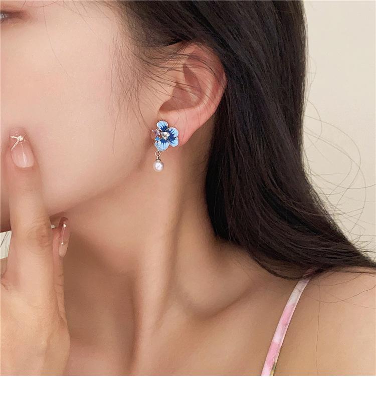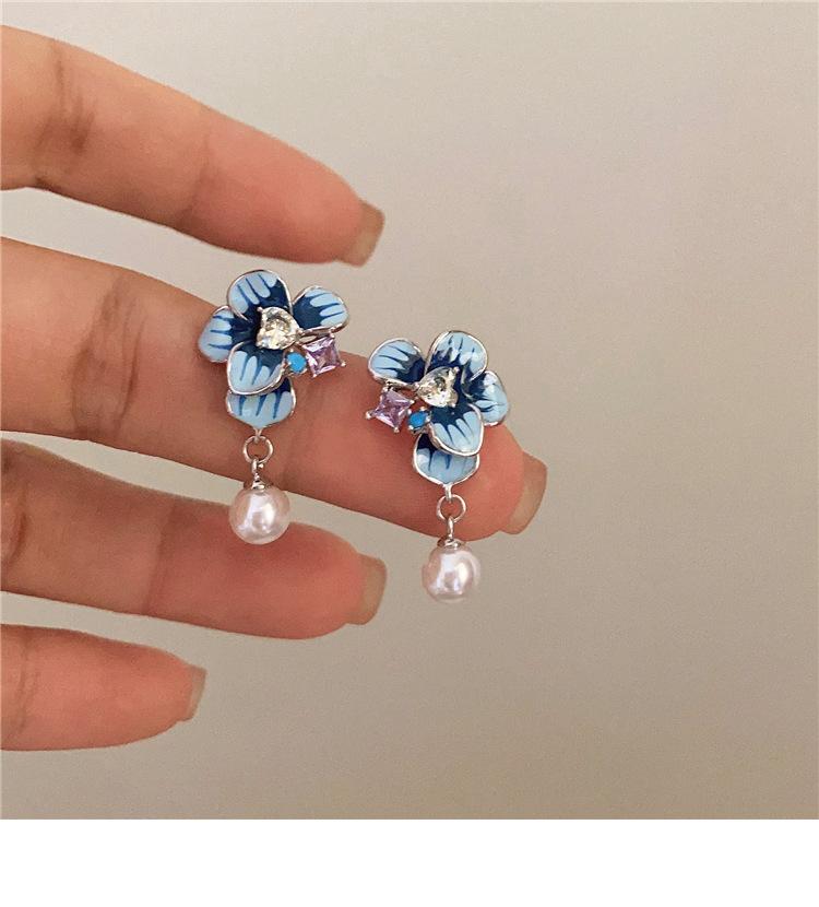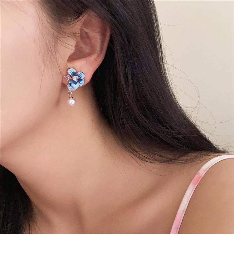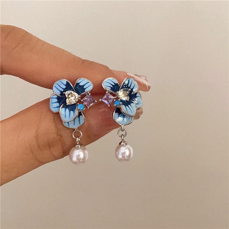 Pendientes de Perlas de Flores con Esmalte al Fuego Retro Francés Super Hada para Mujer de Lujo Ligero Elegantes Nicho Delicados con Pasador de Plata