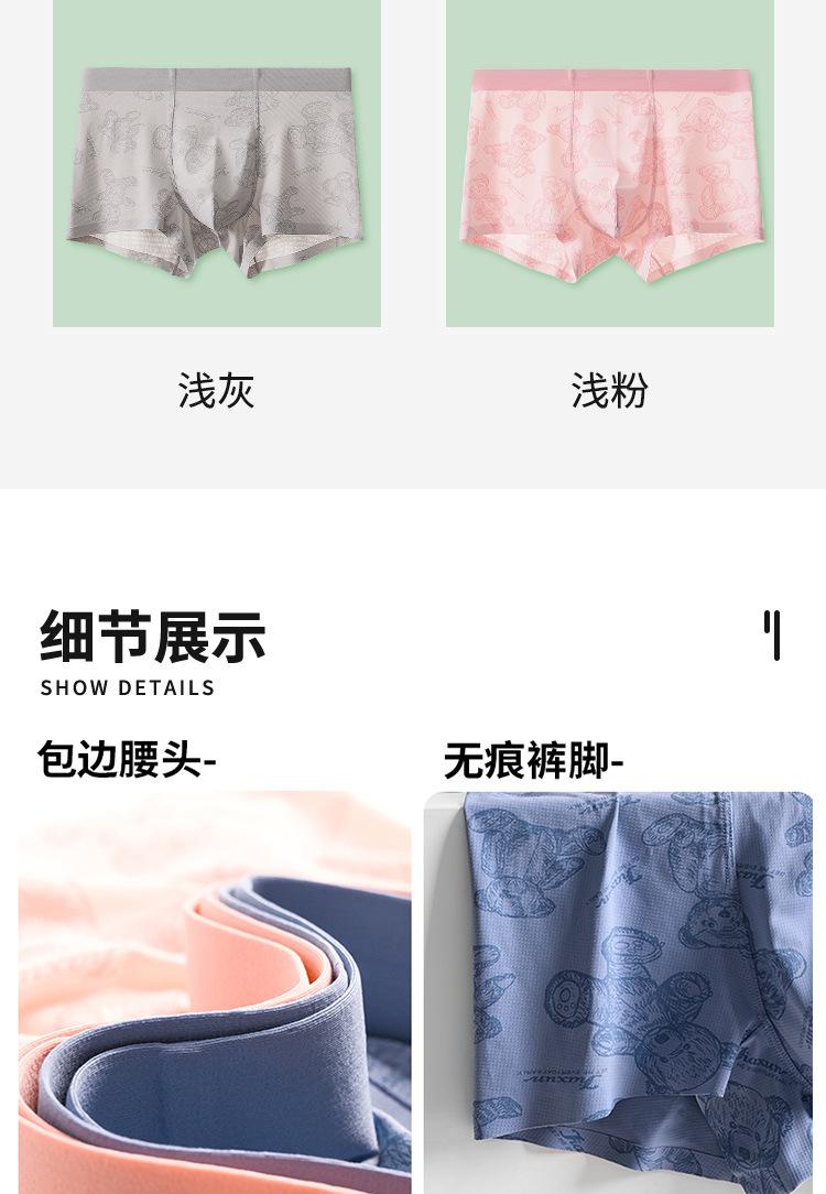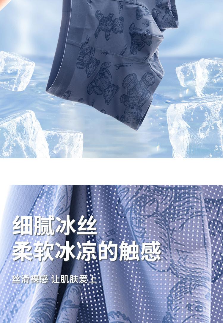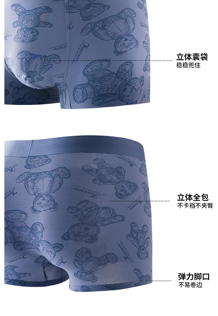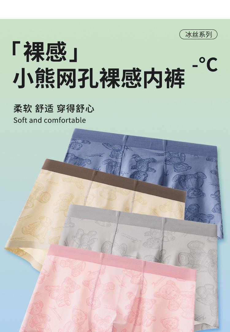 Ropa Interior Fresca de Verano para Hombre Estampado de Oso Malla de Seda de Hielo Transpirable Sin Marcas Calzoncillos Bóxer para Hombre Cómodos y Secos