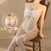 Lencería sexy de encaje de tres puntos de una pieza con perspectiva libre, tentación, ropa sexy y caliente de una pieza, entrepierna, pasión, puro deseo.