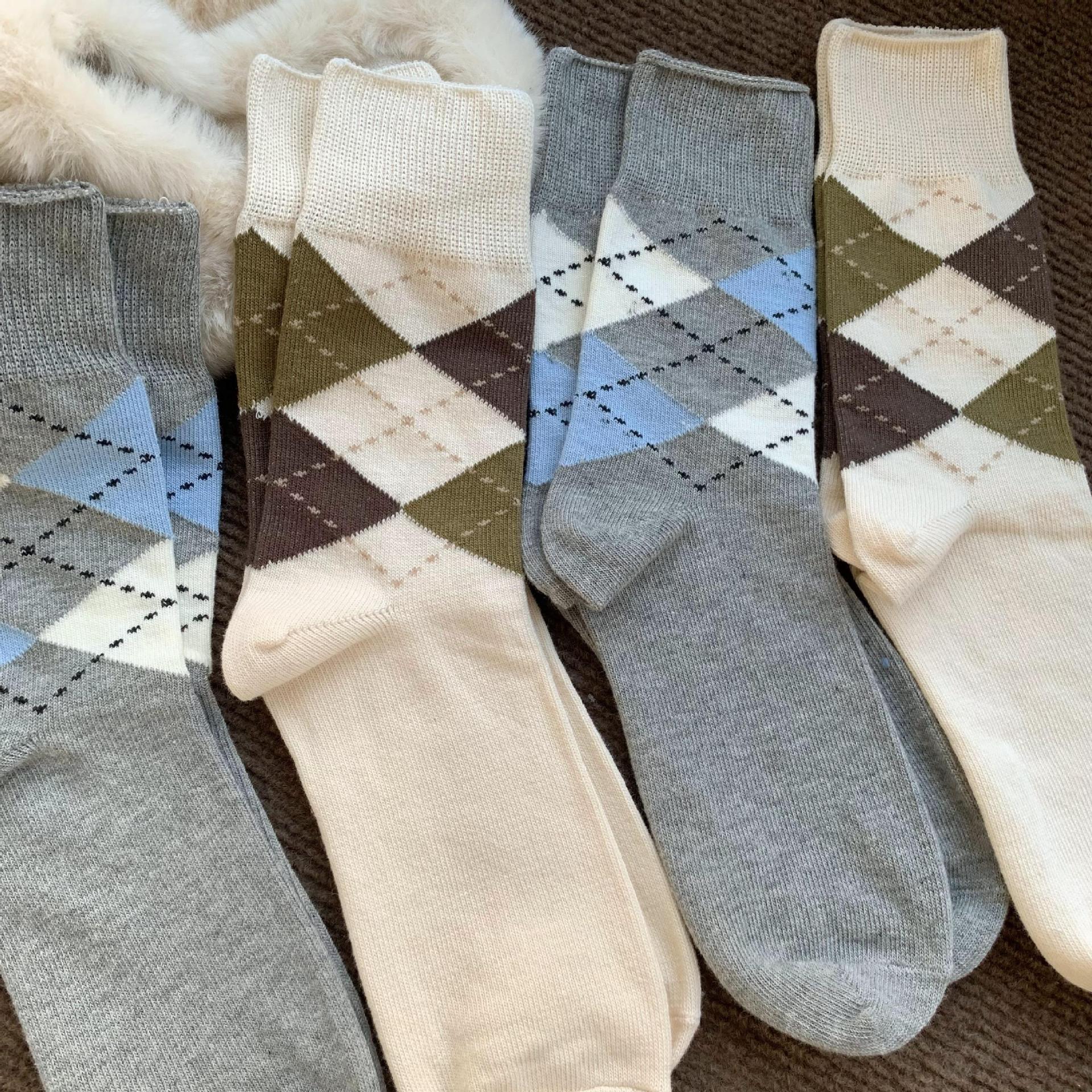 Calcetines de mujer japoneses de otoño con rombos coloridos, estilo retro, hasta la mitad de la pantorrilla, estilo universitario coreano, de moda, sencillos.