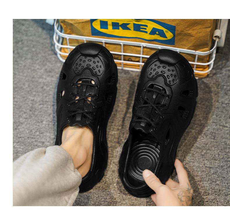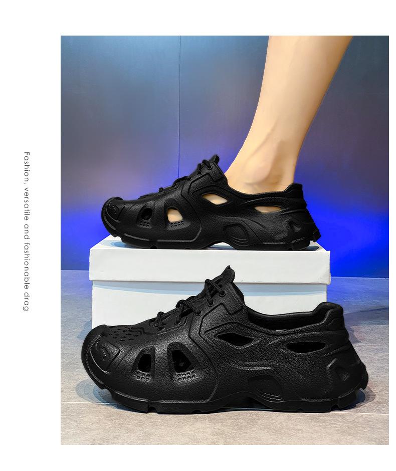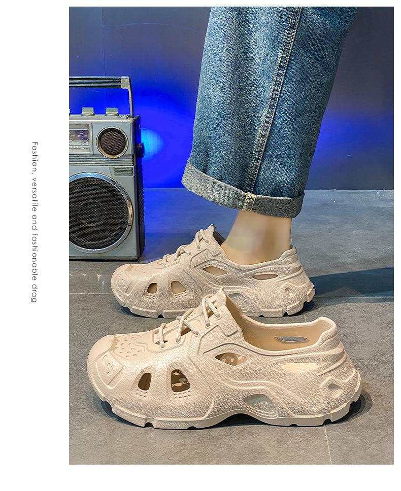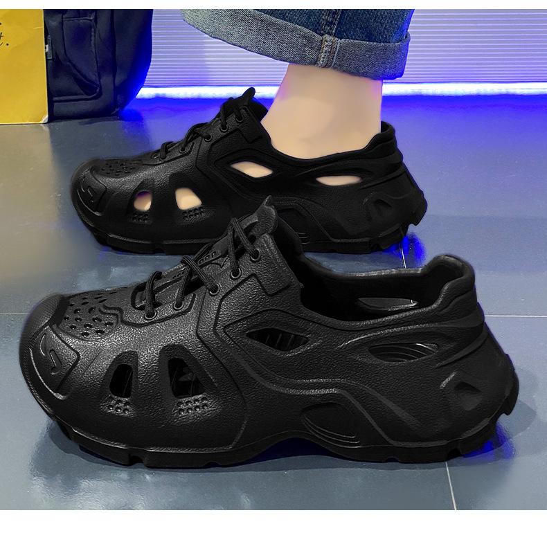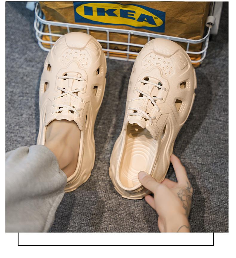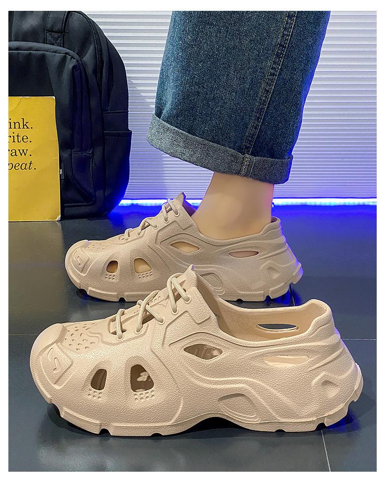 Zapatos con agujeros de coco para hombre, ropa exterior de verano, zapatillas Baotou antideslizantes, sandalias de playa de suela gruesa con sensación de estiércol