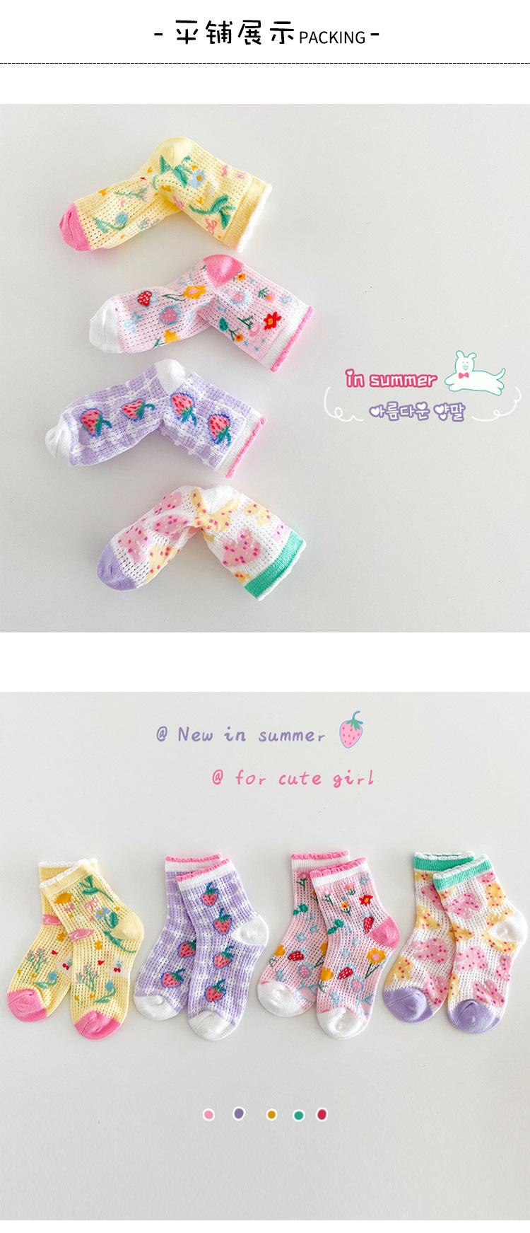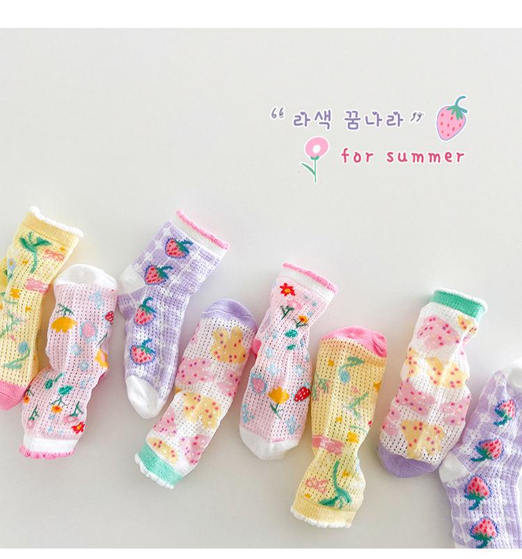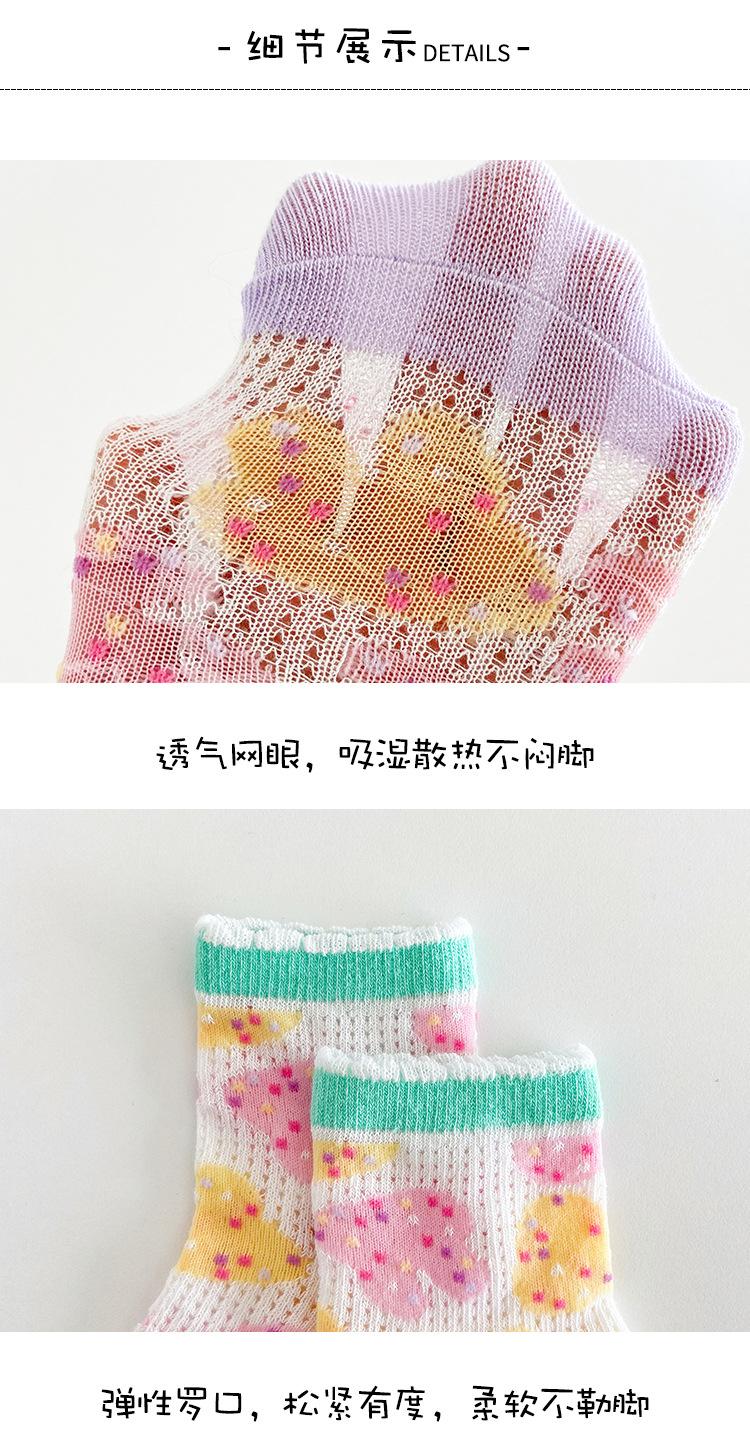 Calcetines de malla de verano para niños, venta al por mayor, de algodón transpirable, bonitos y divertidos calcetines de encaje con dibujos animados para bebés.