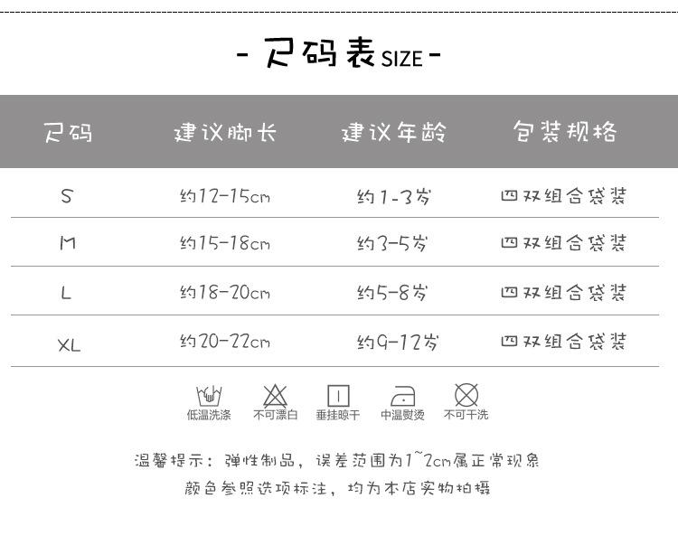 S (recommended foot length 12-15cm), M (recommended foot length 15-18cm), L (recommended foot length 18-20cm),...