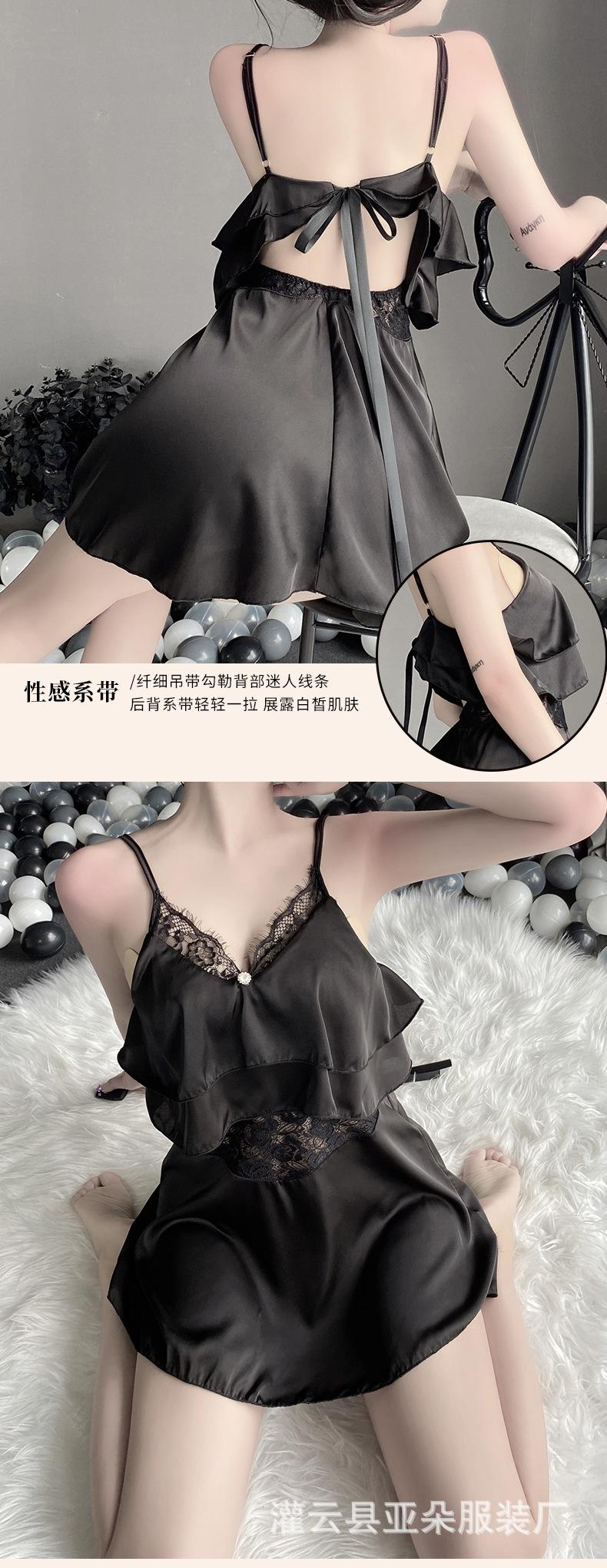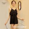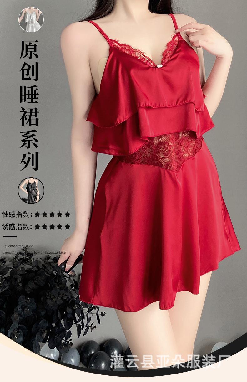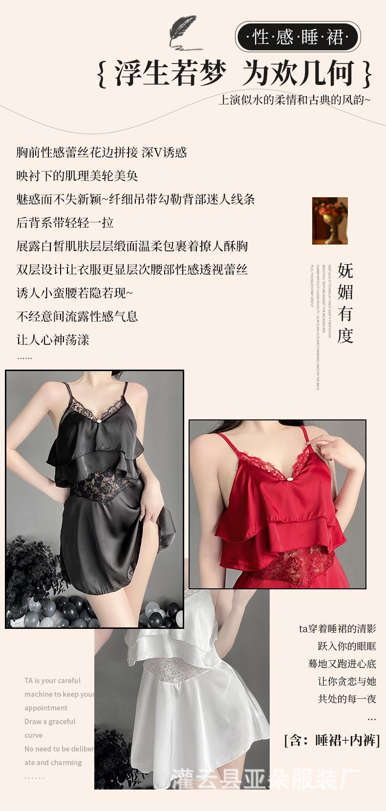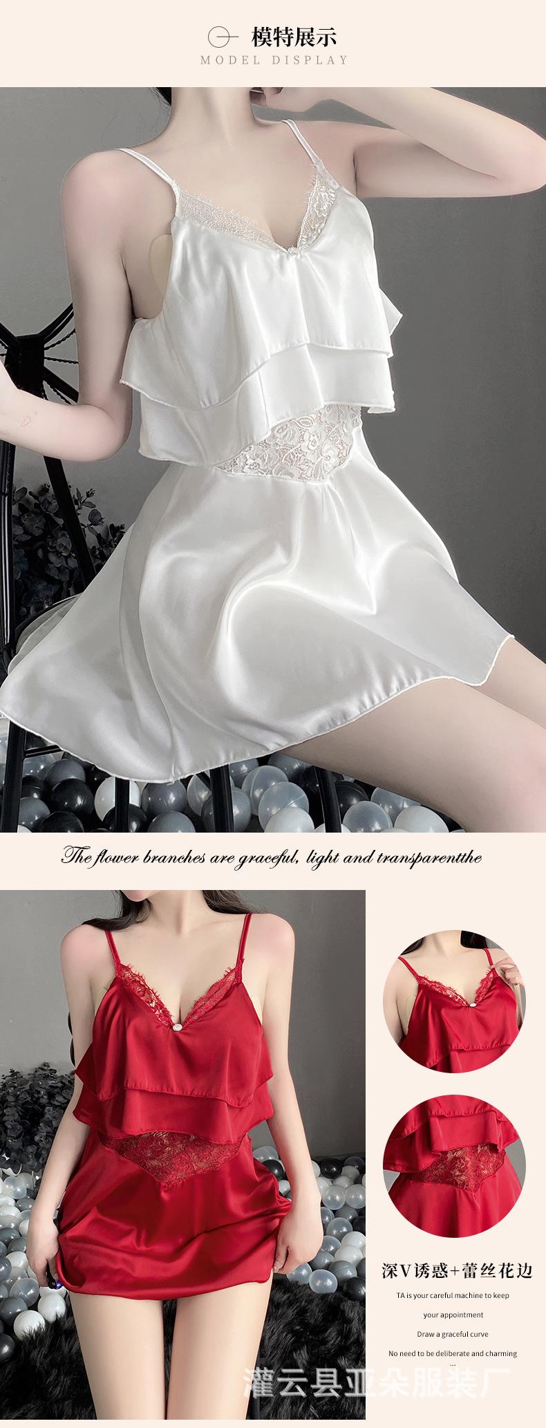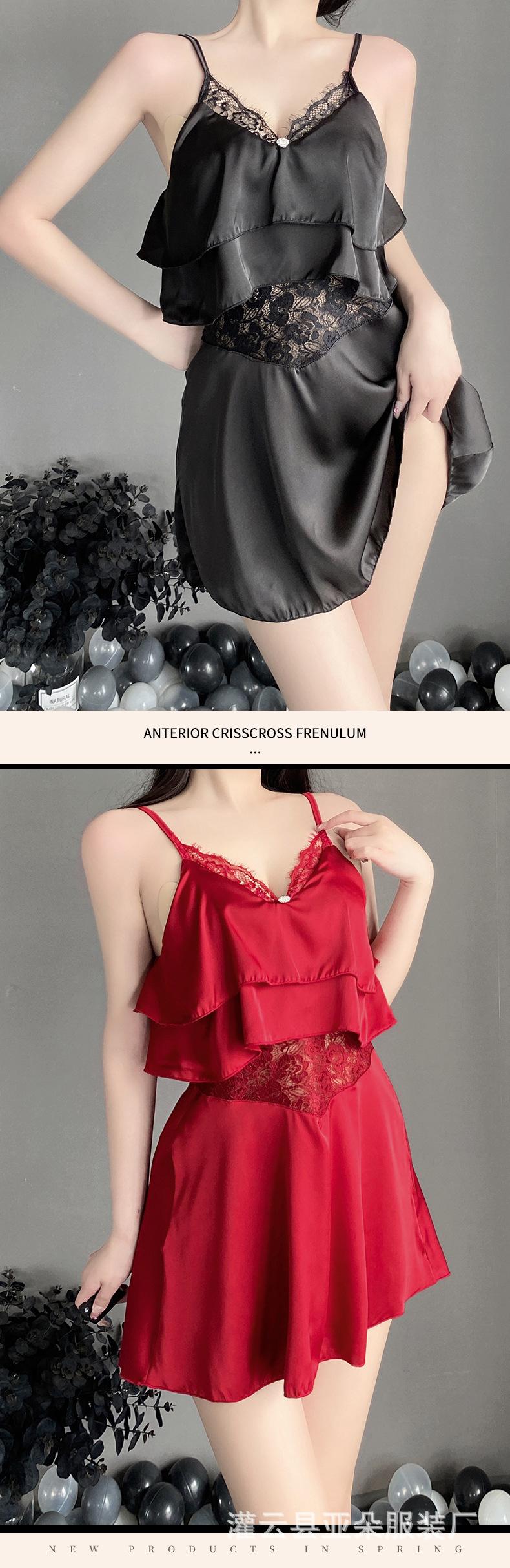 Lencería sexy para mujer, camisón de gasa transparente con tirantes y volantes, talla 2512