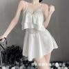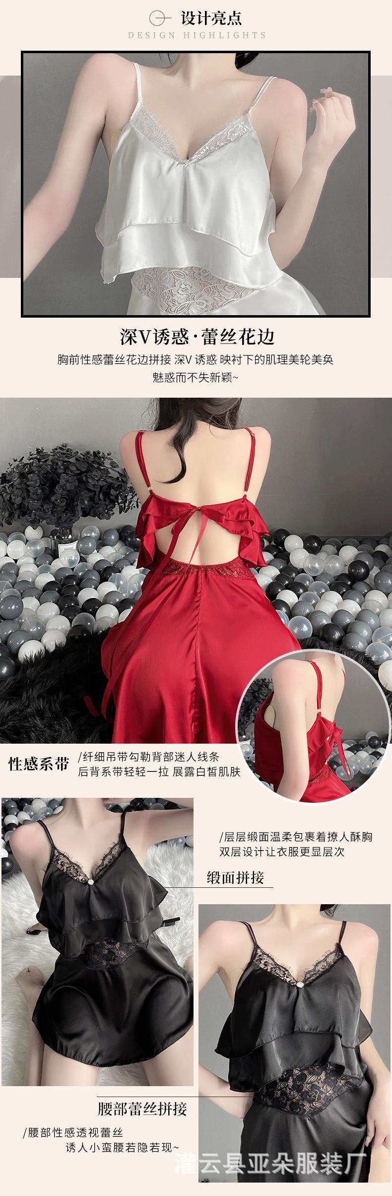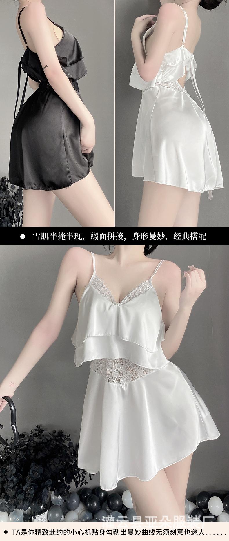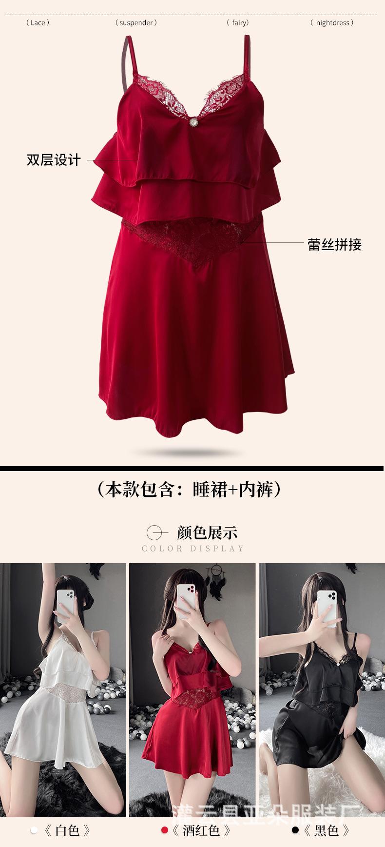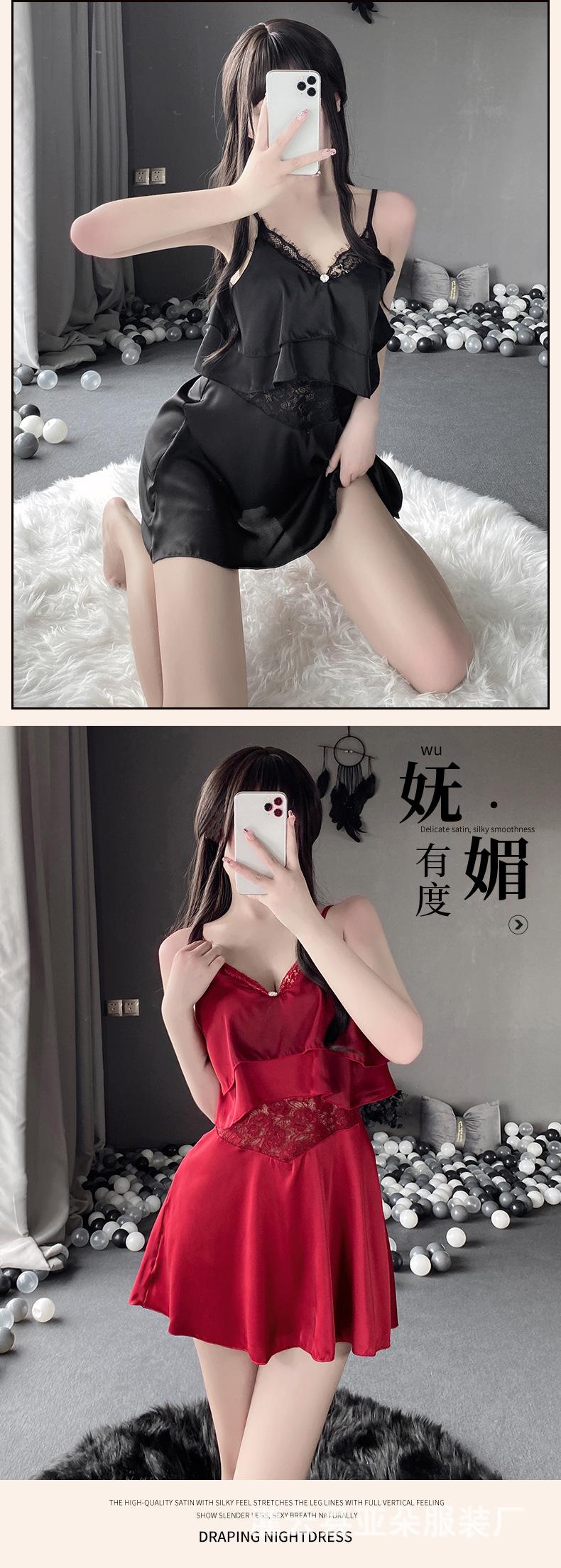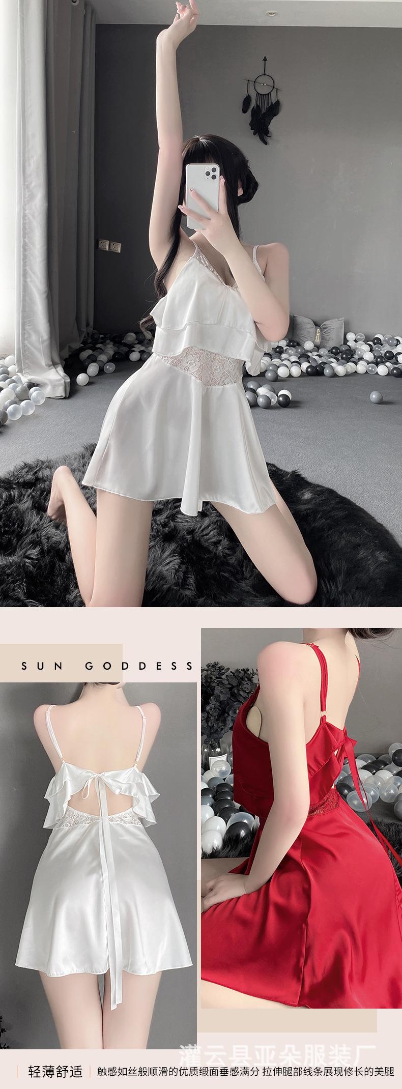 Lencería sexy para mujer, camisón de gasa transparente con tirantes y volantes, talla 2512