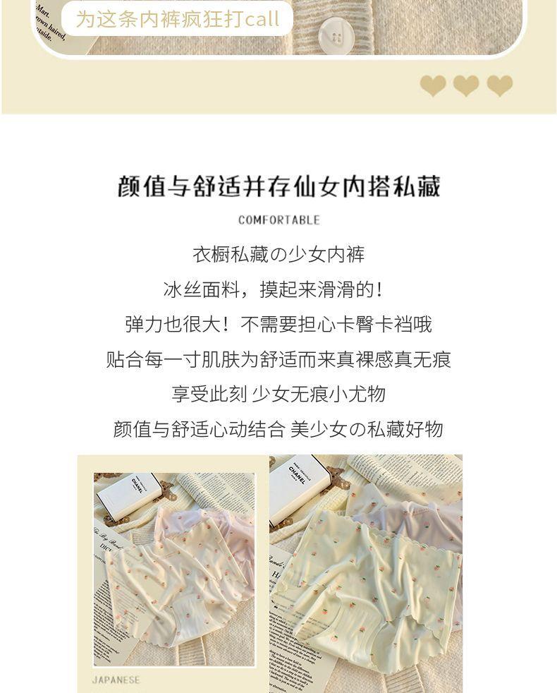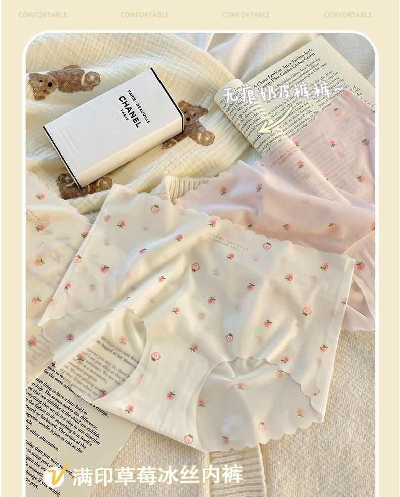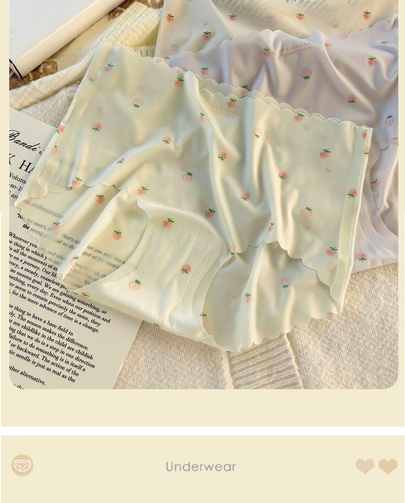 Braguitas sin costuras de seda de hielo para mujer, niña fresa, sexy, cadera de melocotón, pantalones máscara 3D, calzoncillos de cadera de chica desnuda