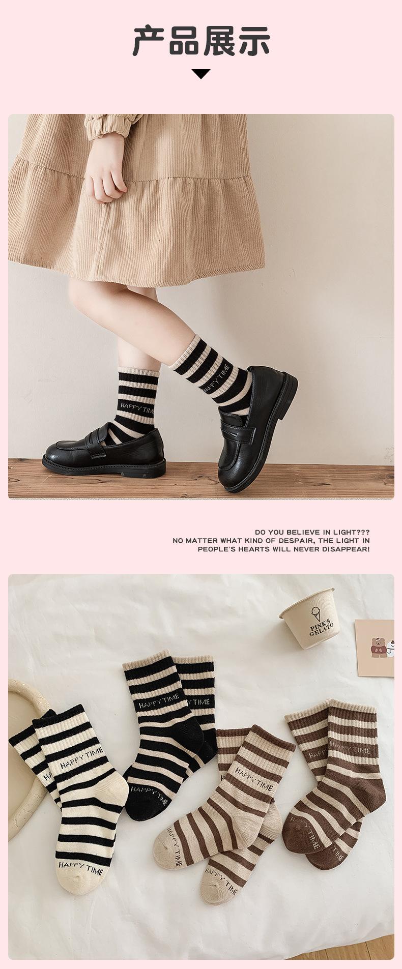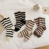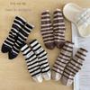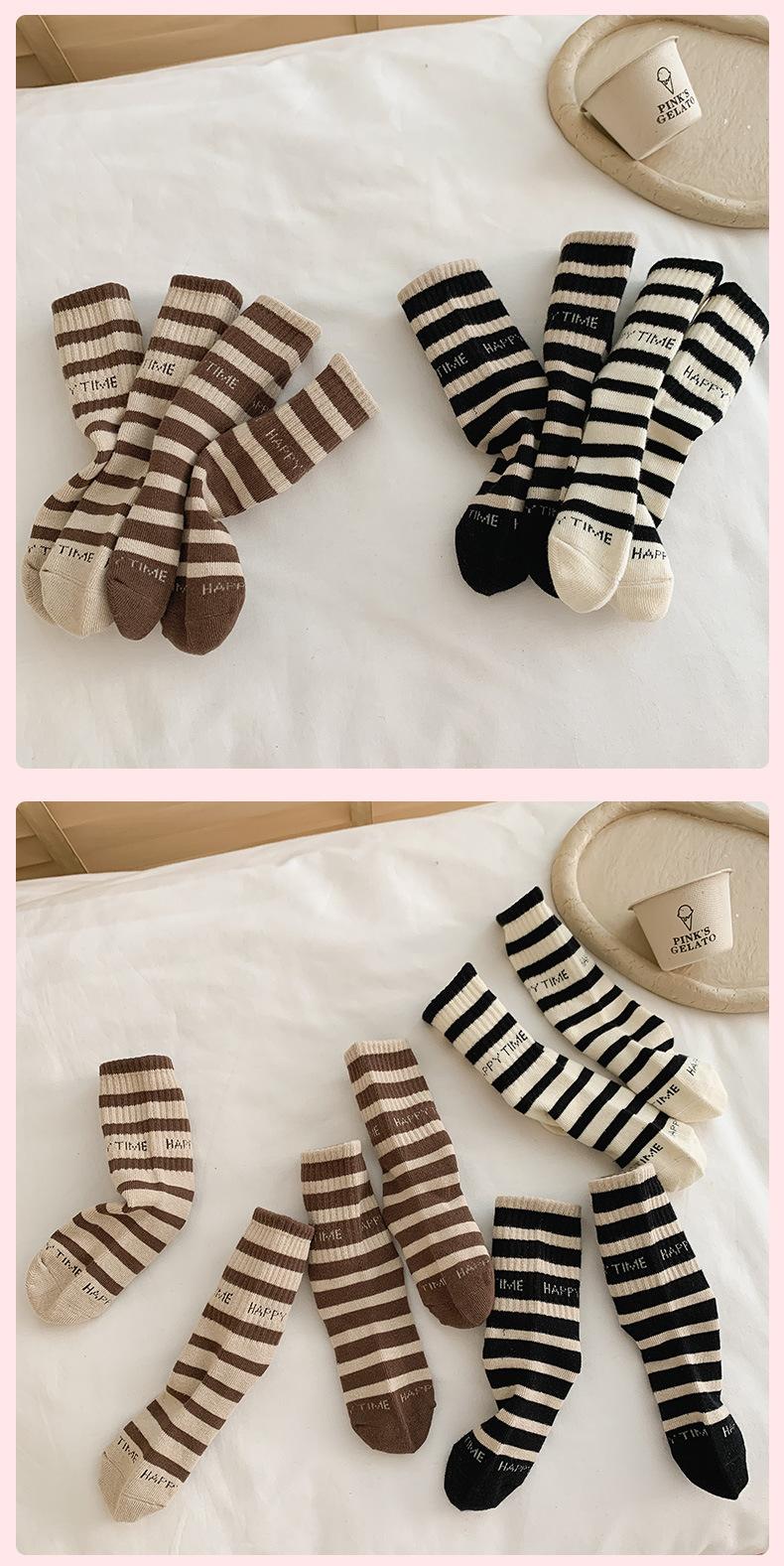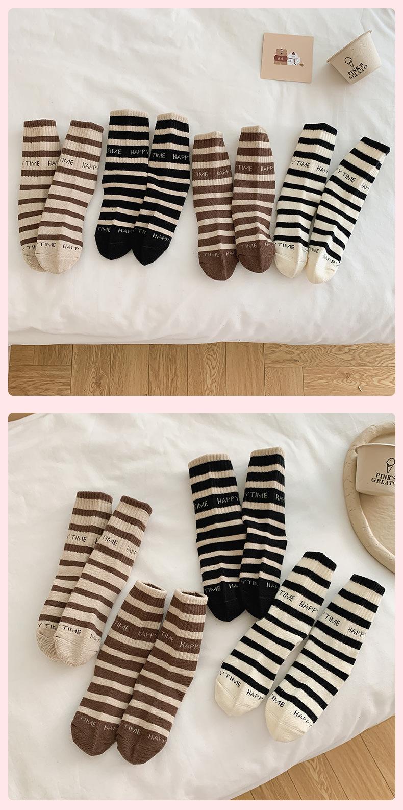 Calcetines de algodón para niños, sencillos, cómodos y combinables, con rayas de colores contrastantes, para otoño e invierno, de tubo medio, deportivos, vintage coreanos.