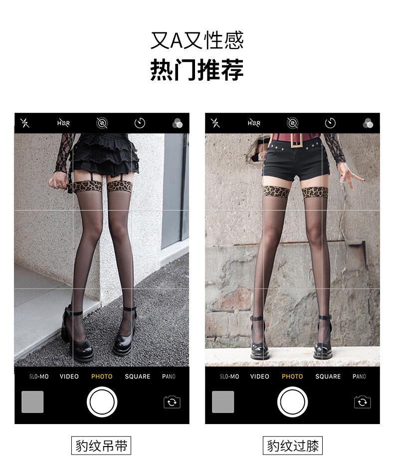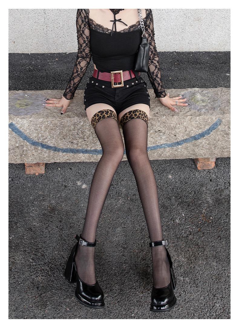 Calcetines de Liga 0D de Silicona Antideslizante con Costuras con Estampado de Leopardo Tipo Pie Sexy Medias de Seda Negras Puras para Mujer