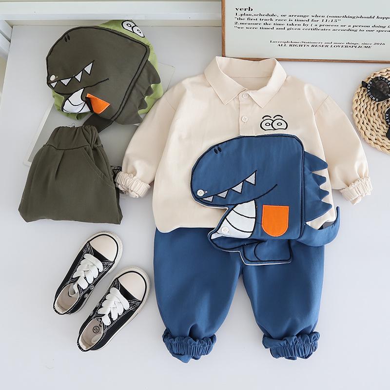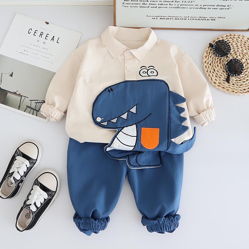 Ropa para Niños Yihao Ropa para Niños Traje de Otoño Camisa Linda 2024 Nuevo Dinosaurio de Manga Larga Dos Piezas Ropa para Bebé