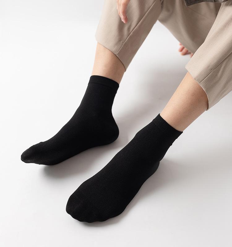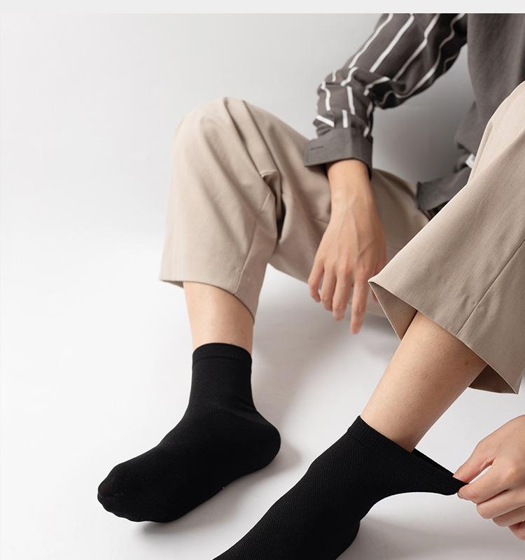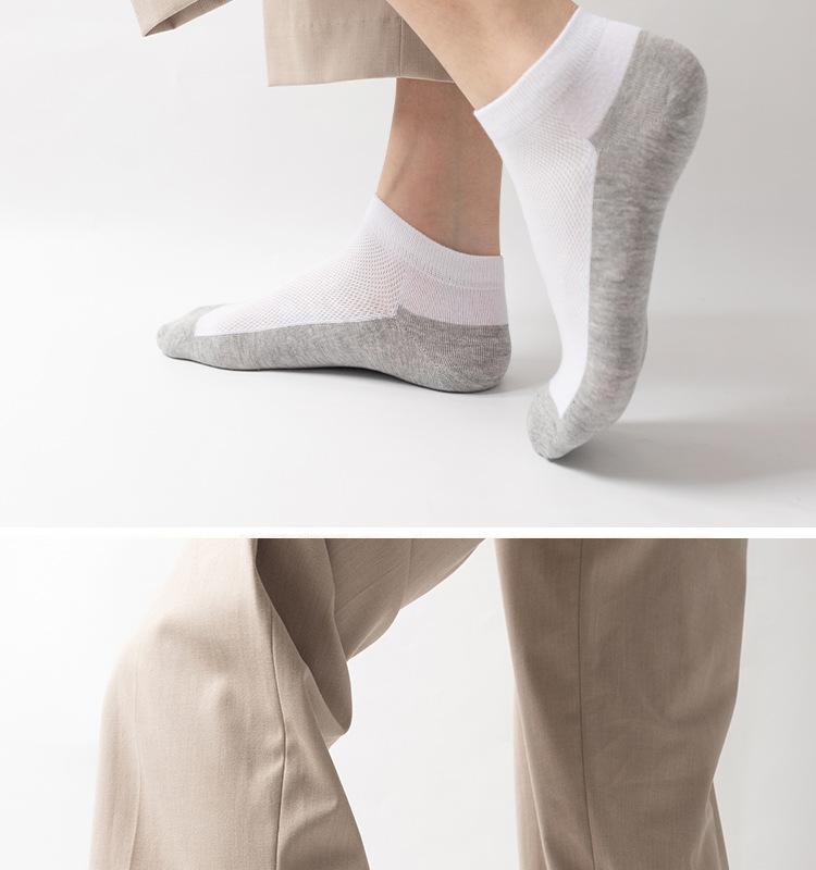 Calcetines de verano para hombre, finos, cortos, absorbentes del sudor, antibacterianos, desodorantes, de color blanco y negro, de algodón, de malla transpirable