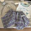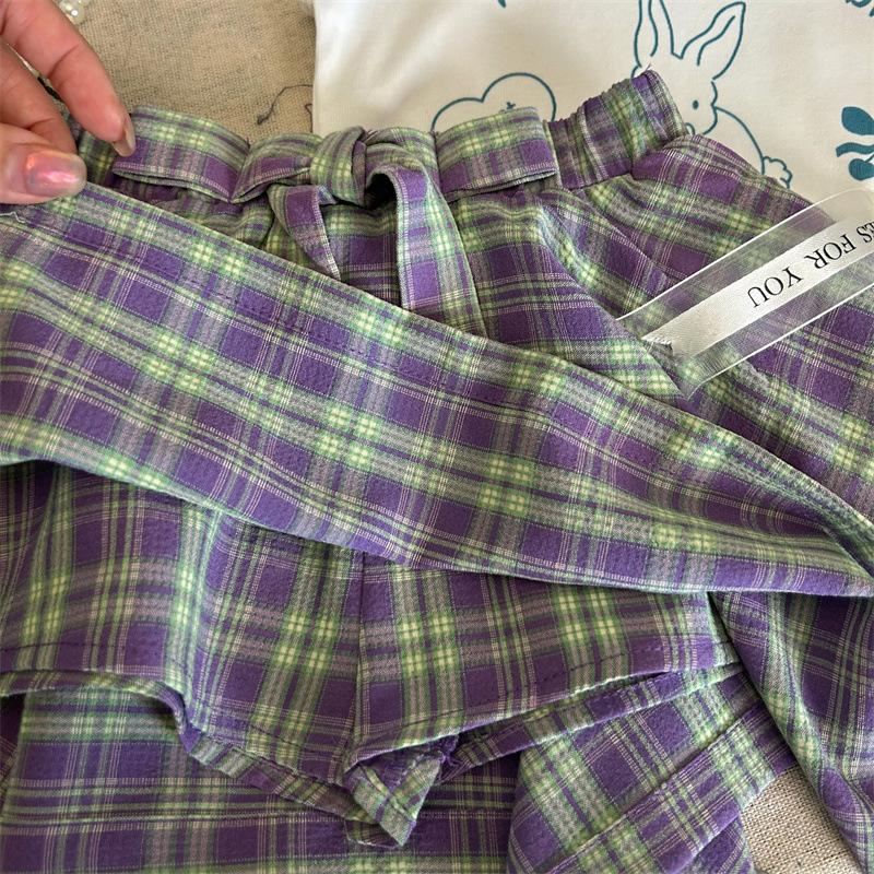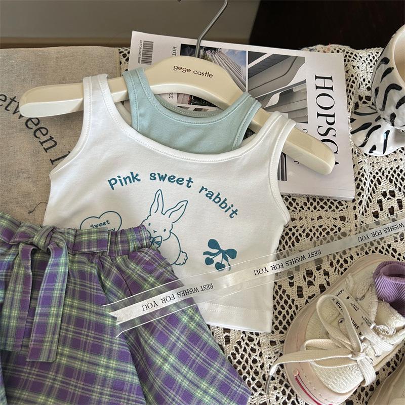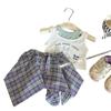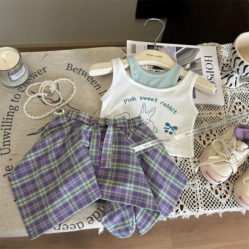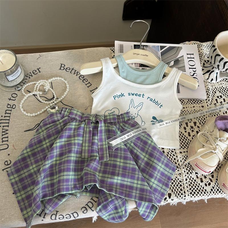 Gran Venta No Reembolsable y No Intercambiable [Pedido por Racionalidad] Chaleco de Dibujos Animados de Dos Piezas Falsas para Niñas + Falda Asimétrica a Cuadros