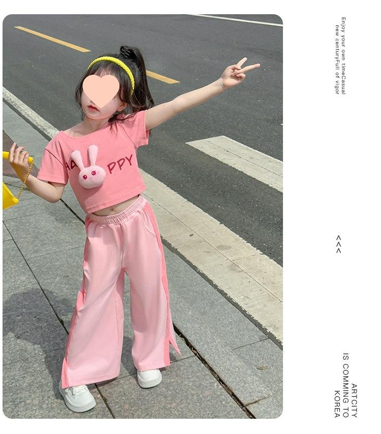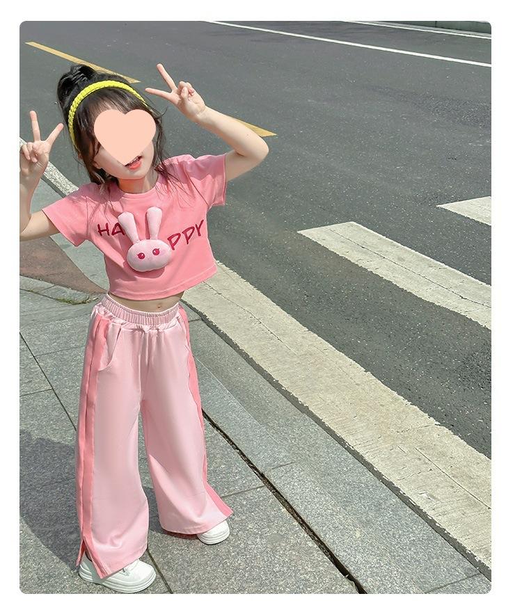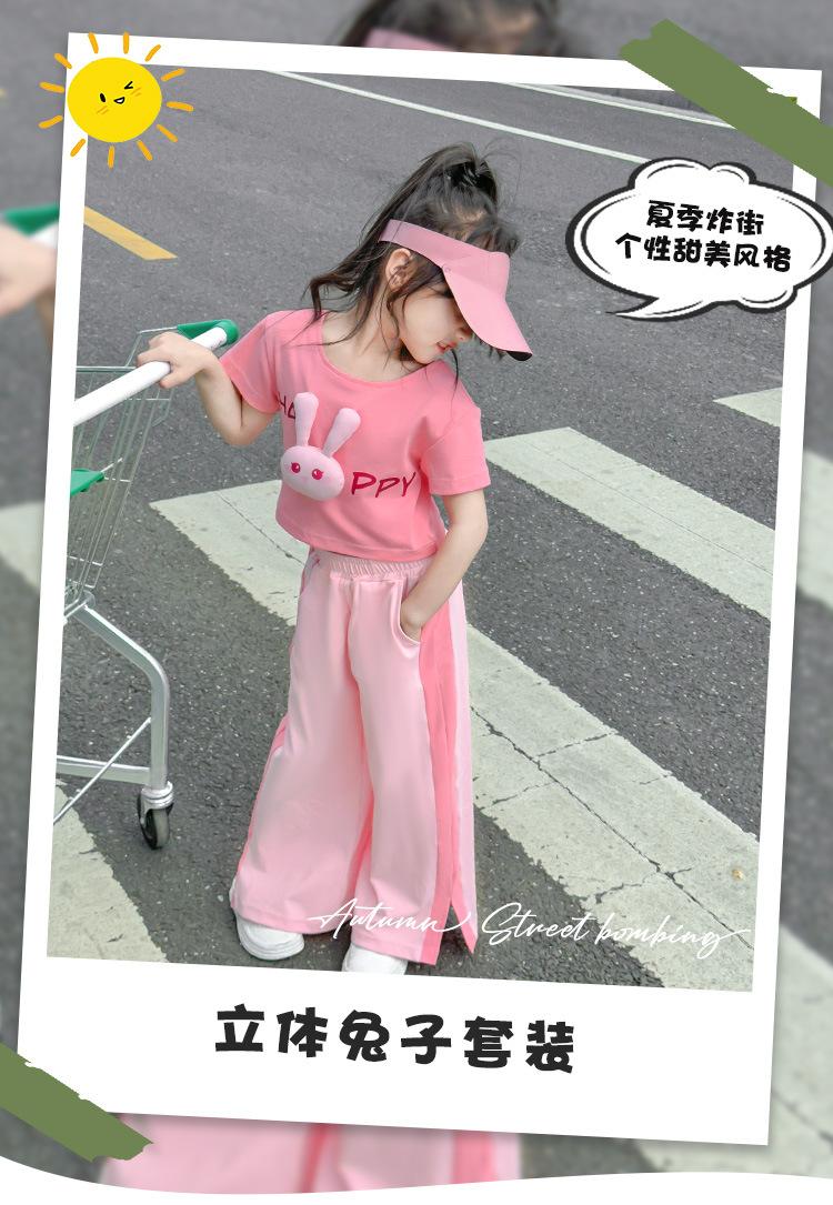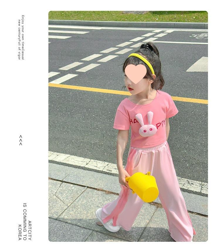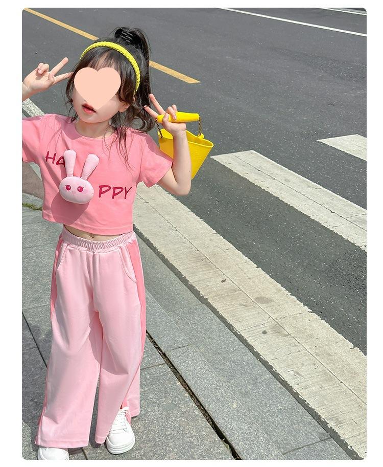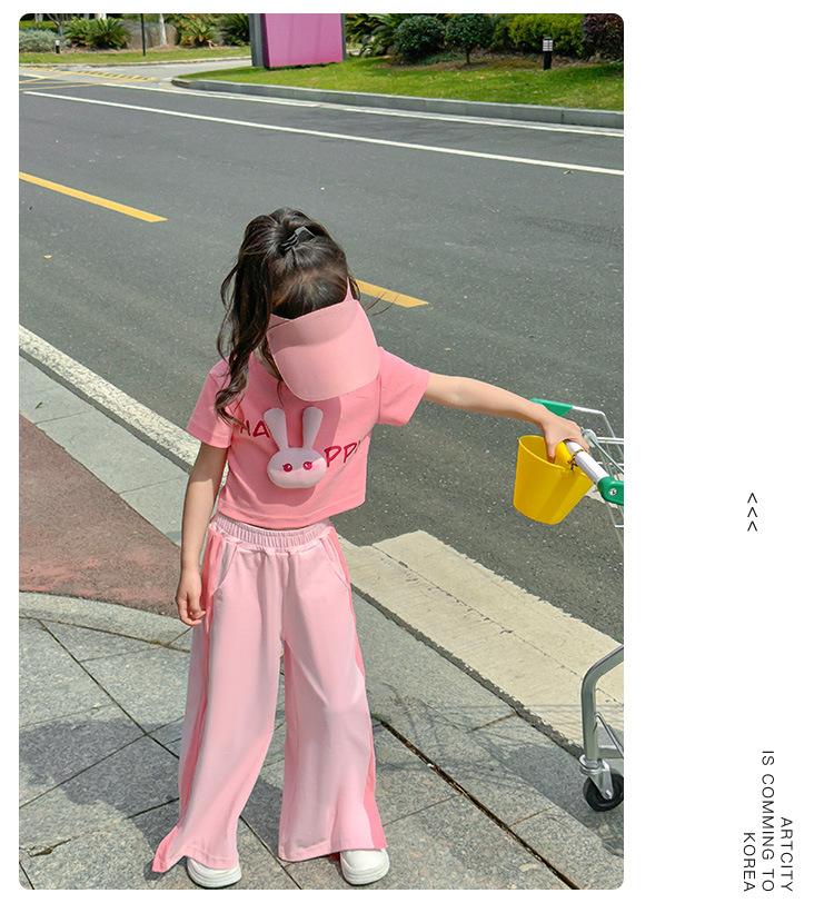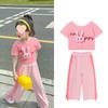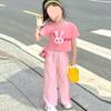 Celebrante de Internet Niñas Traje Casual Lindo Estilo Coreano Niños Verano Nuevo Estilo Occidental Dibujos Animados Manga Corta Pantalones Conjunto de Dos Piezas