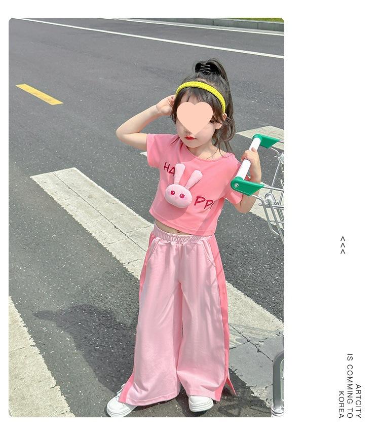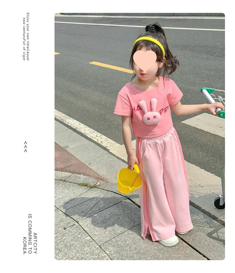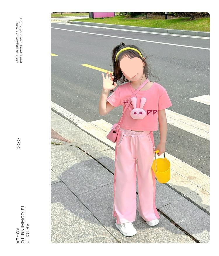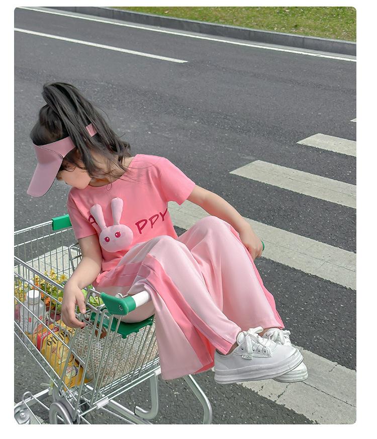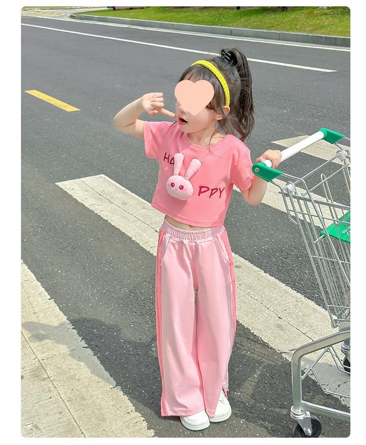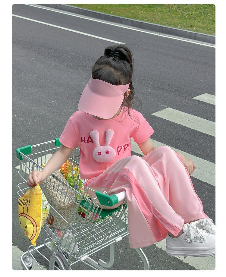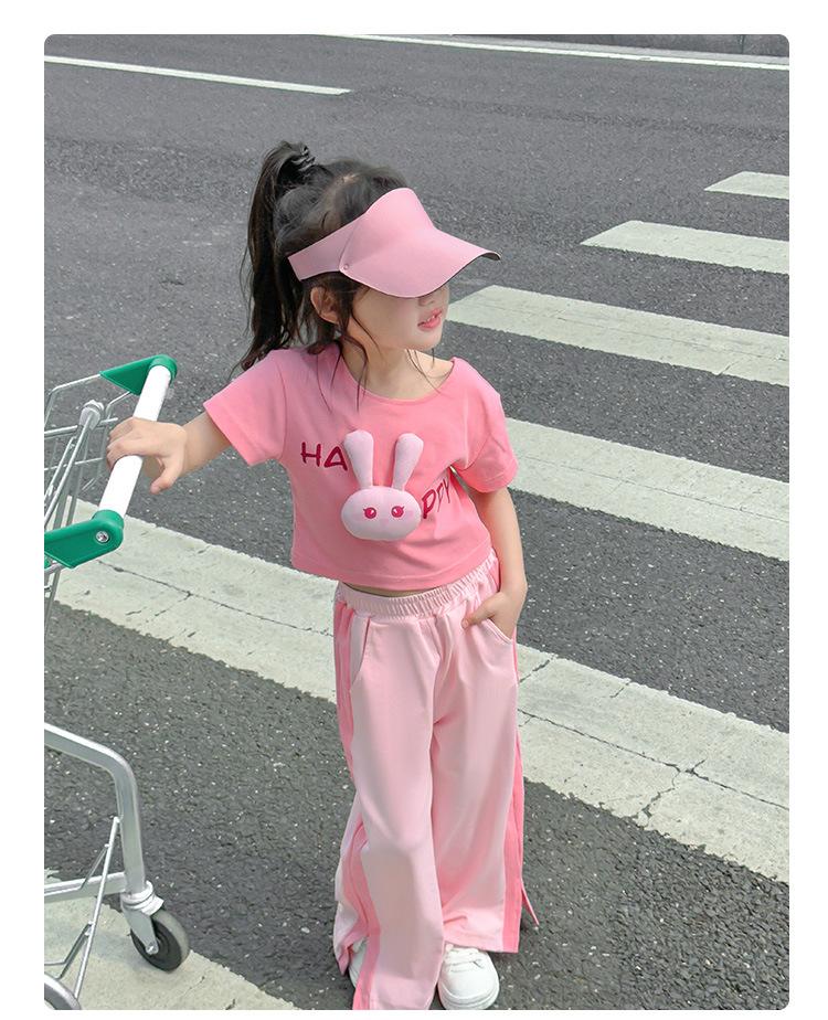 Celebrante de Internet Niñas Traje Casual Lindo Estilo Coreano Niños Verano Nuevo Estilo Occidental Dibujos Animados Manga Corta Pantalones Conjunto de Dos Piezas