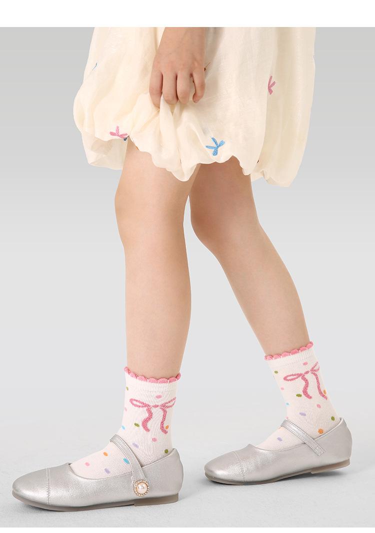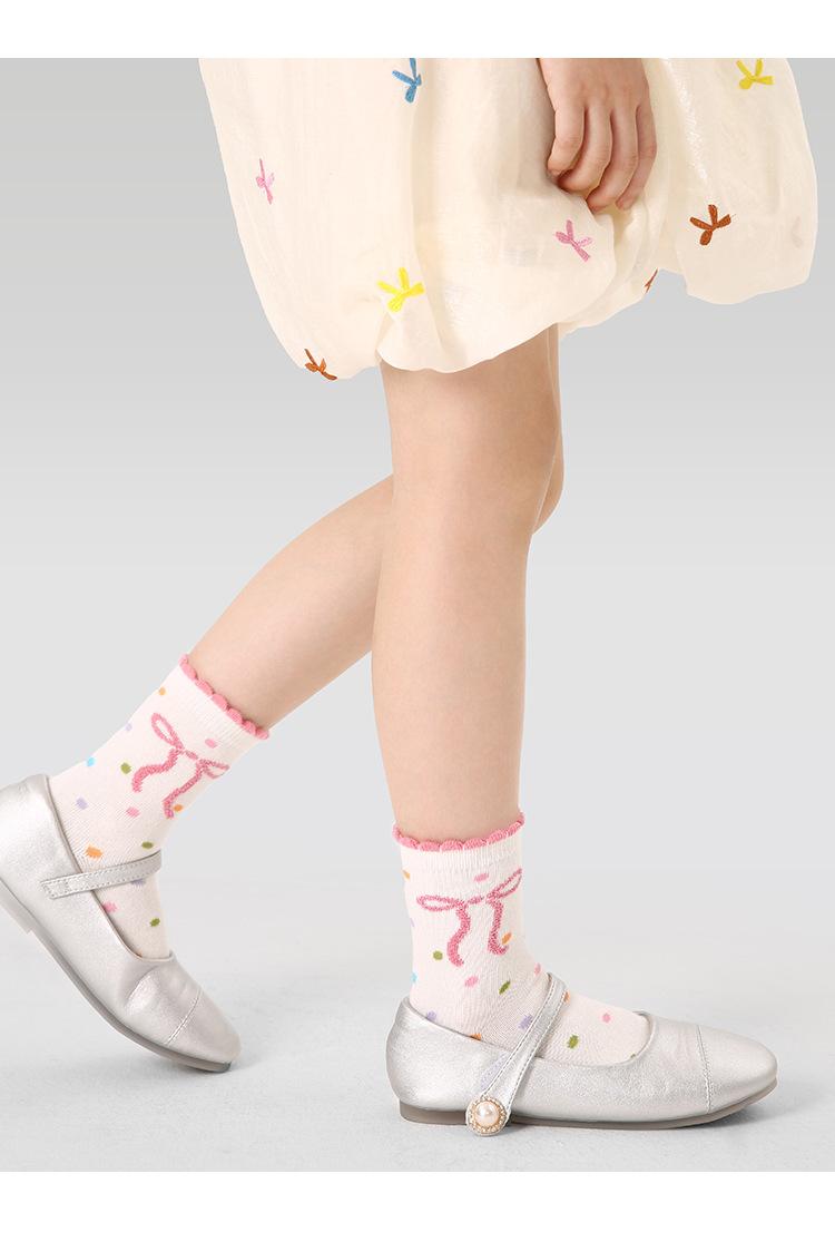Calcetines para niños, otoño 2024, nuevos calcetines de niña con lazo dulce, calcetines de tubo medio con encaje a rayas bonitos para niños